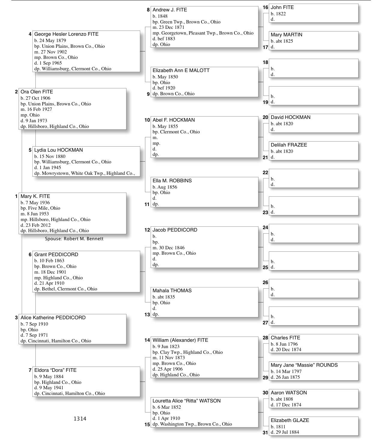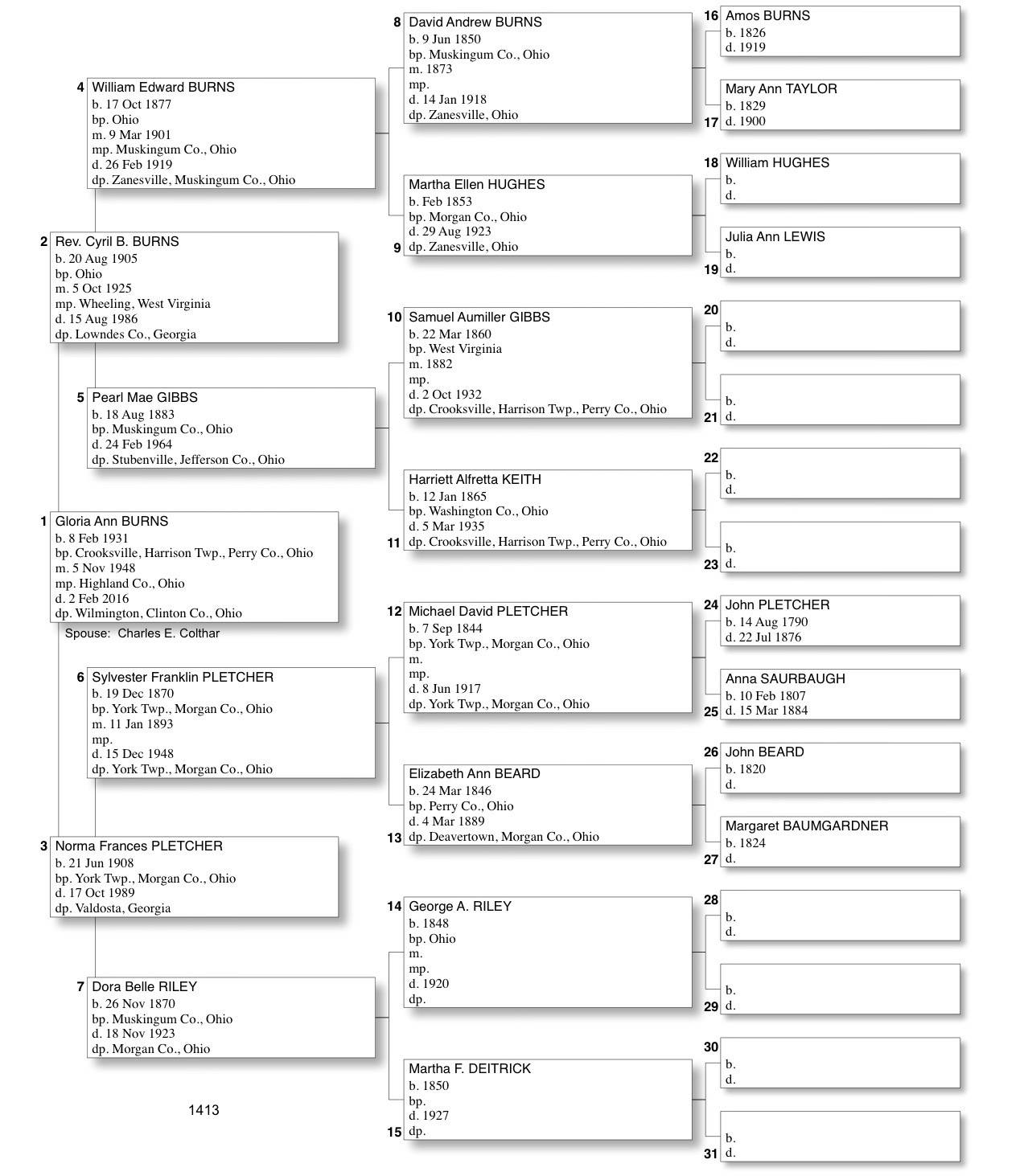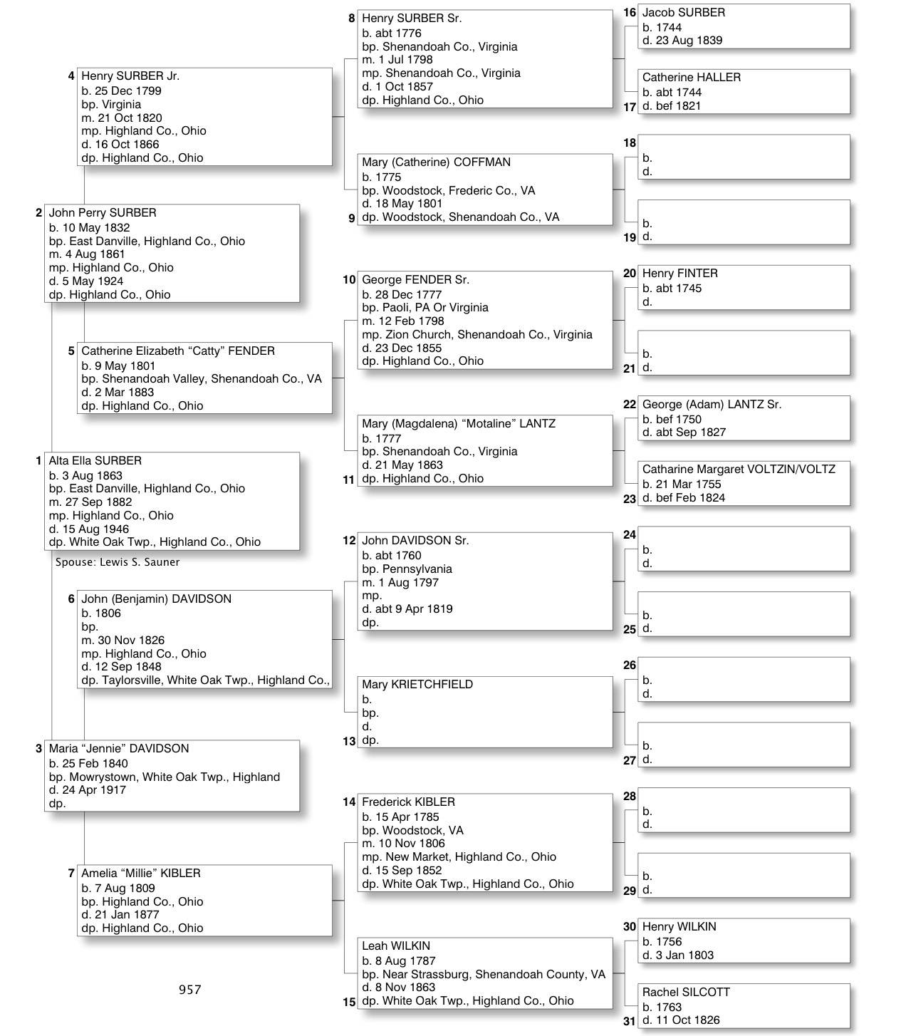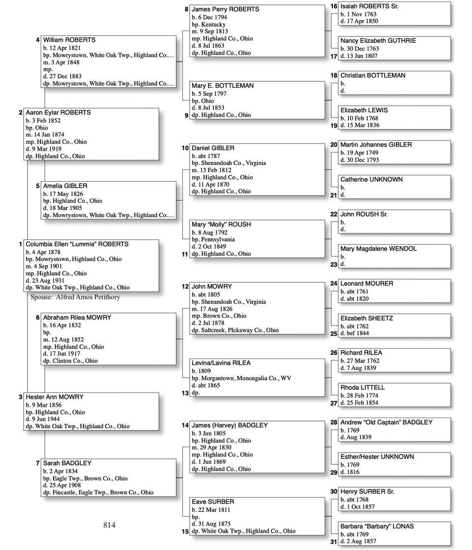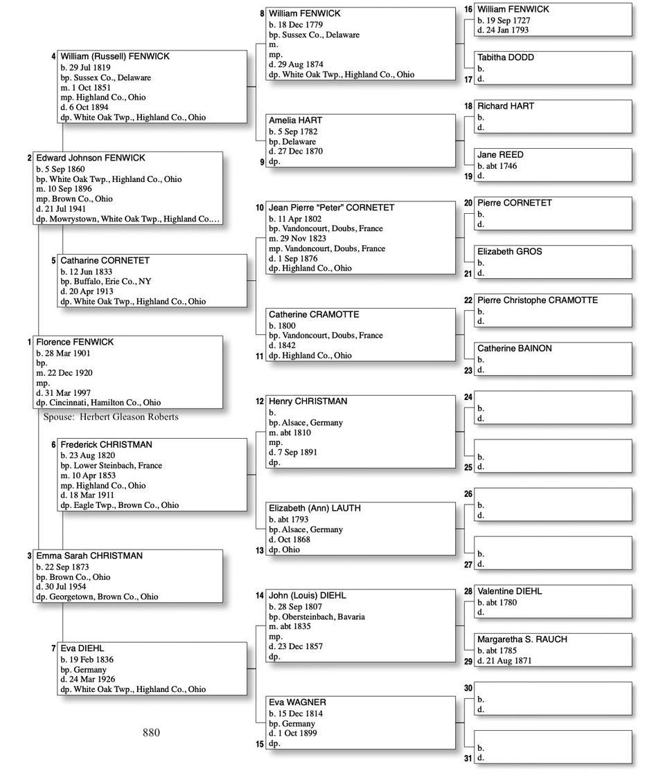 Alphabetized with link to Five Generation Chart