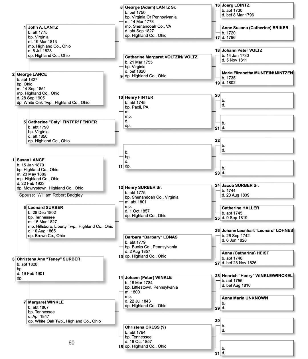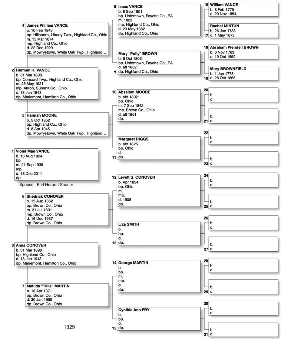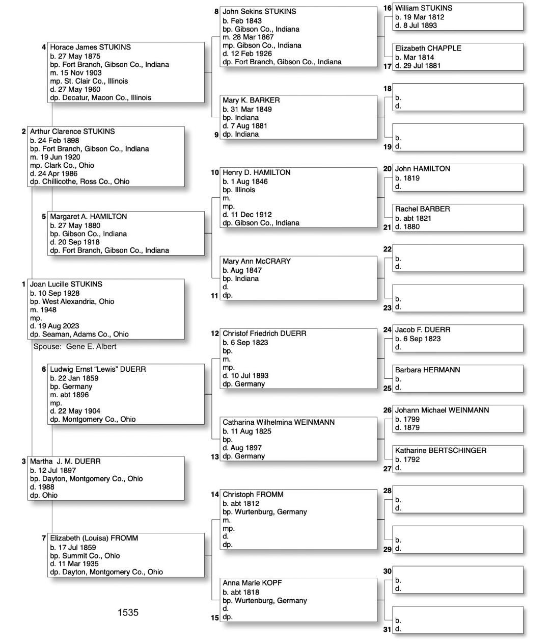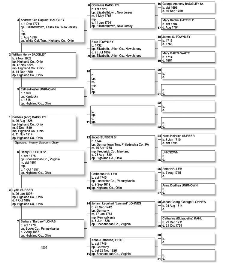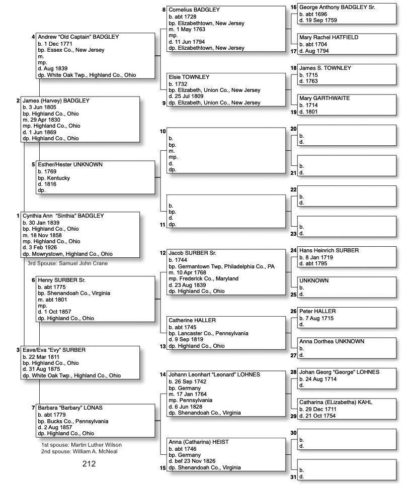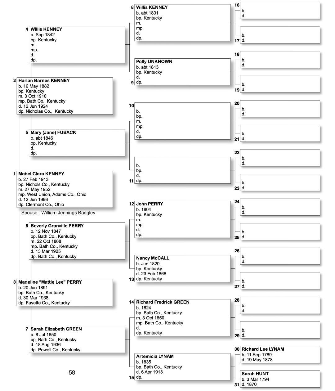 Alphabetized with link to Five Generation Chart
