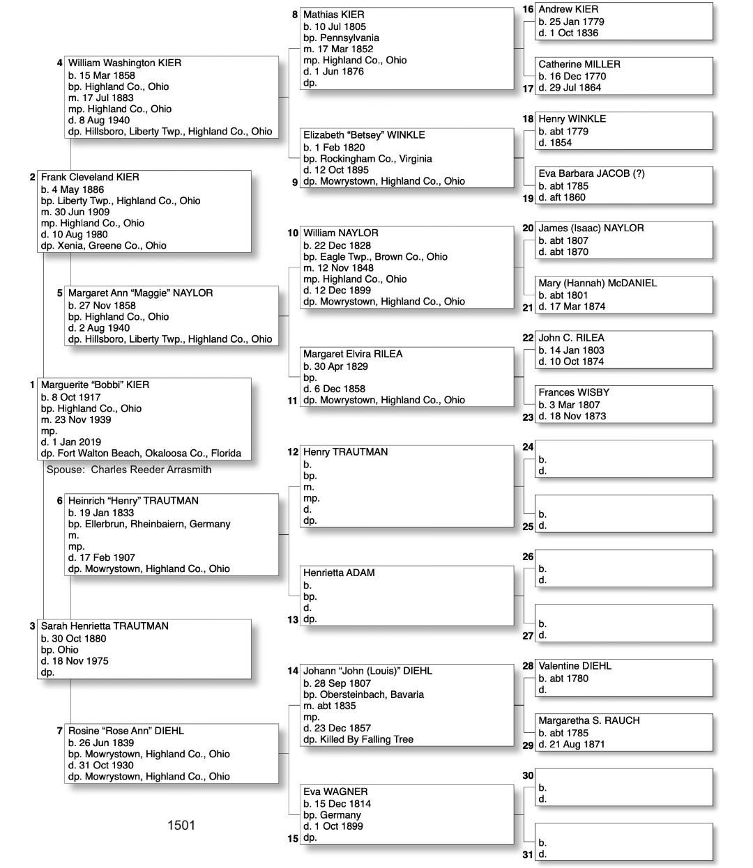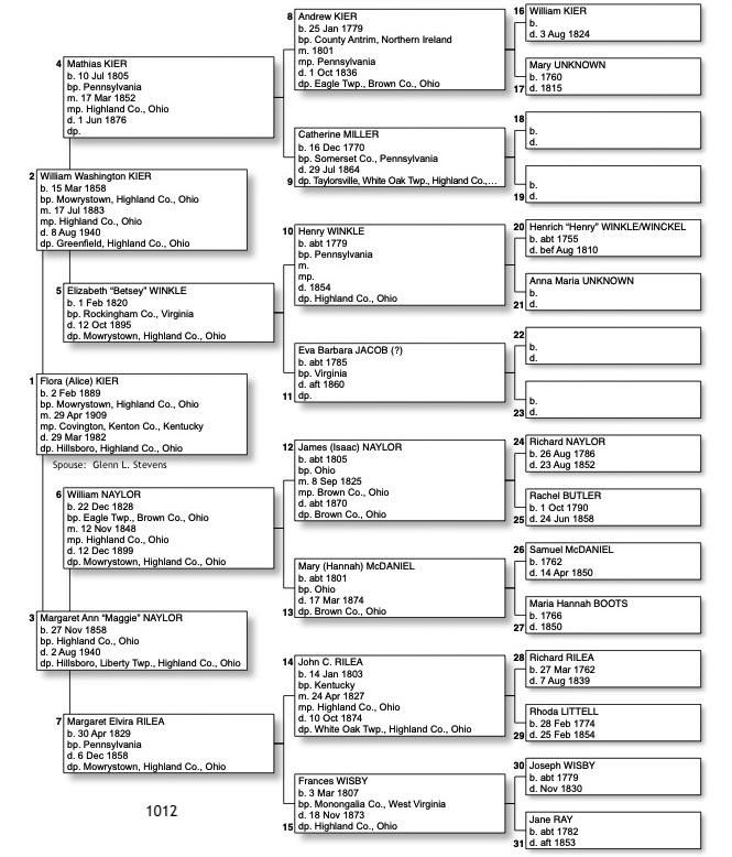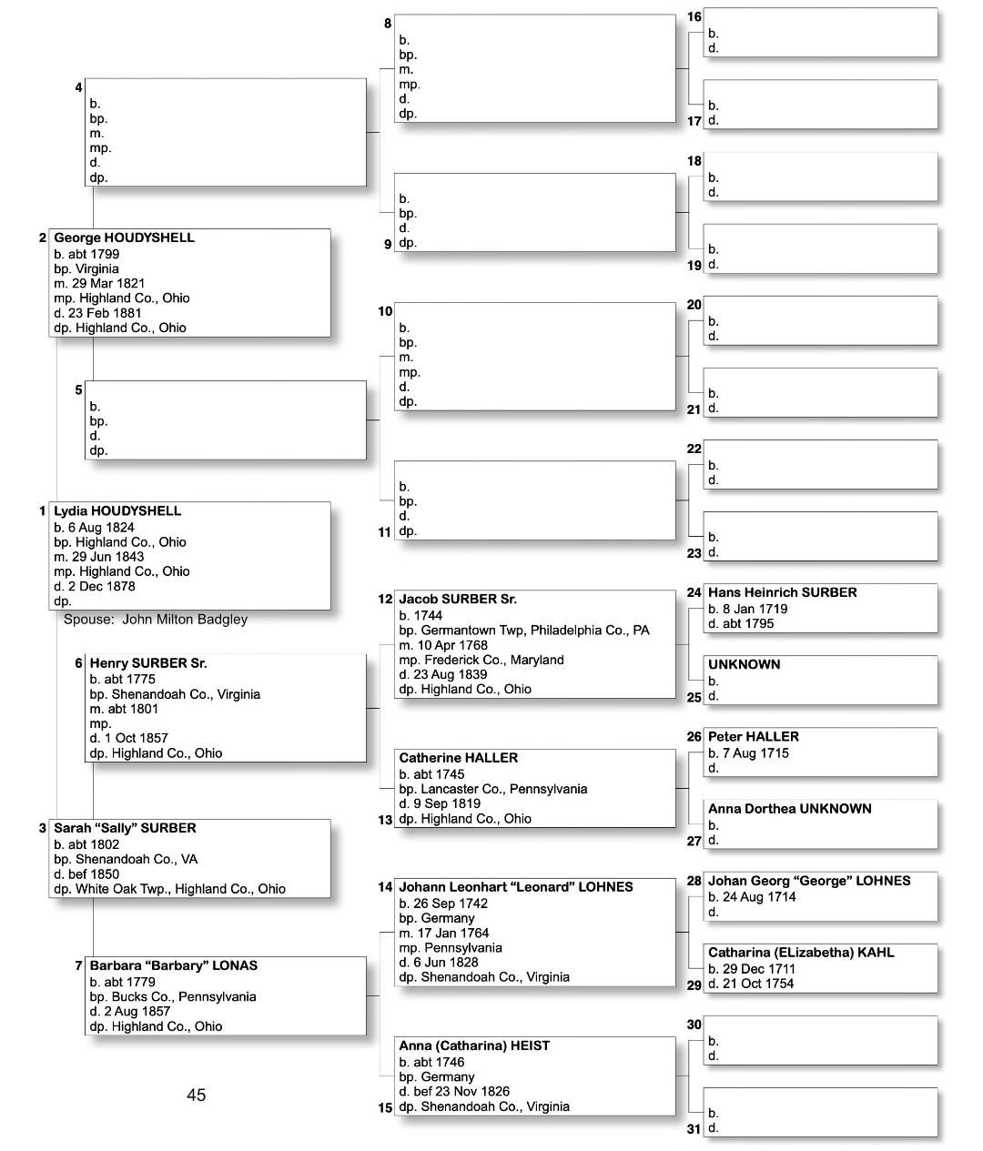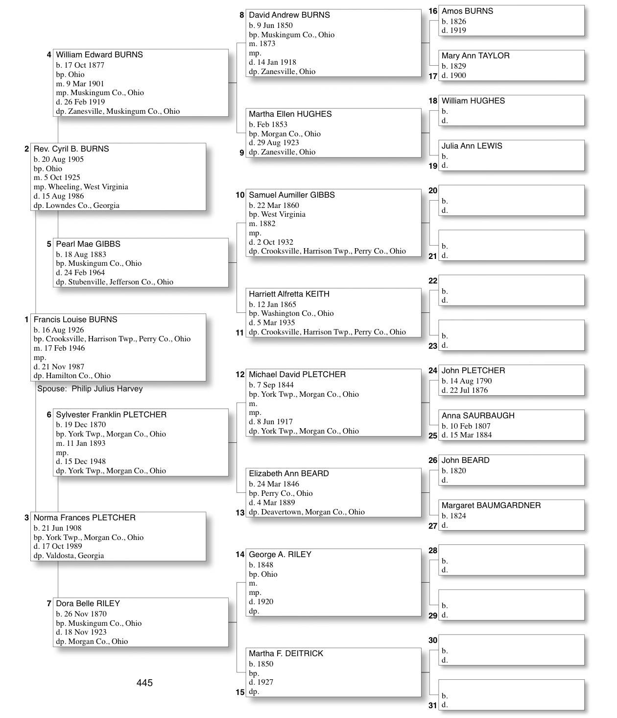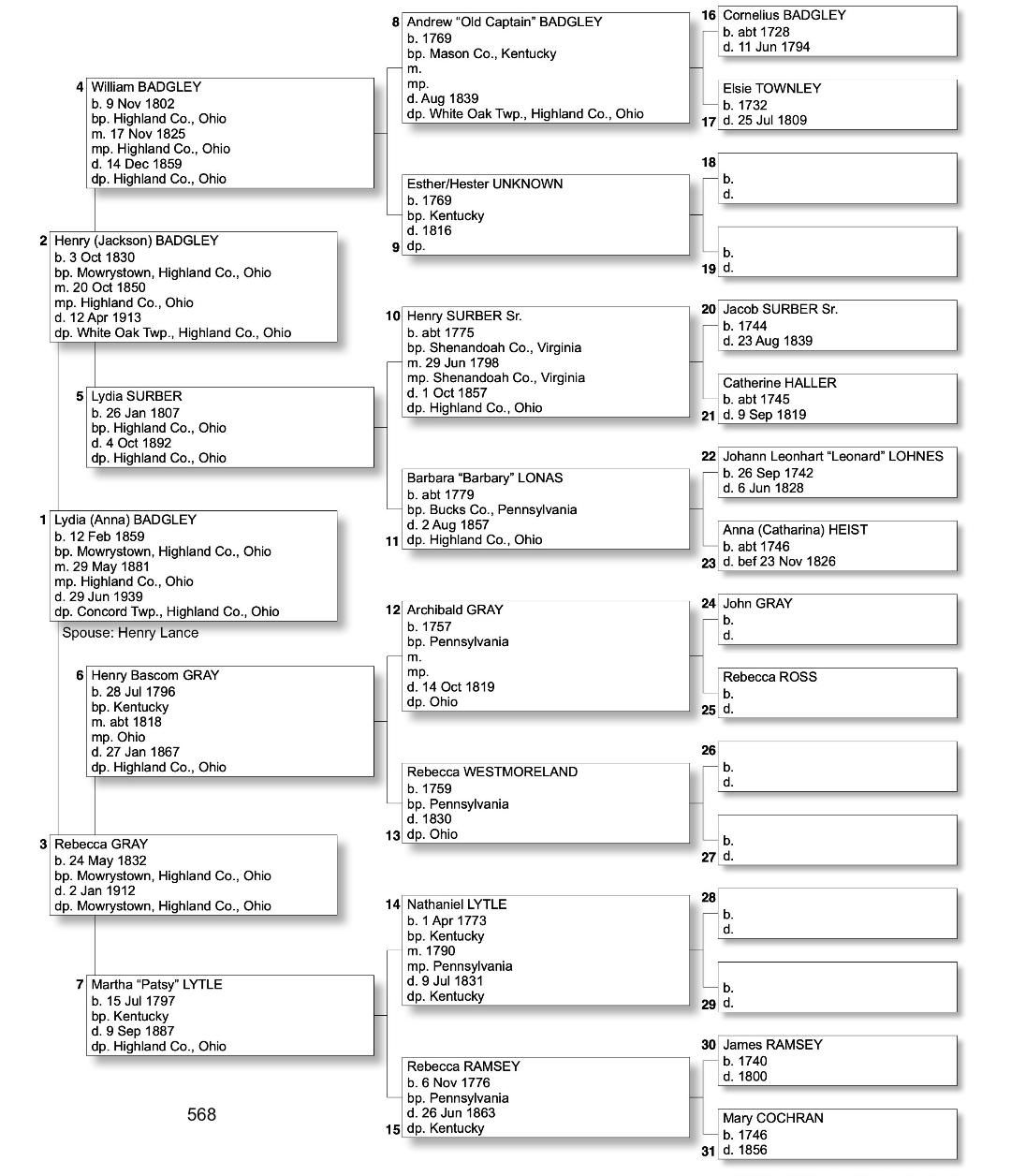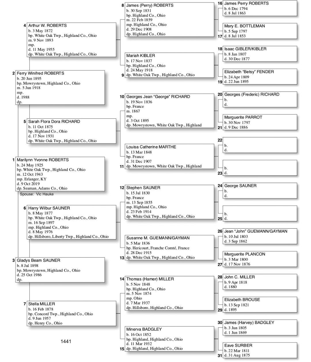 Alphabetized with link to Five Generation Chart