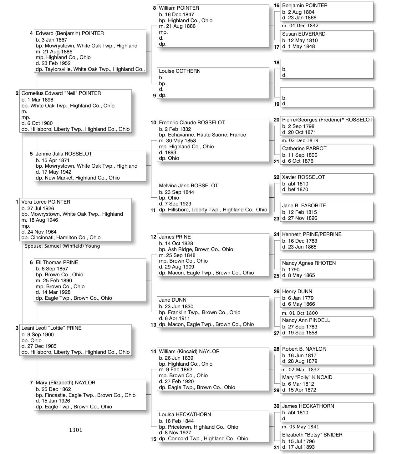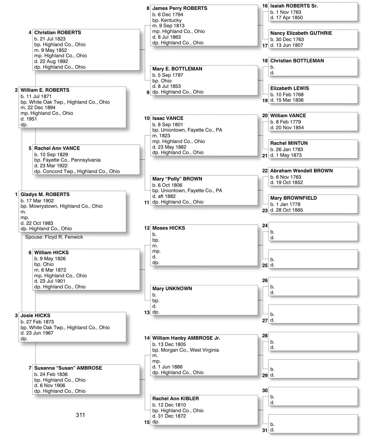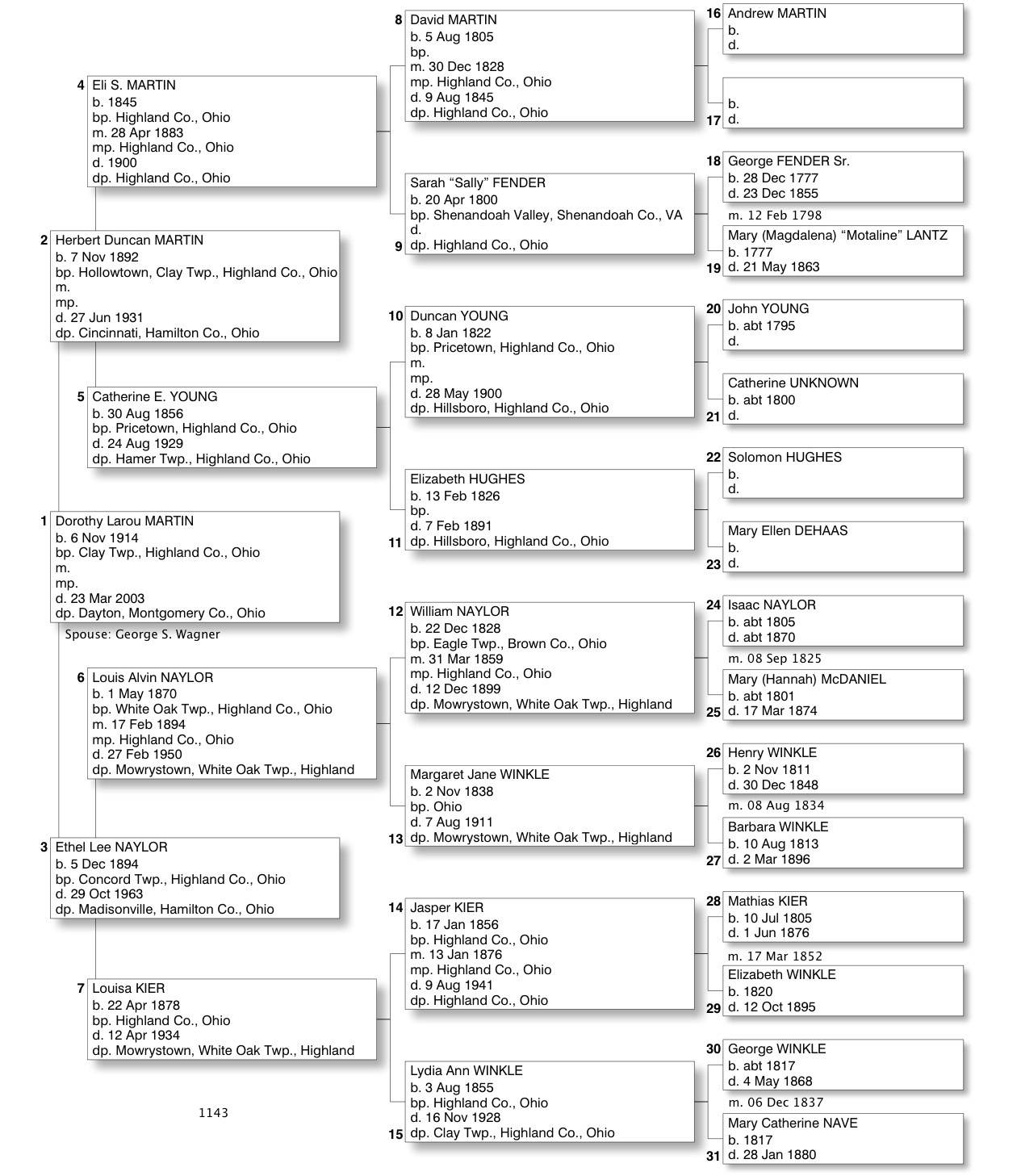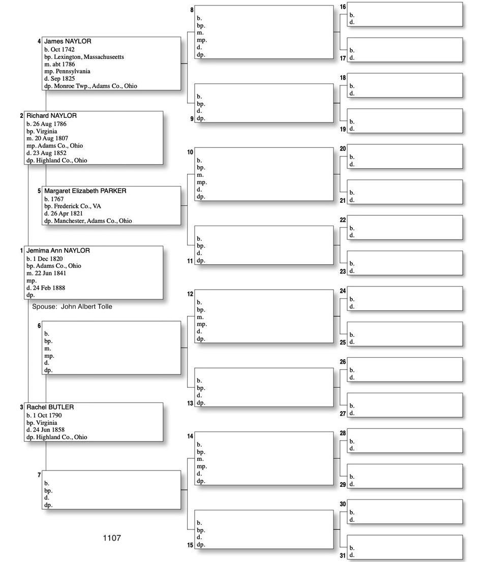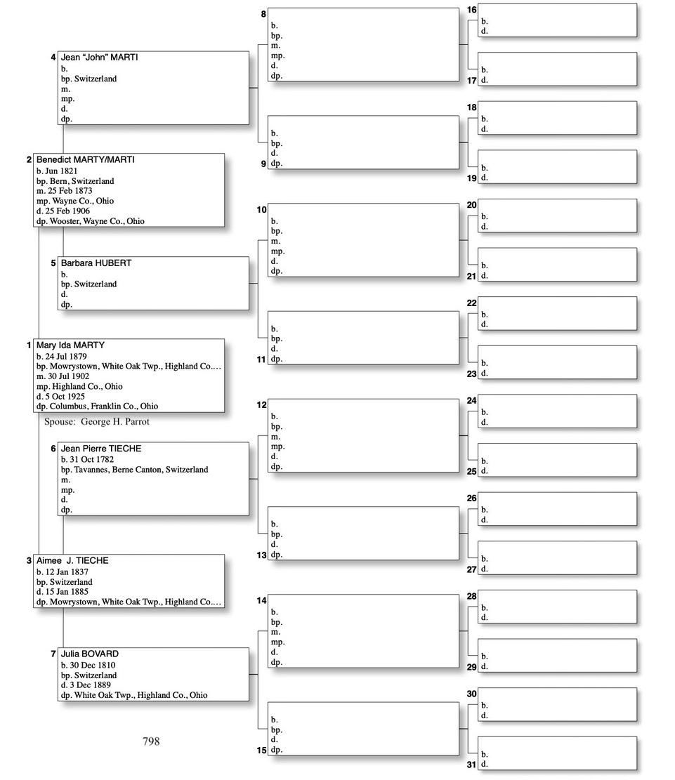 Alphabetized with link to Five Generation Chart
