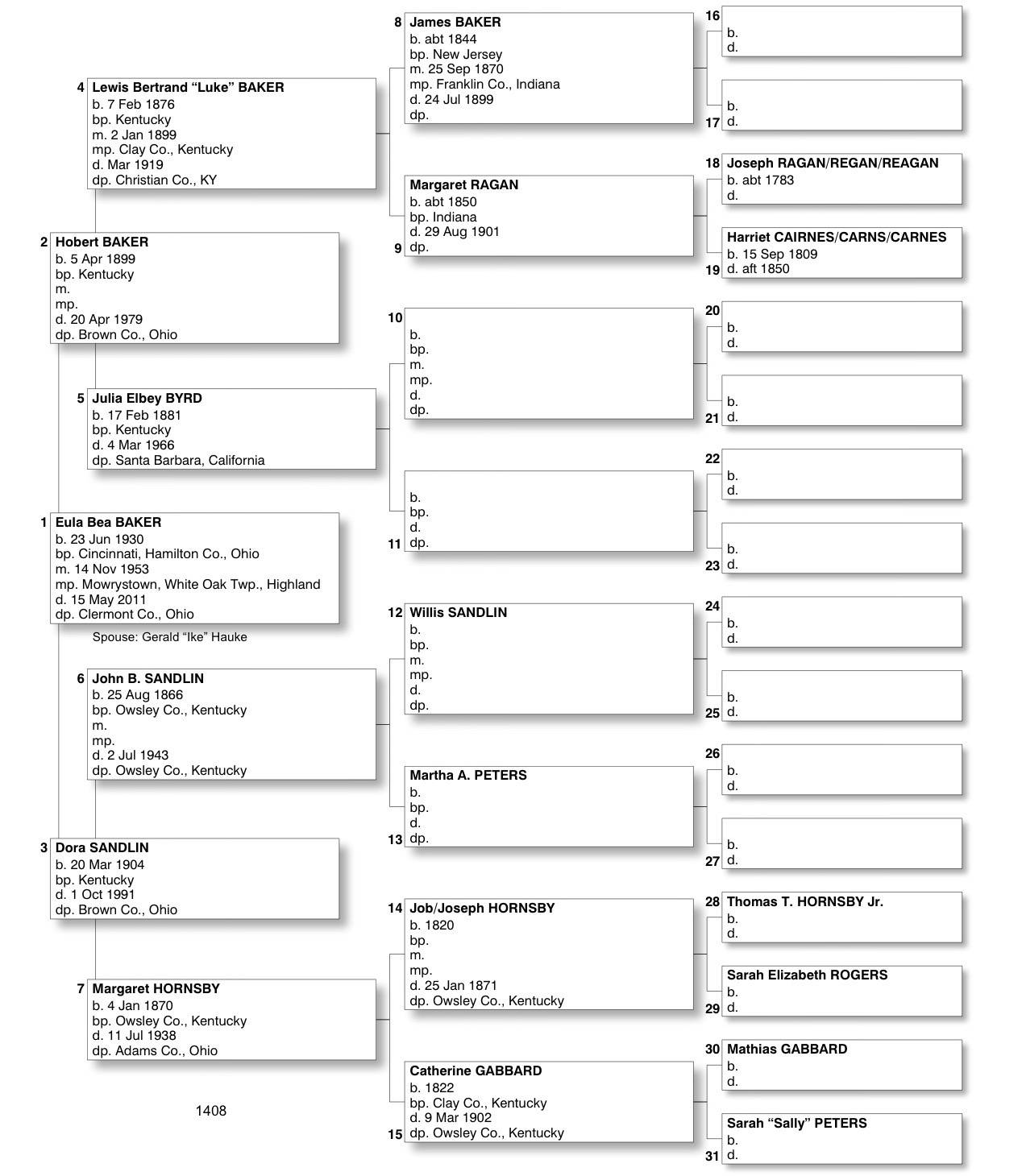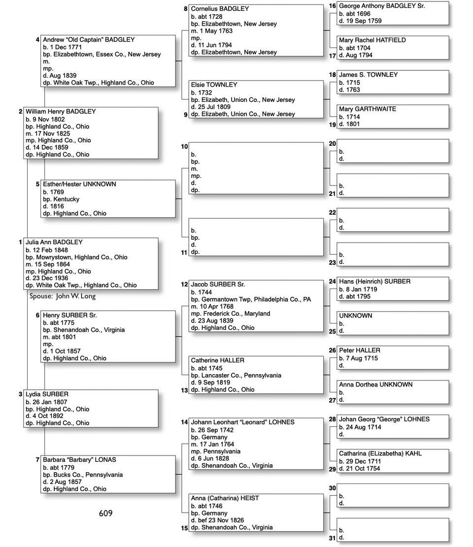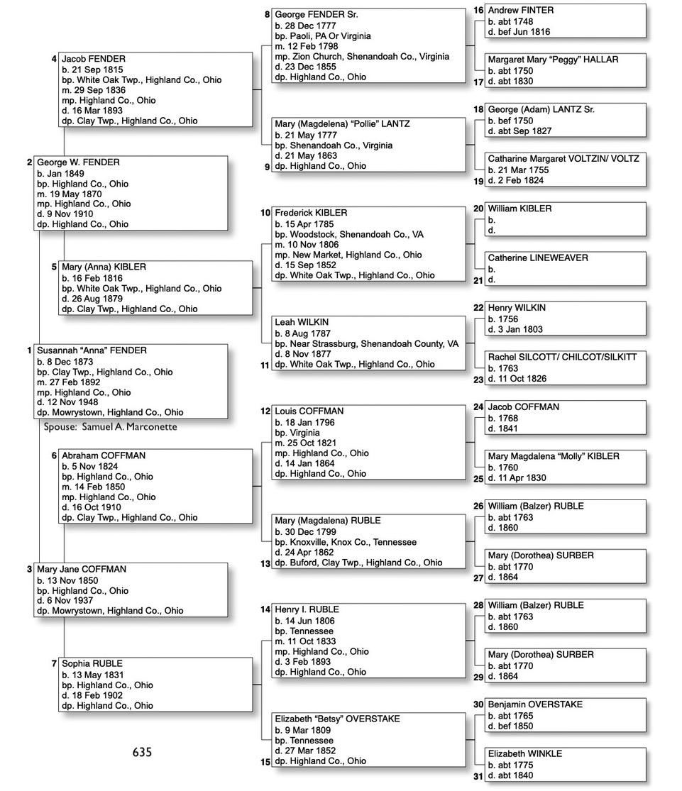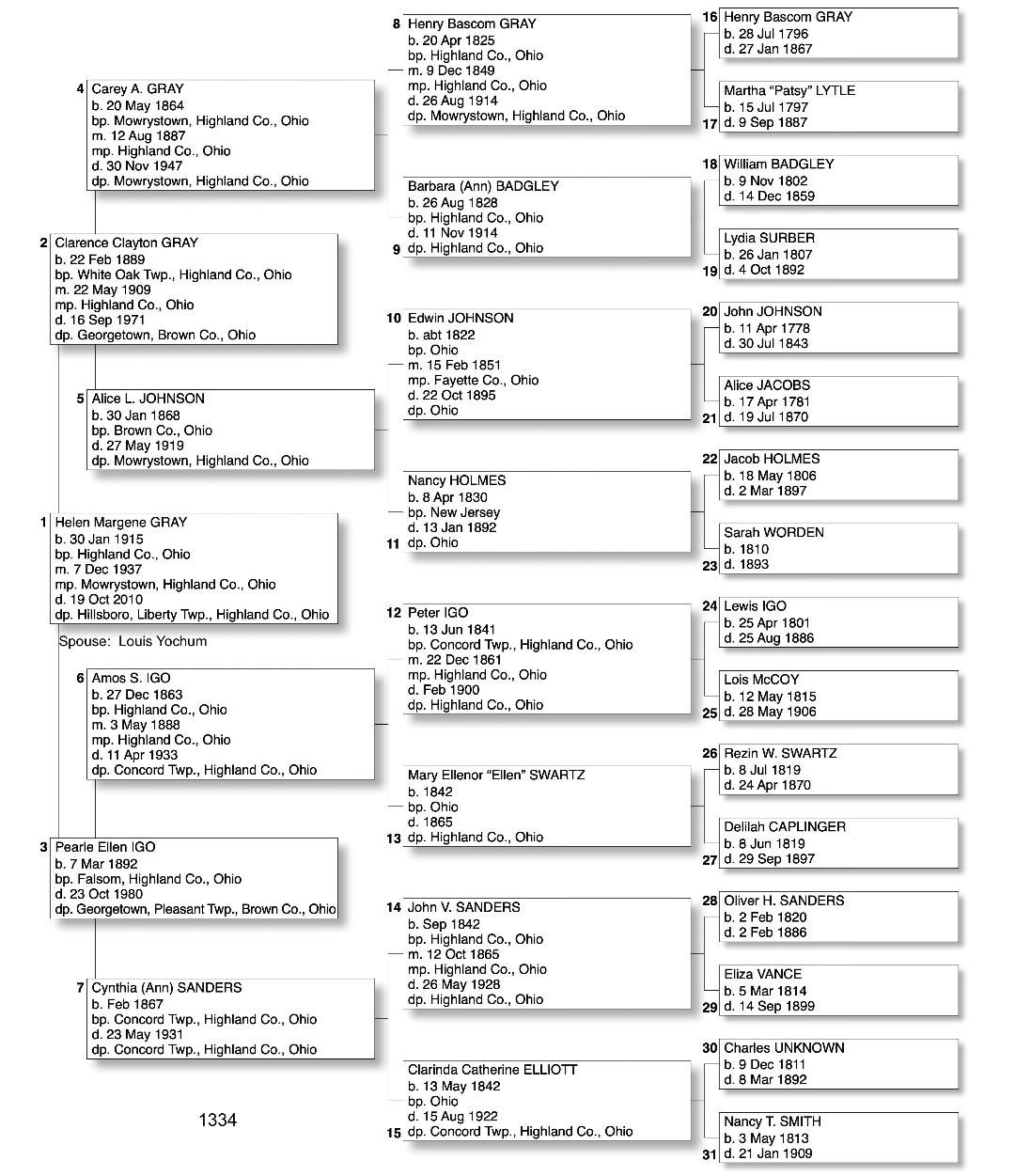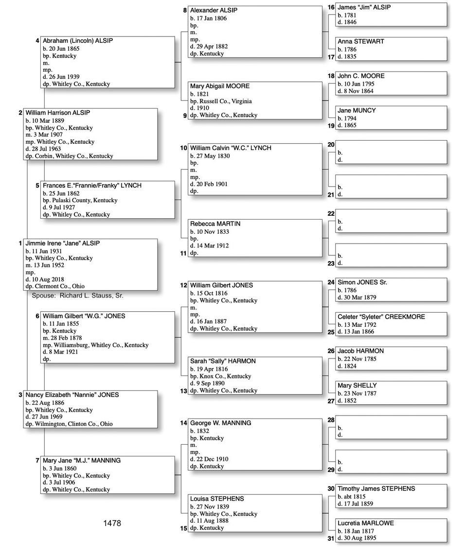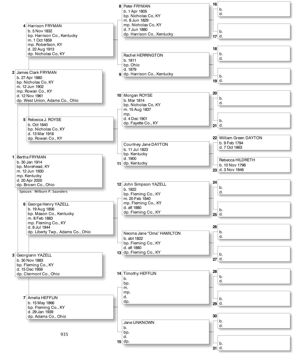 Alphabetized with link to Five Generation Chart