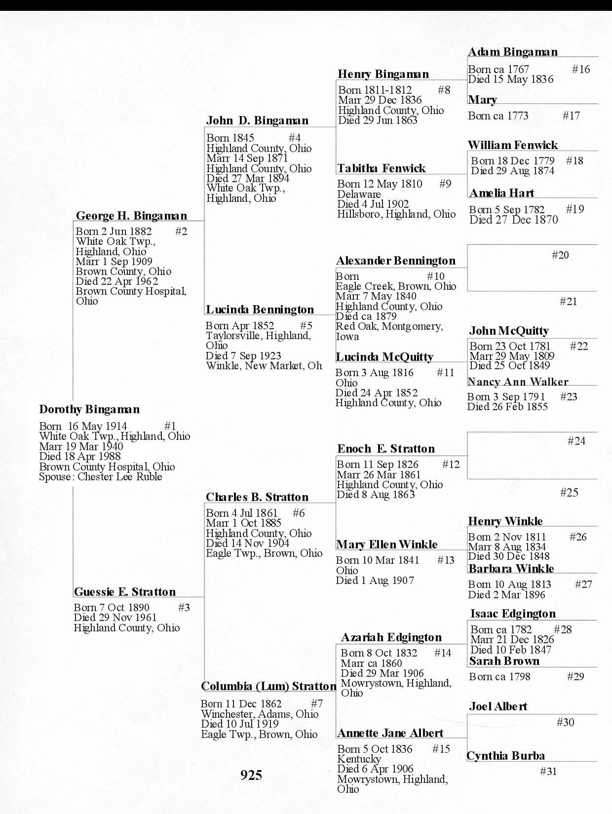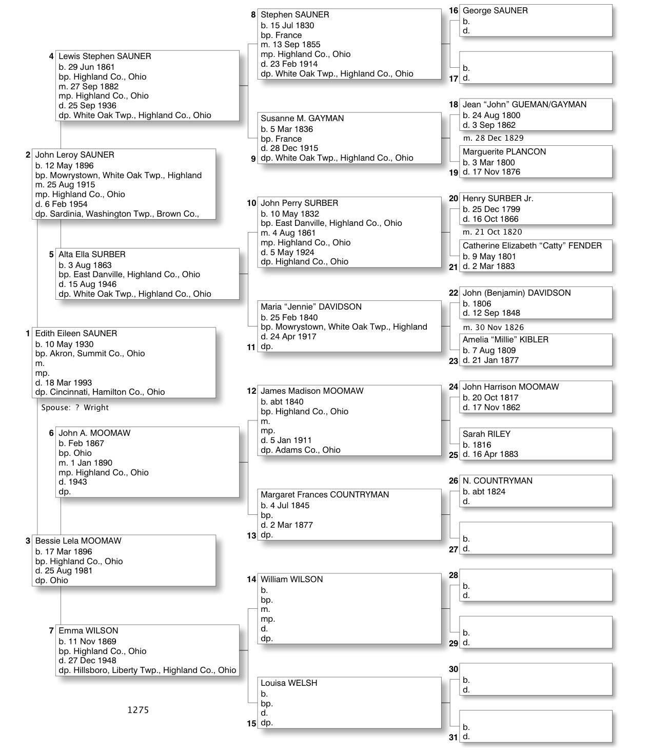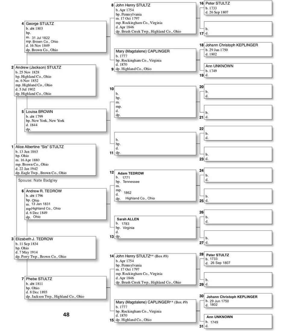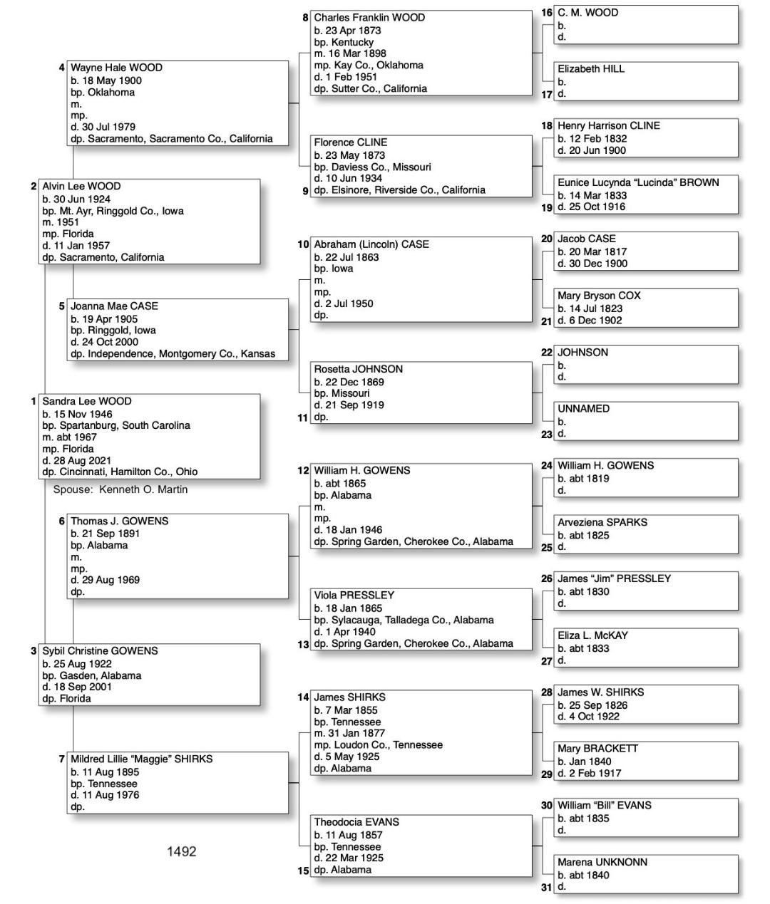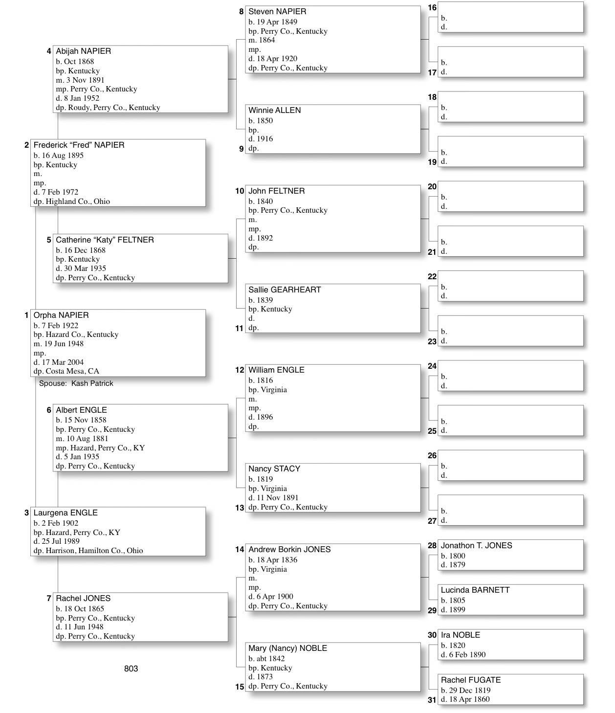 Alphabetized with link to Five Generation Chart