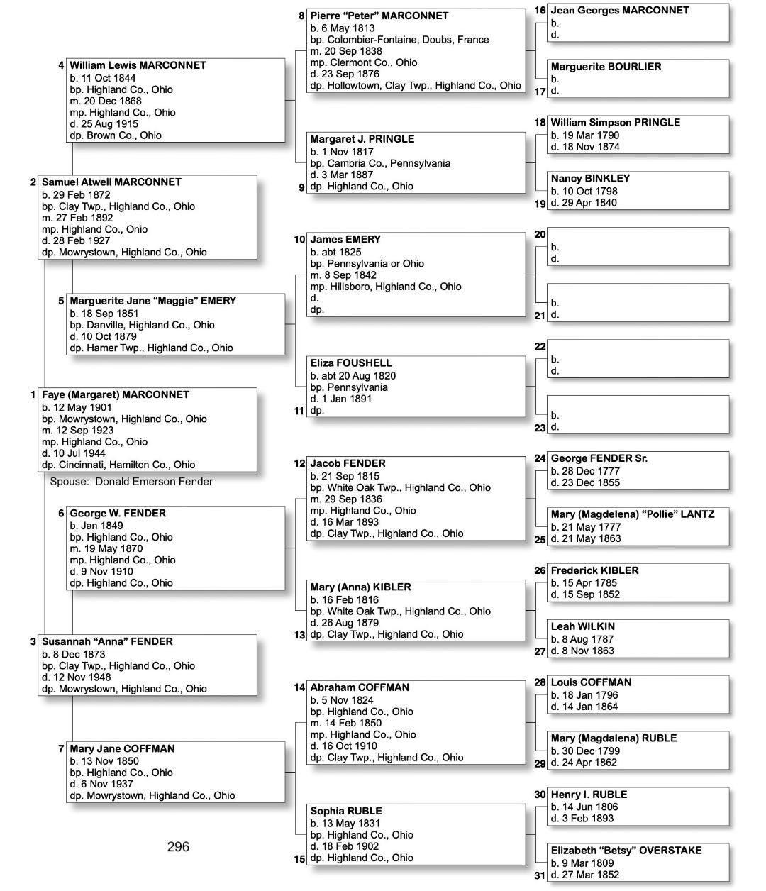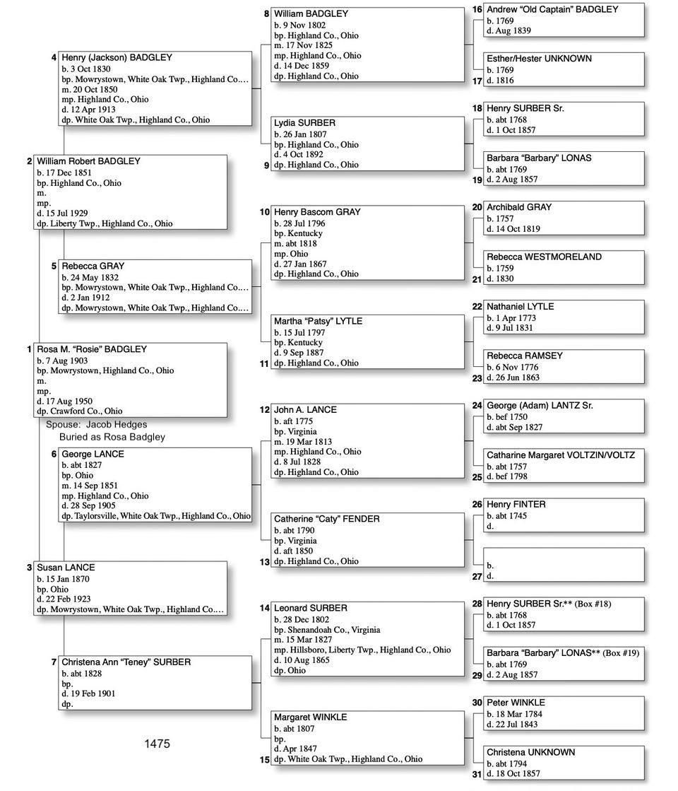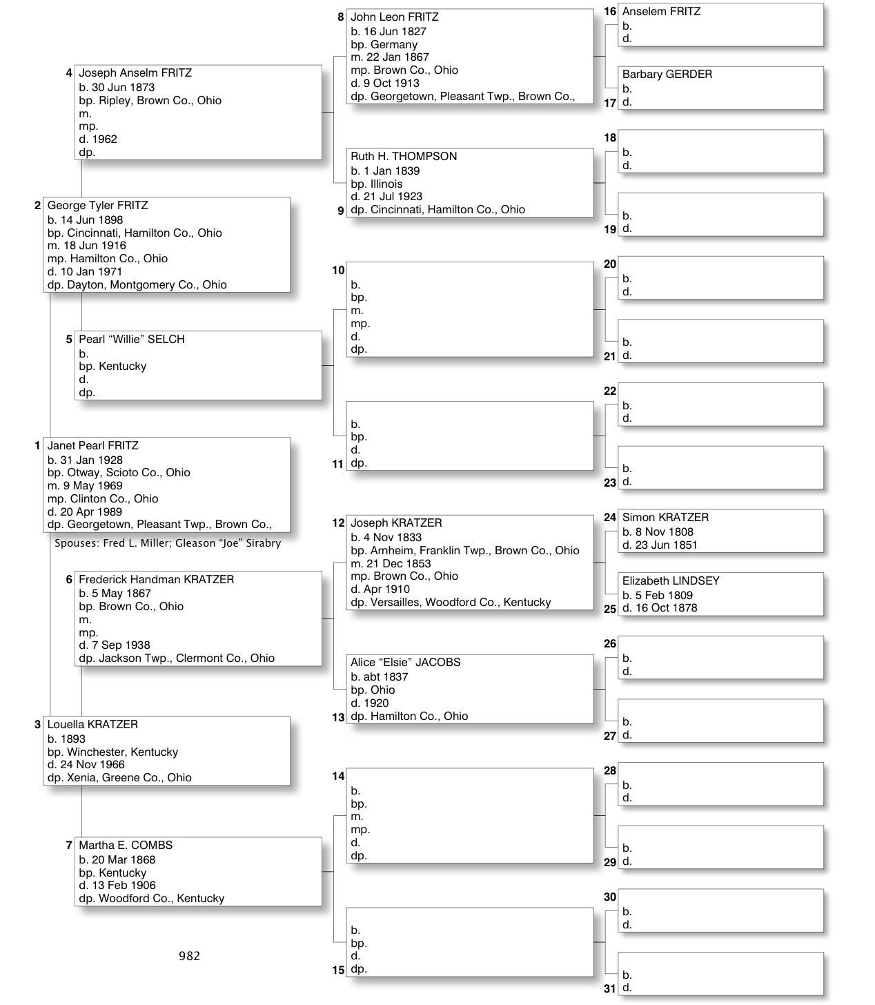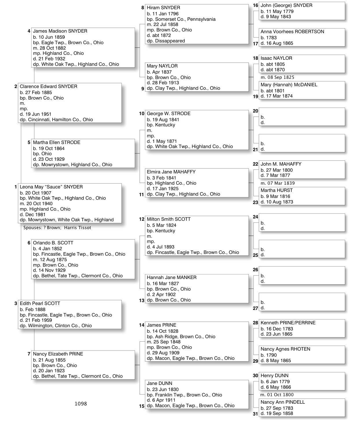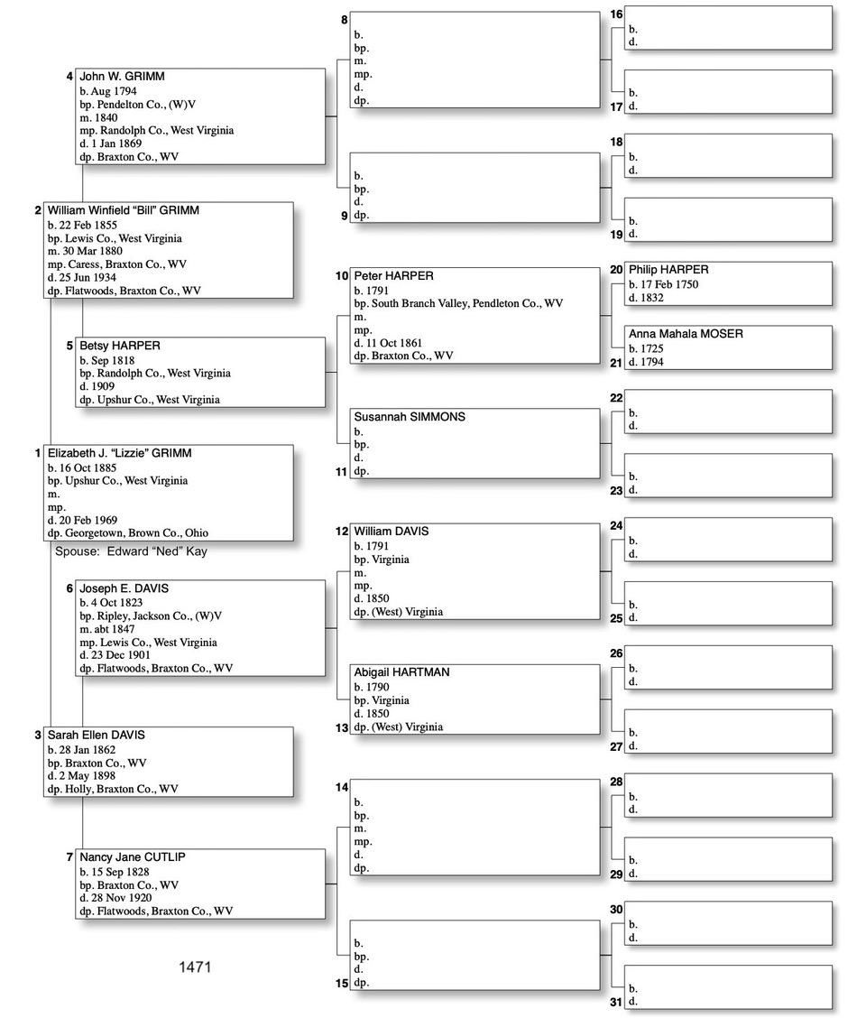 Alphabetized with link to Five Generation Chart