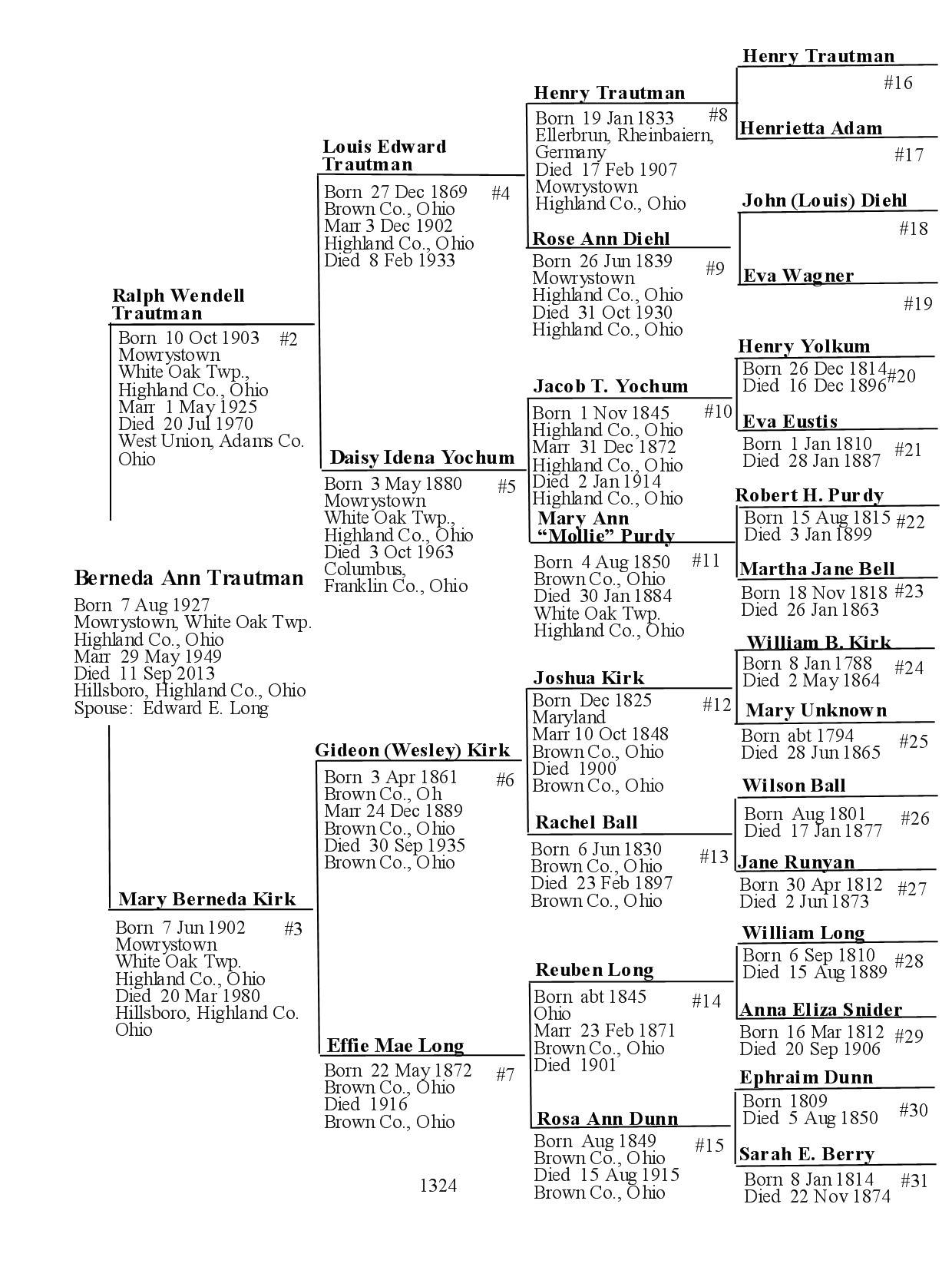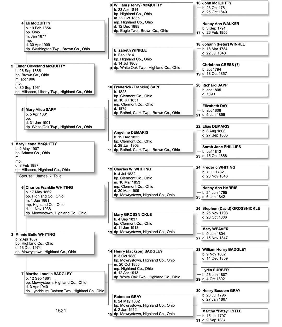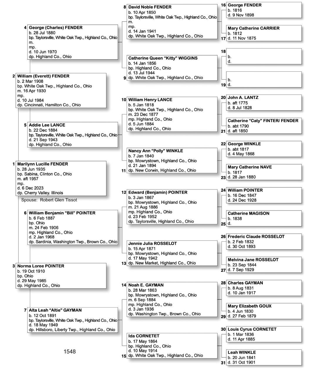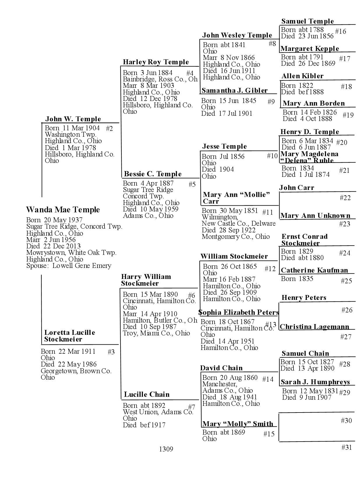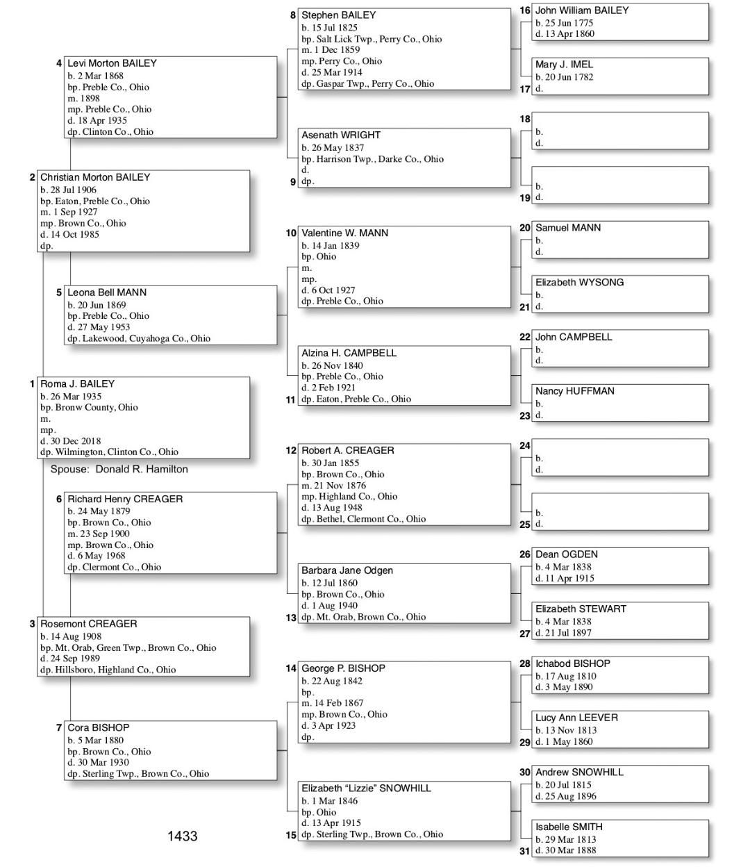 Alphabetized with link to Five Generation Chart