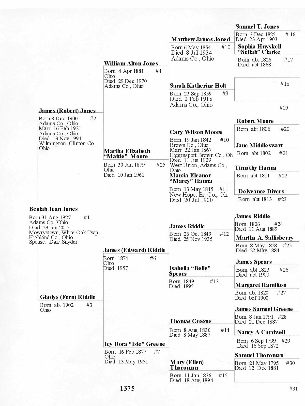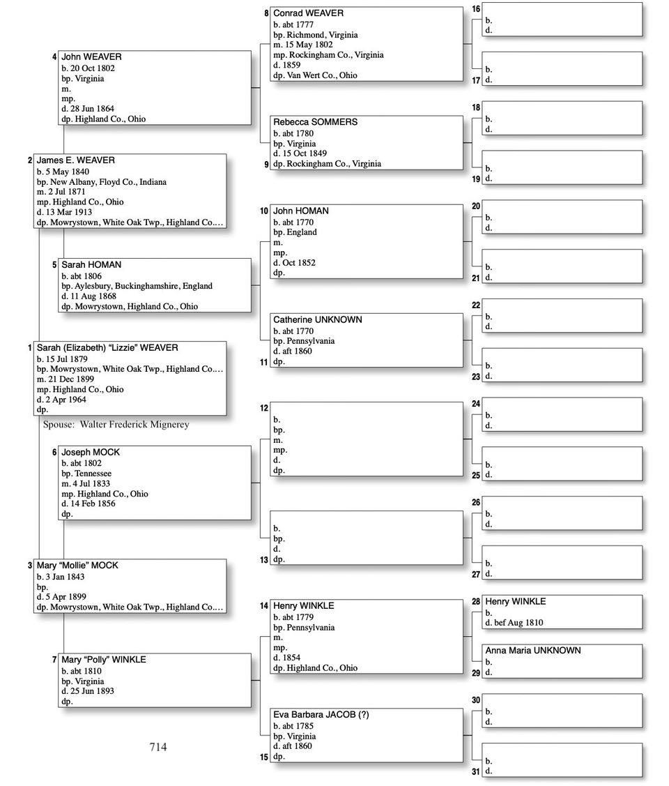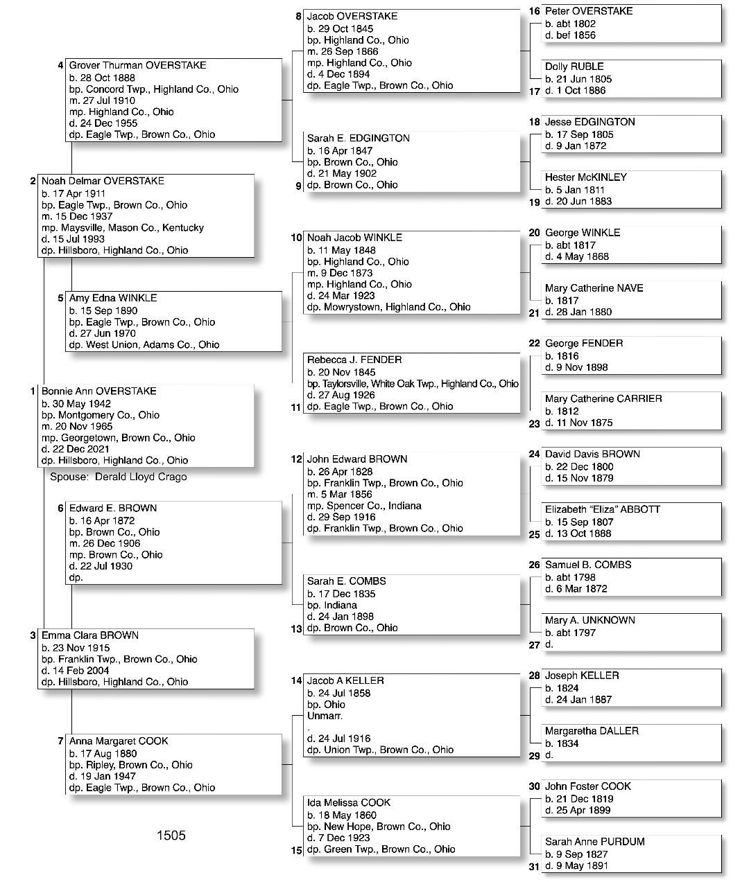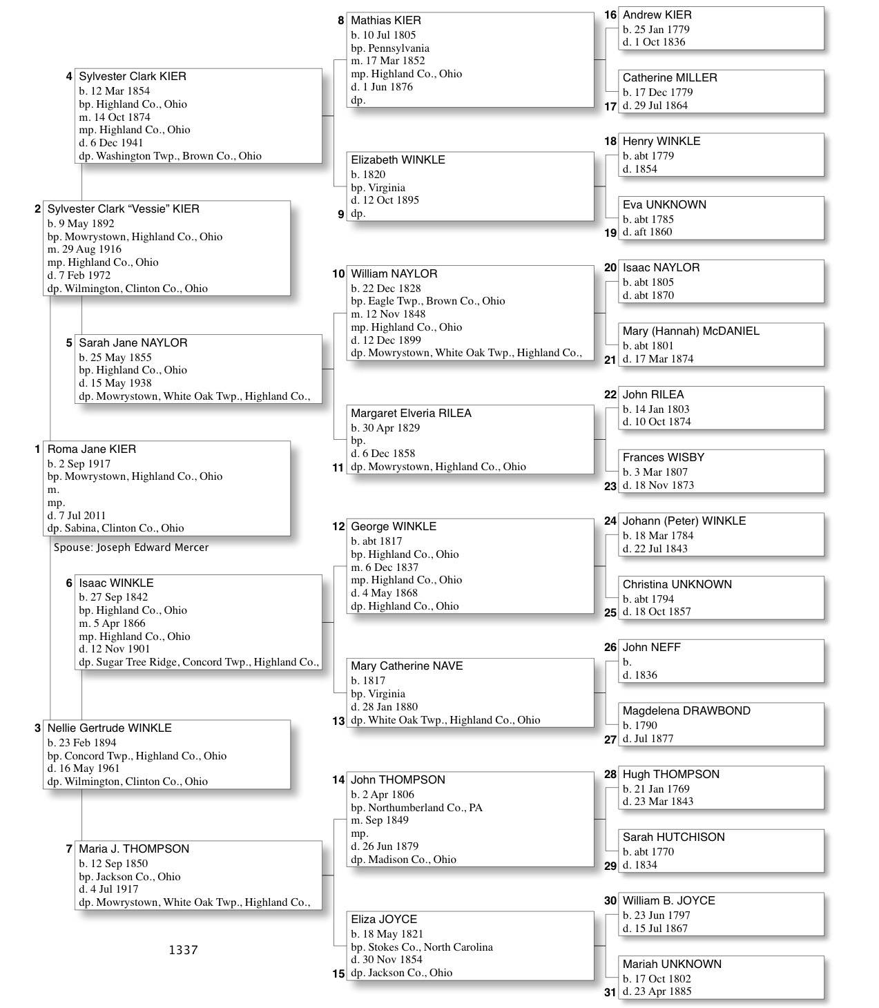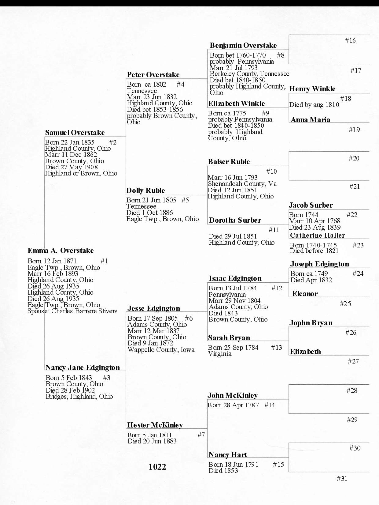 Alphabetized with link to Five Generation Chart