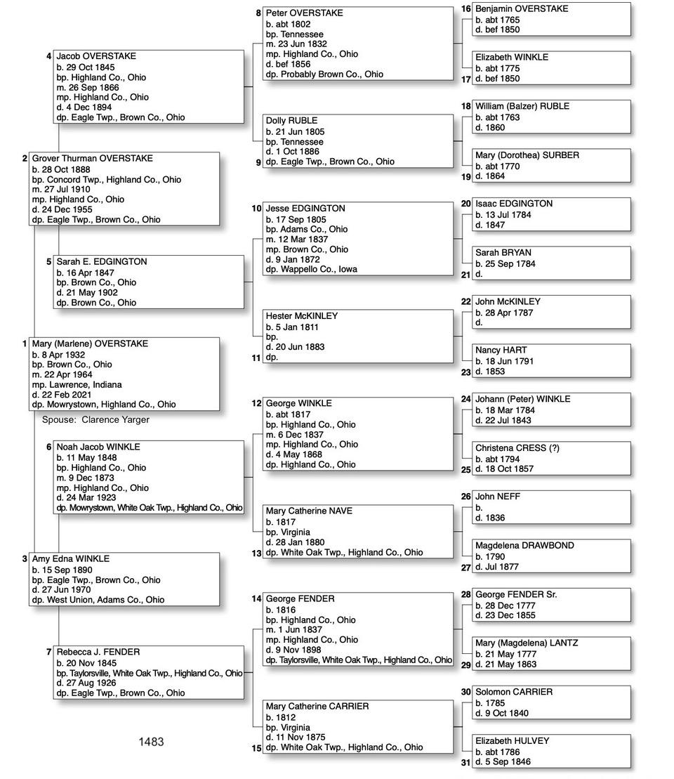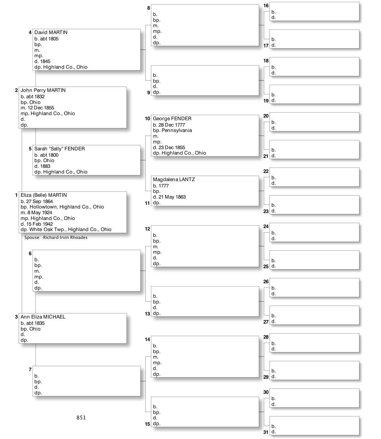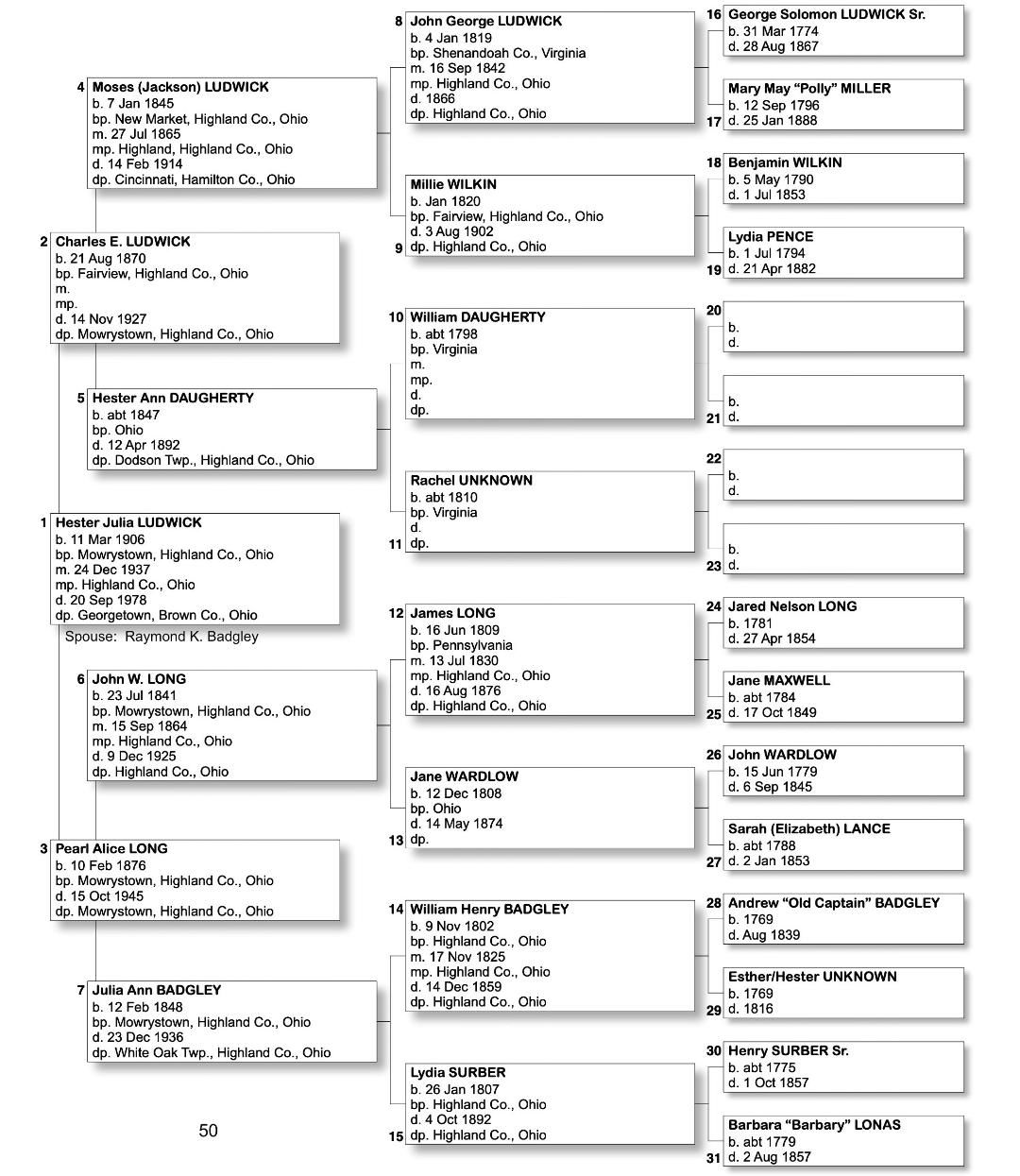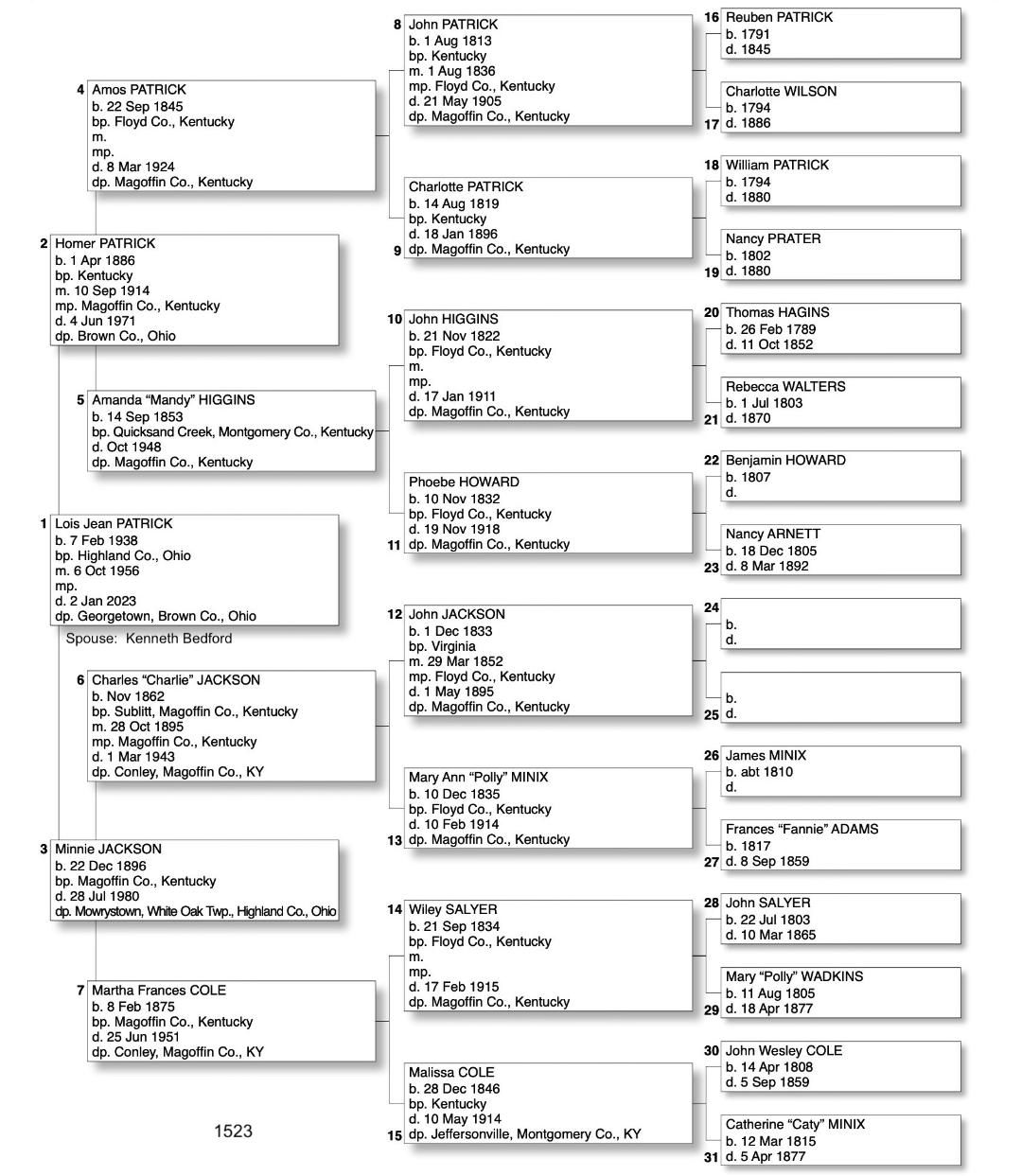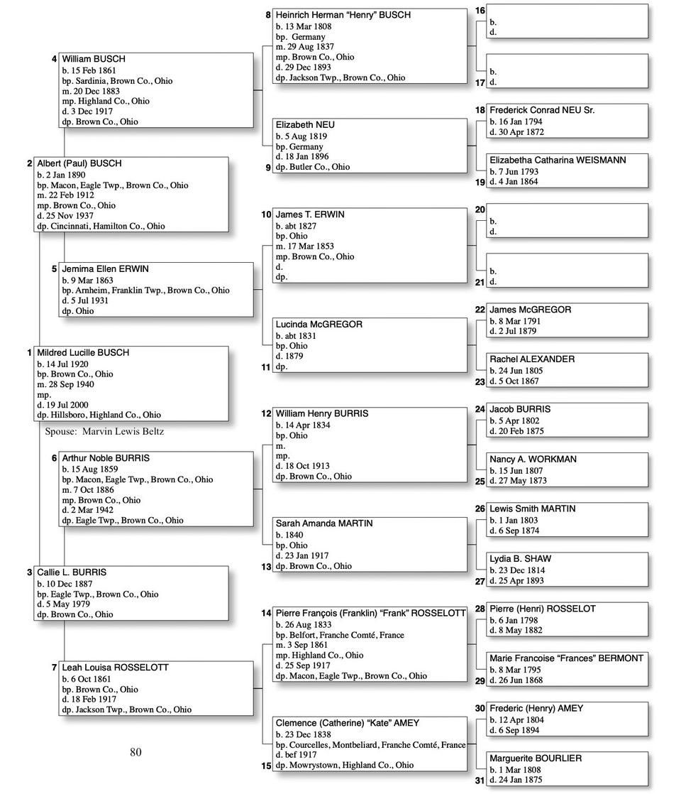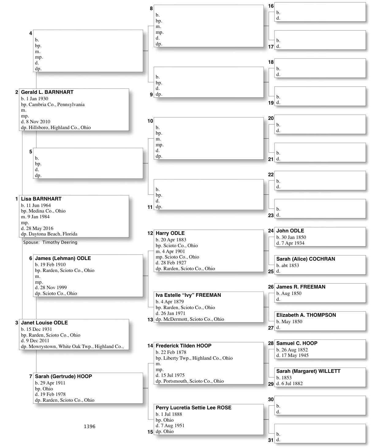 Alphabetized with link to Five Generation Chart