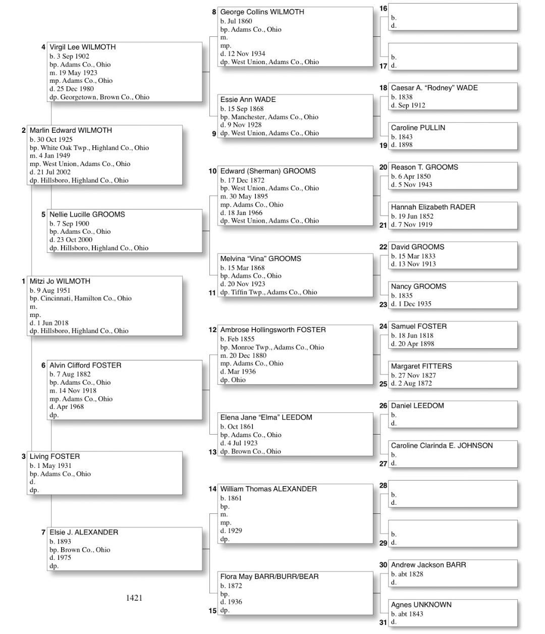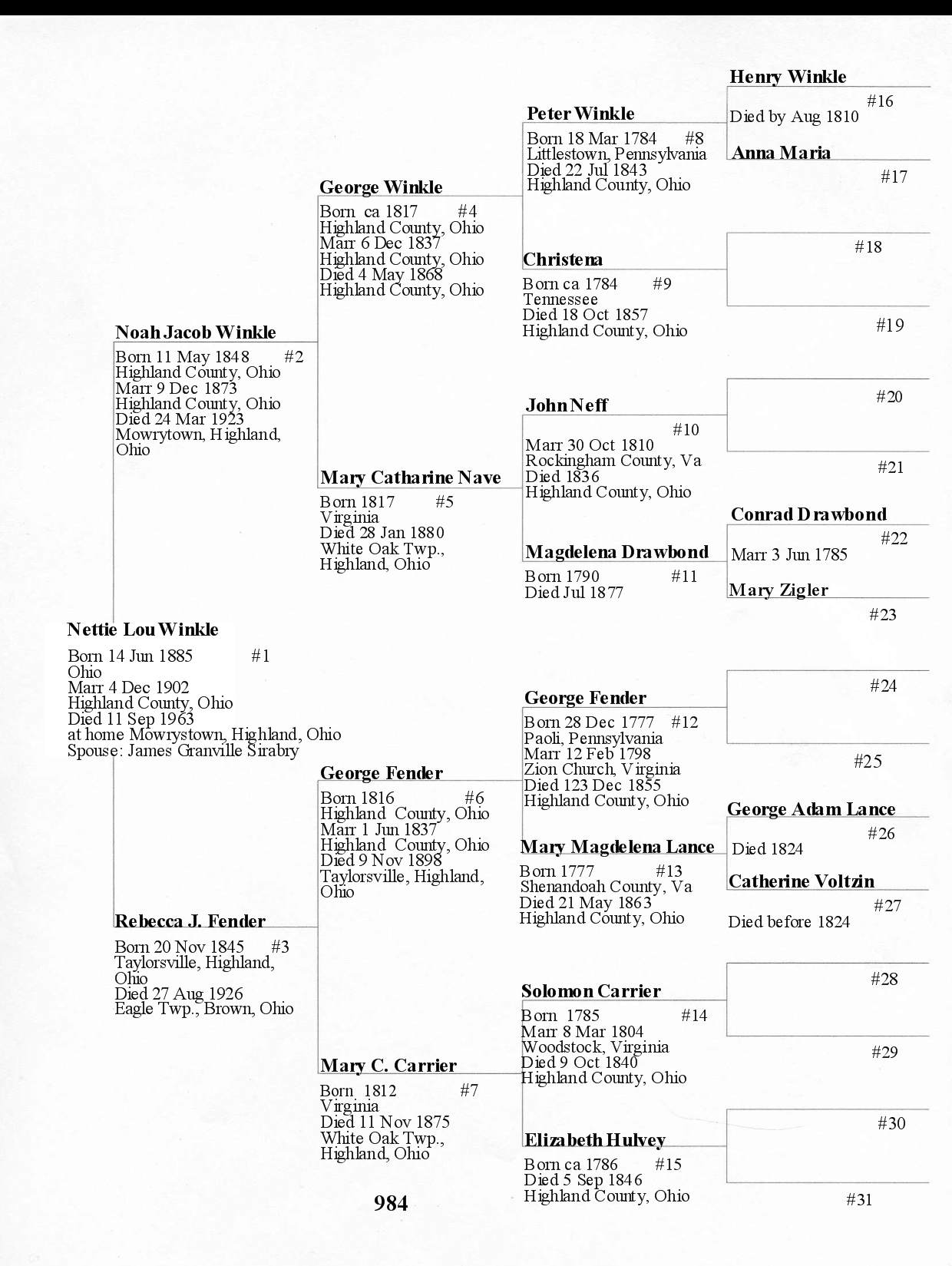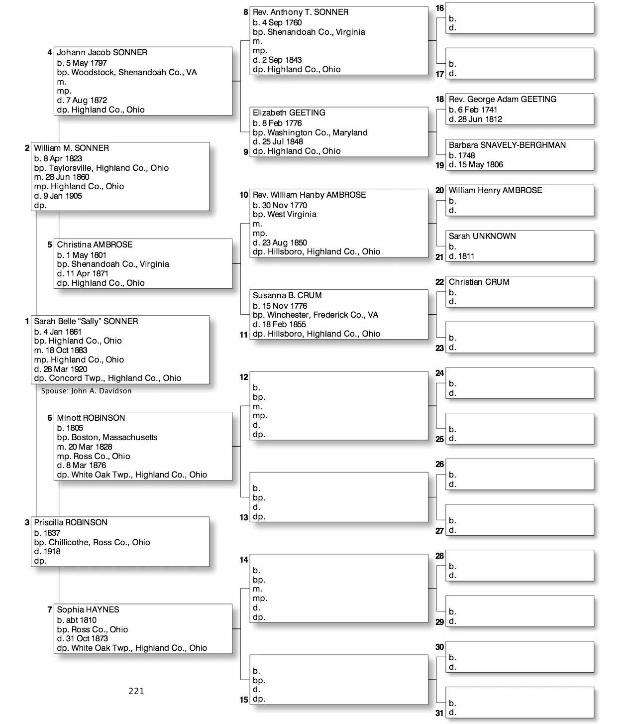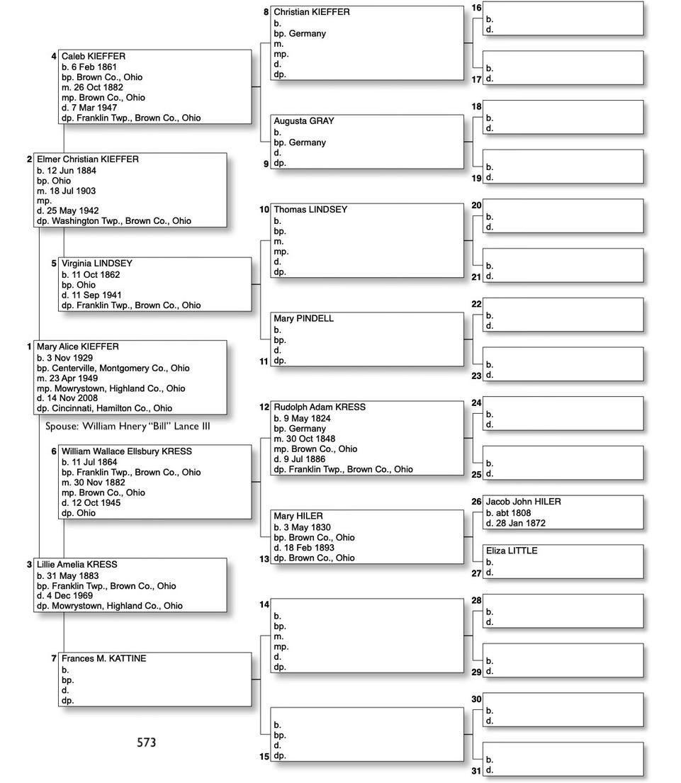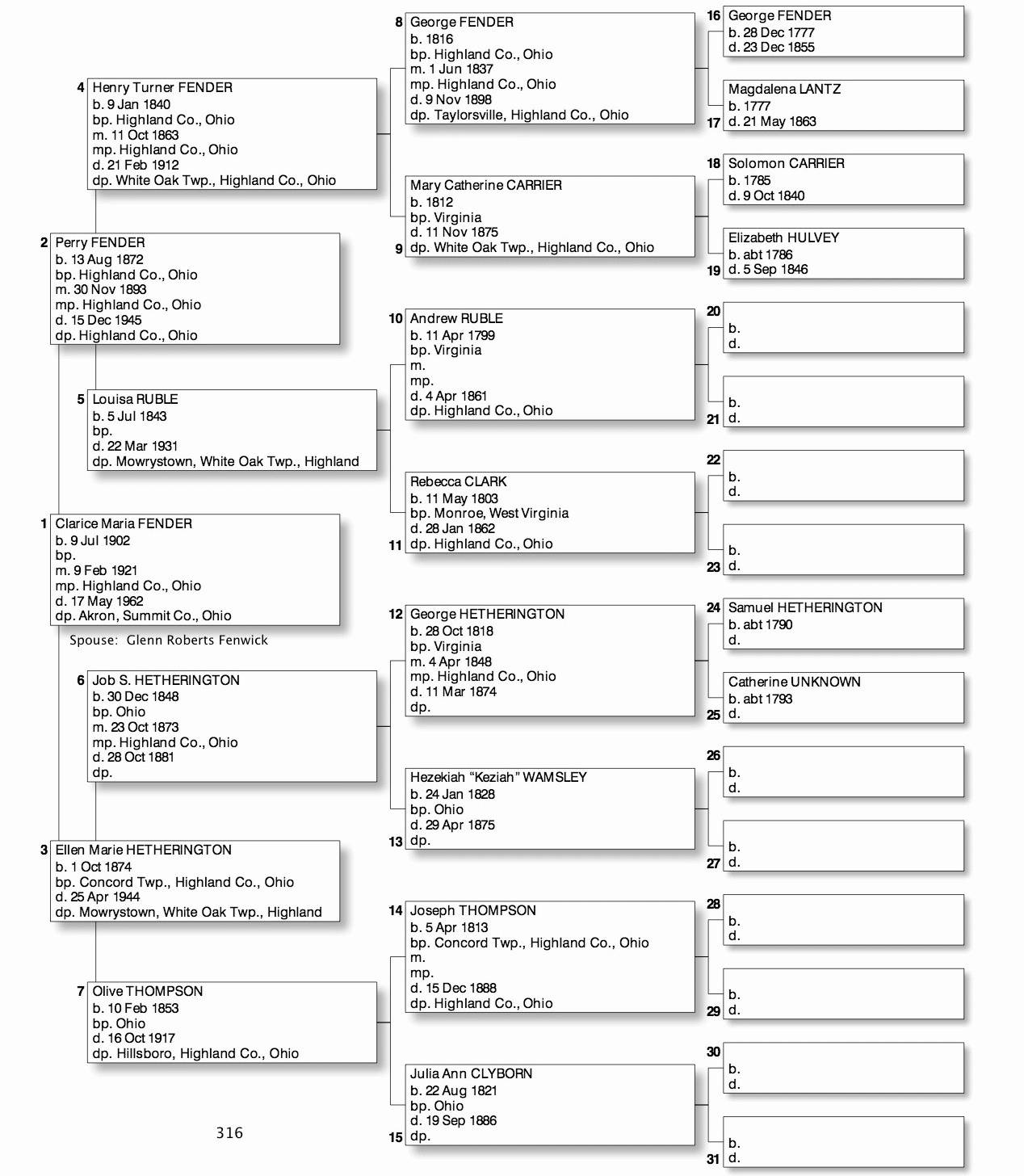 Alphabetized with link to Five Generation Chart