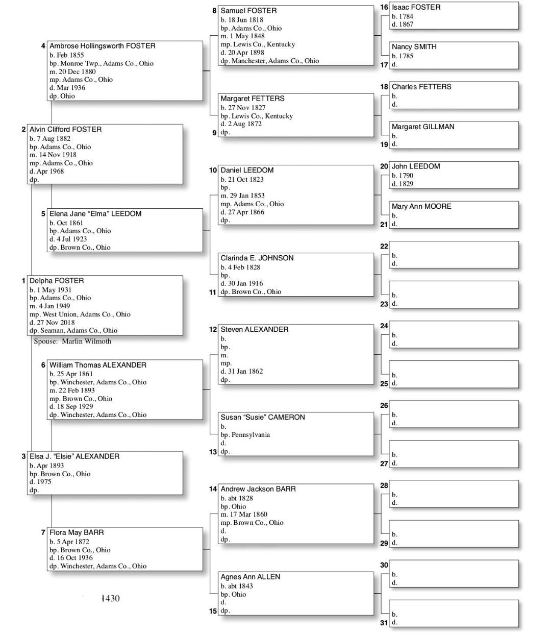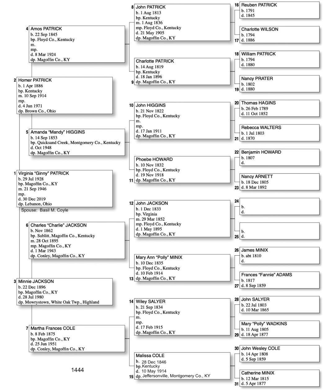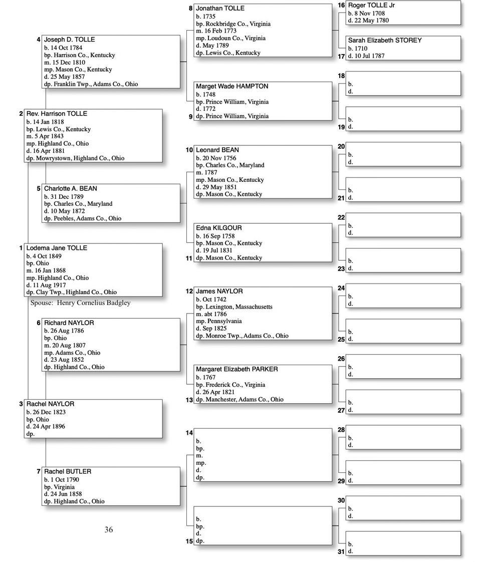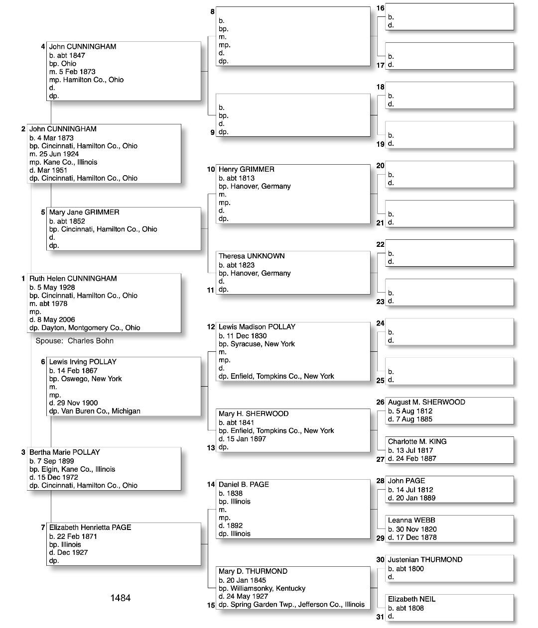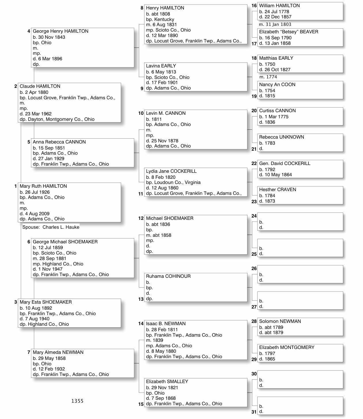 Alphabetized with link to Five Generation Chart