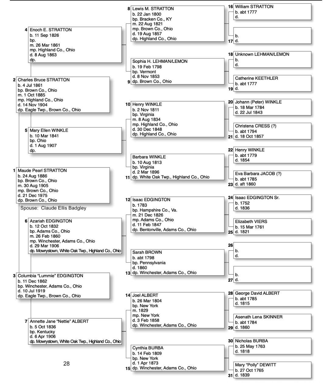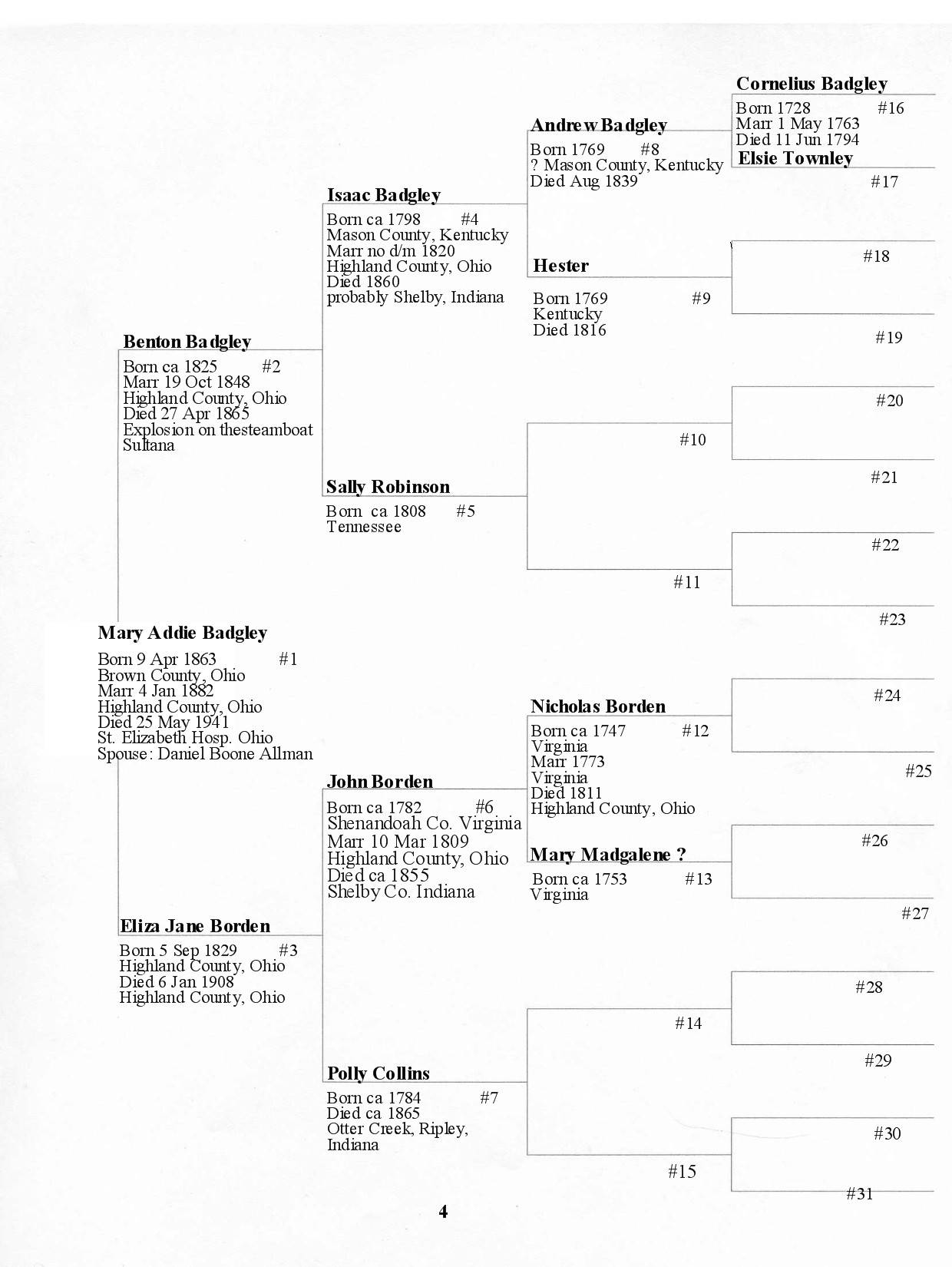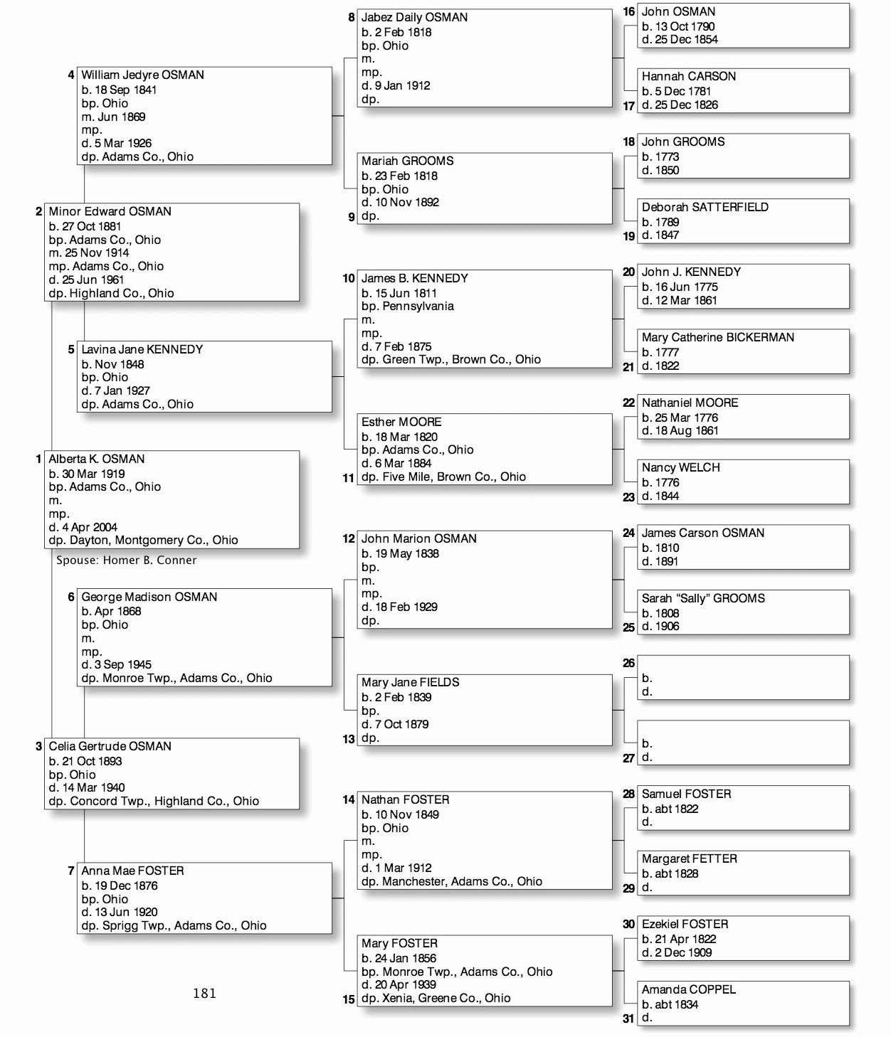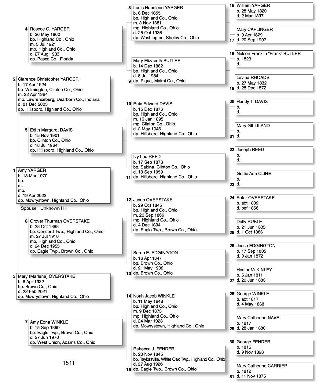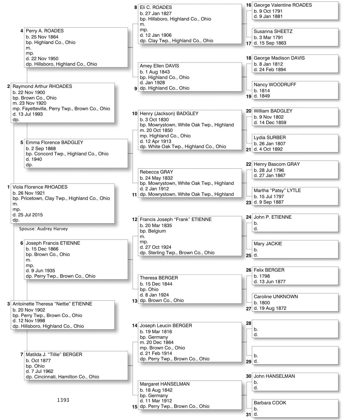 Alphabetized with link to Five Generation Chart