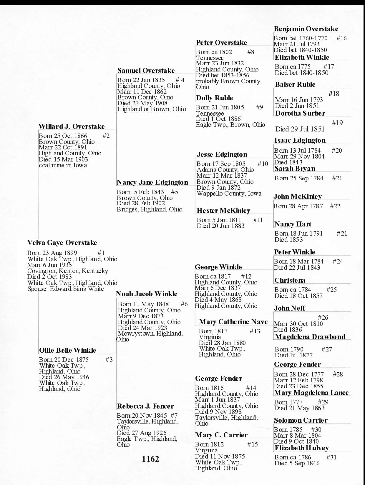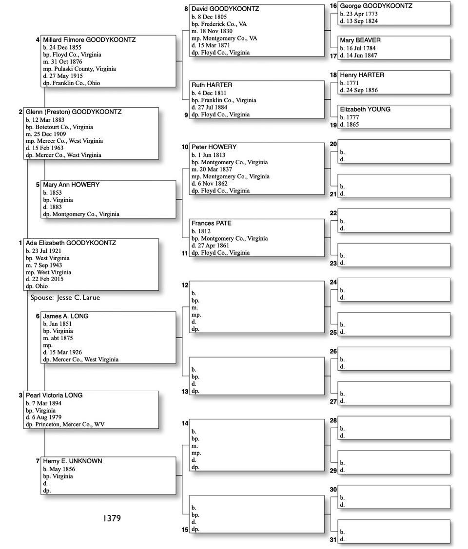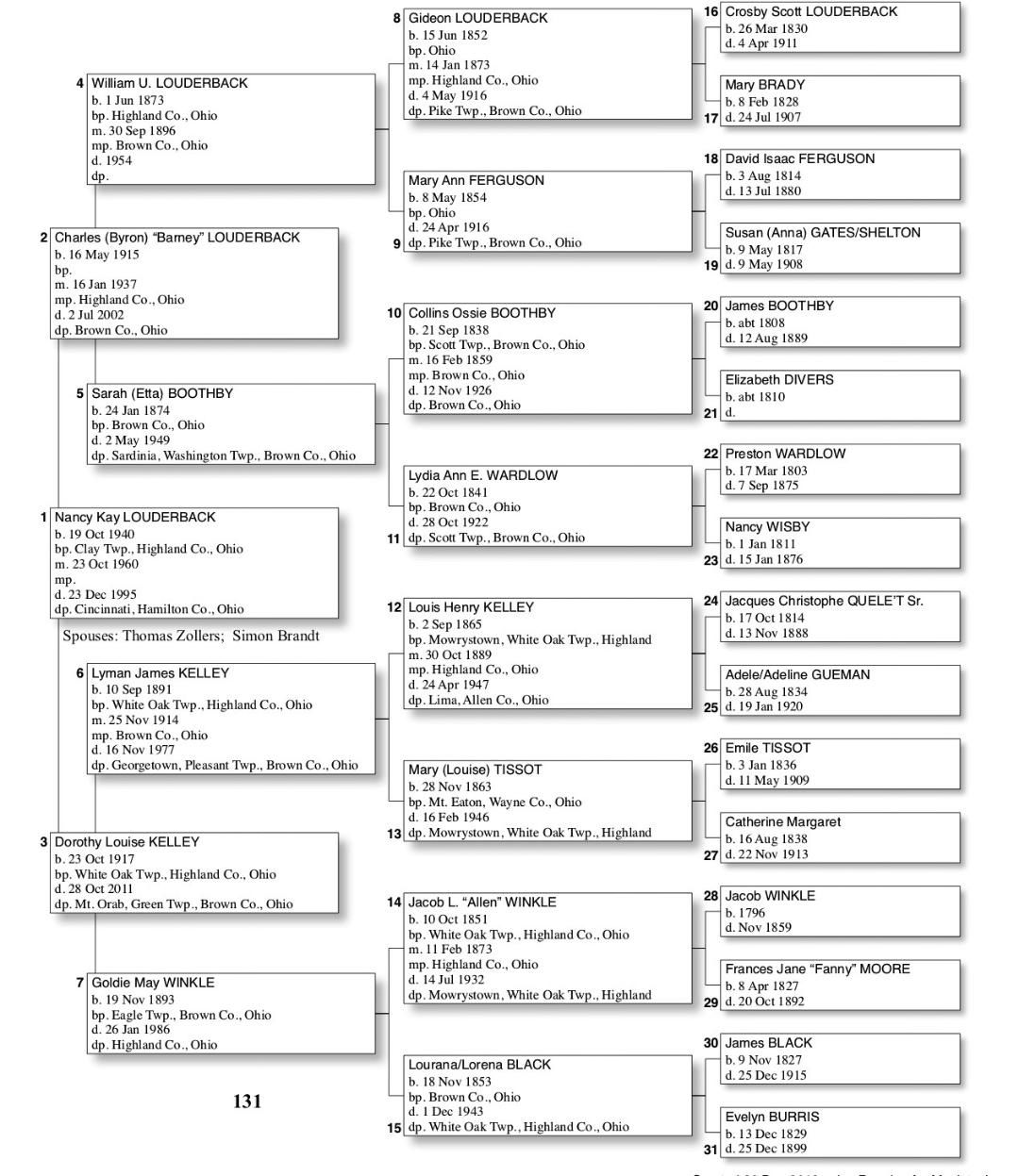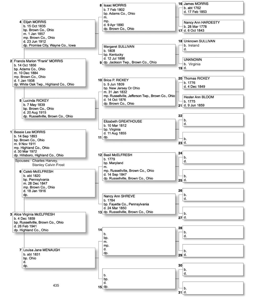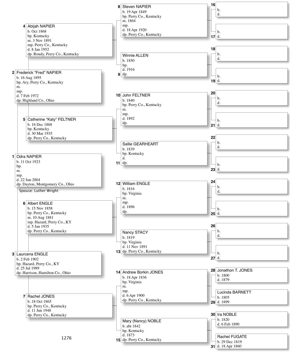 Alphabetized with link to Five Generation Chart