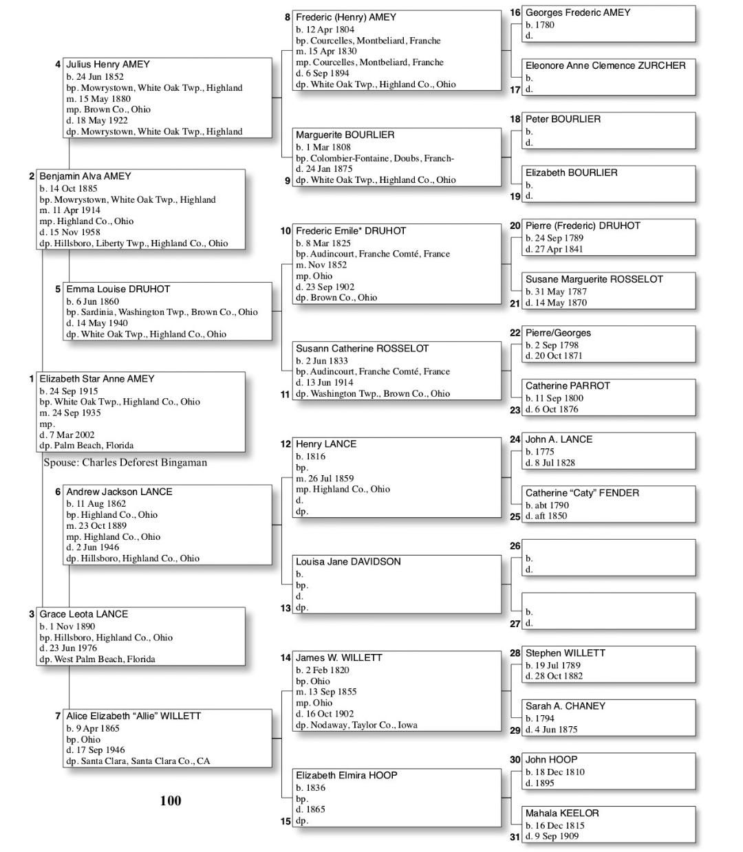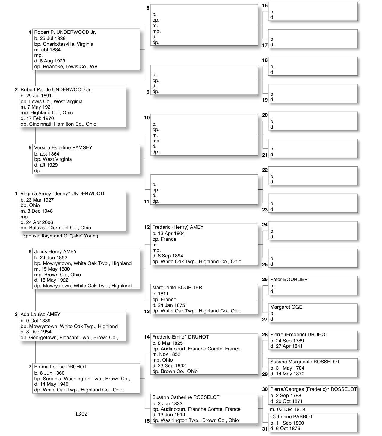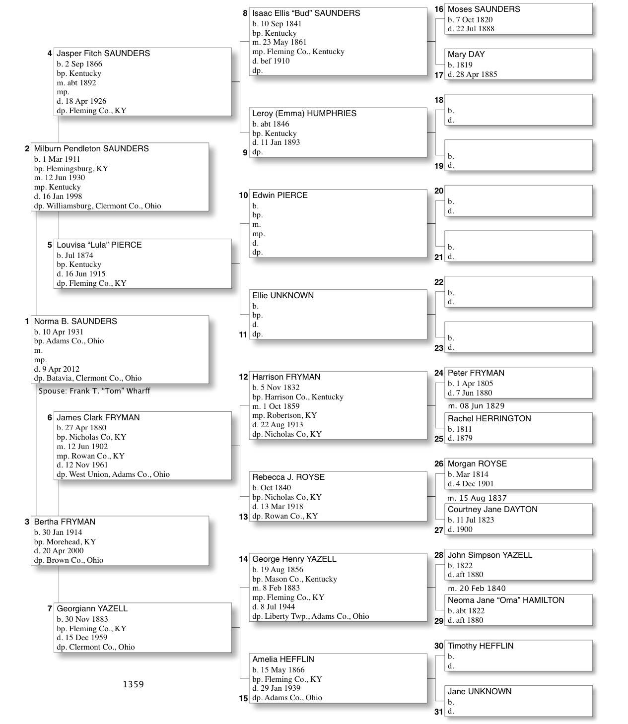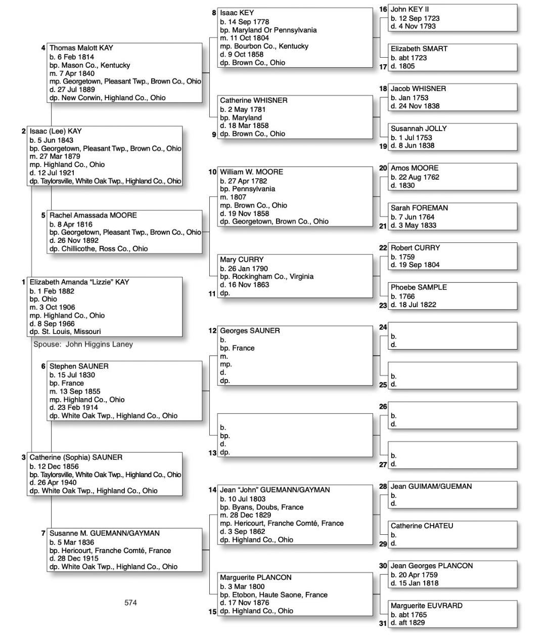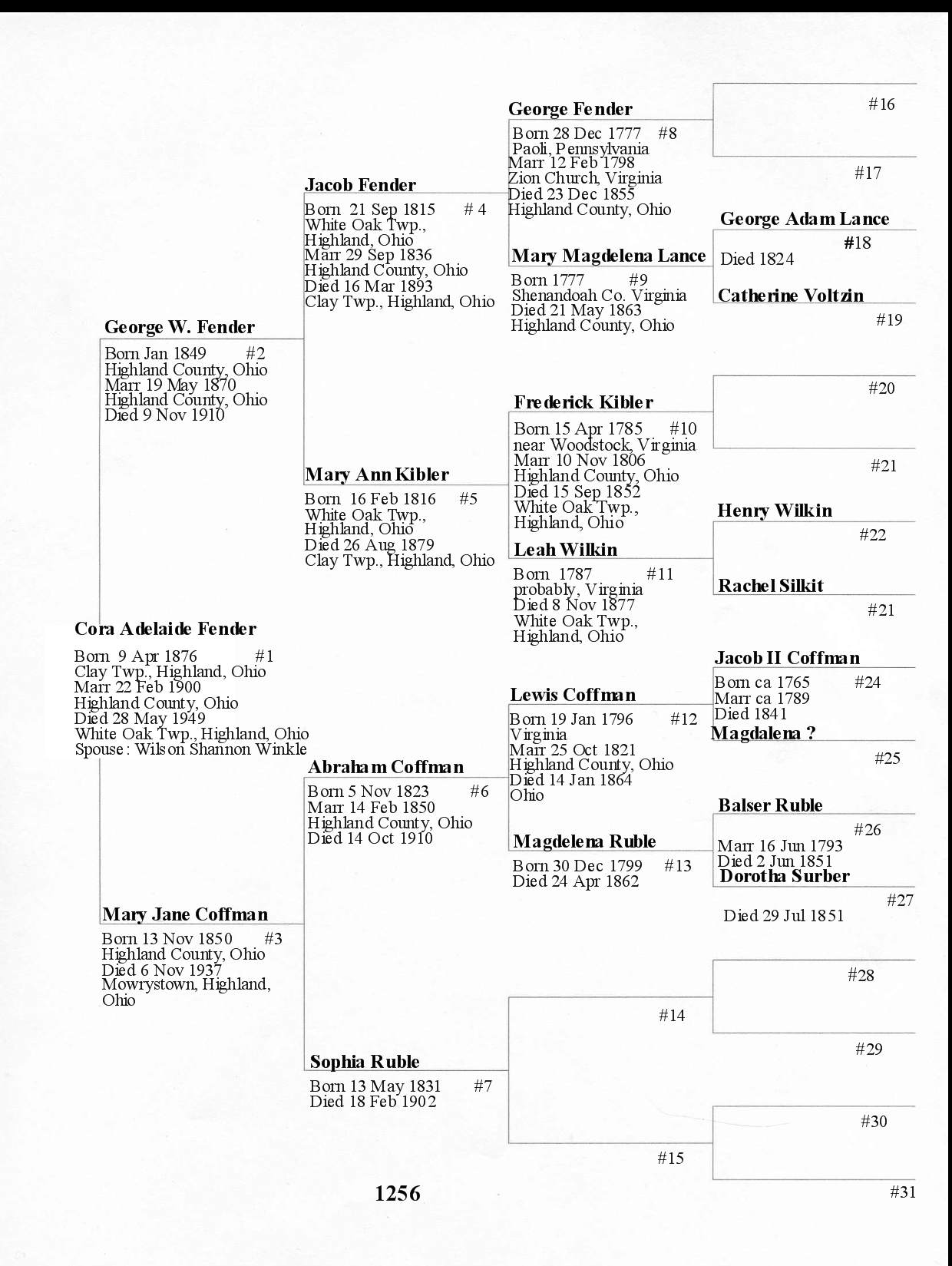 Alphabetized with link to Five Generation Chart