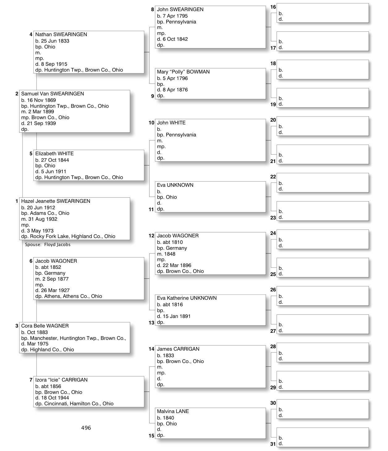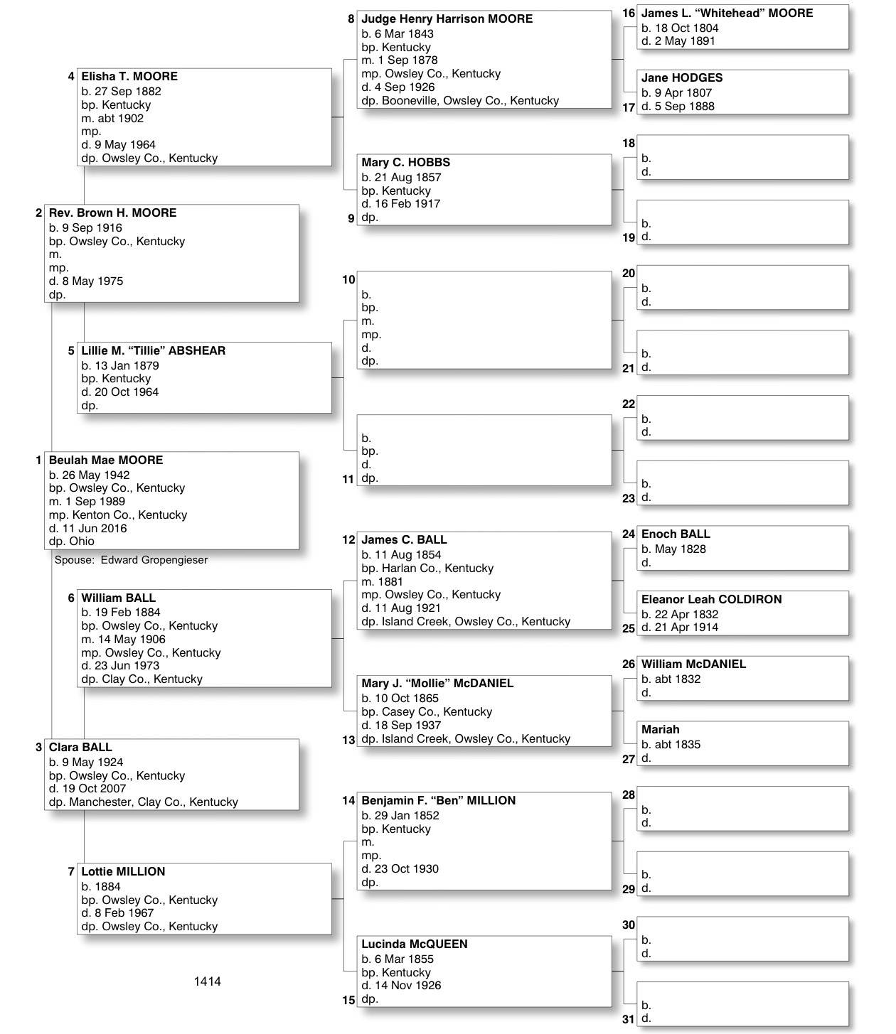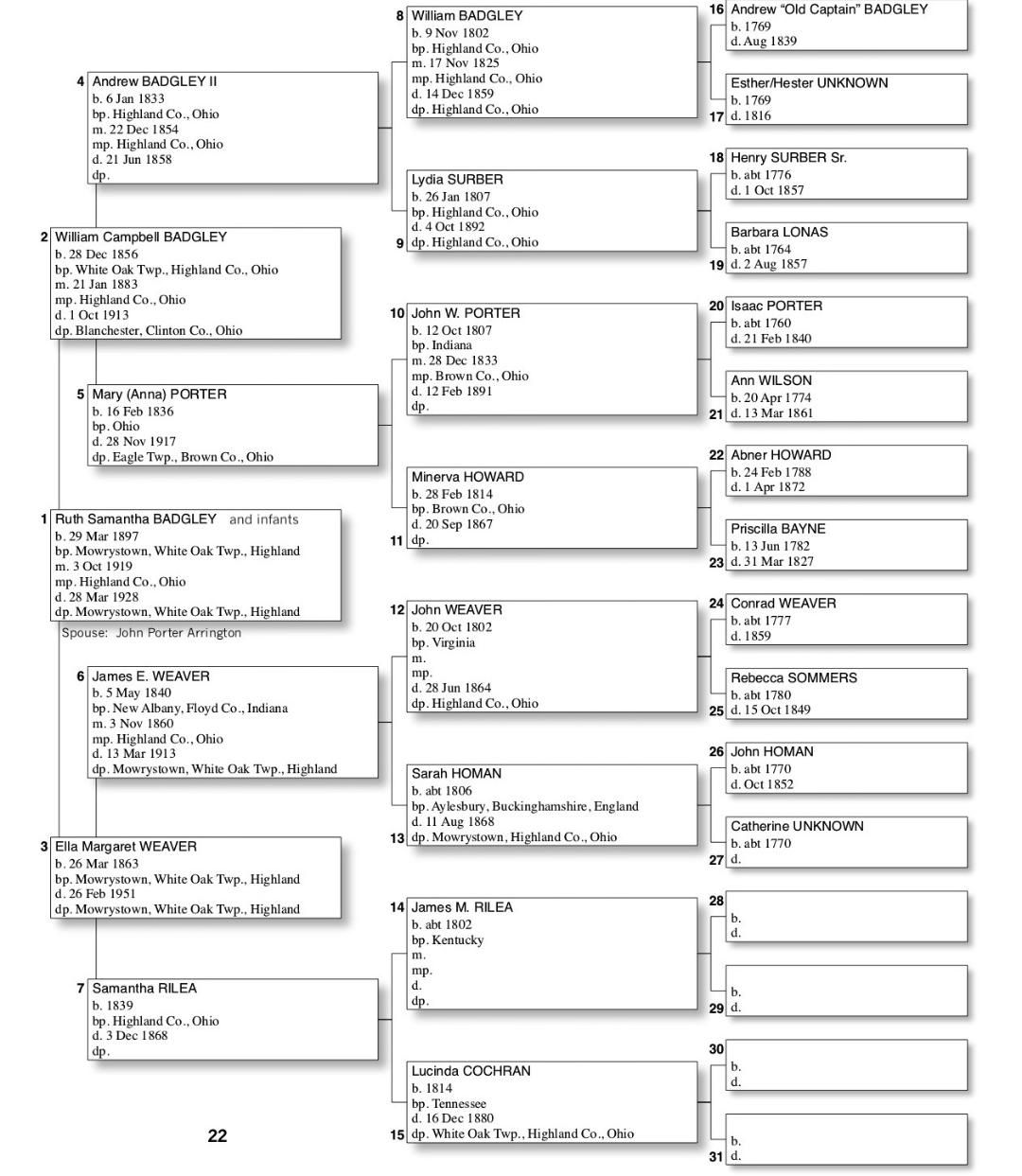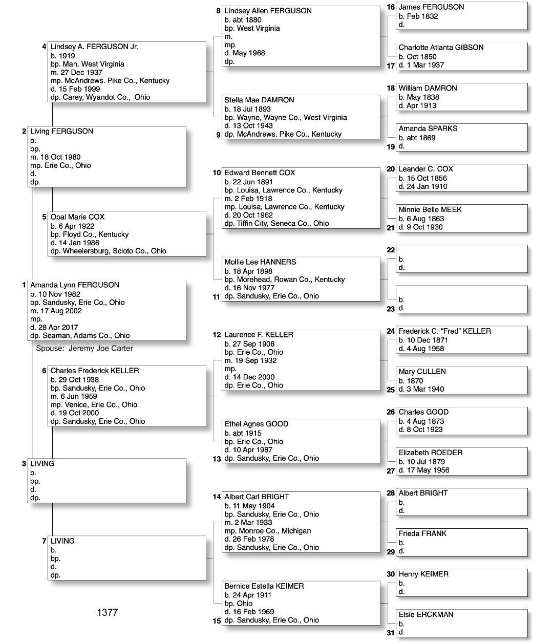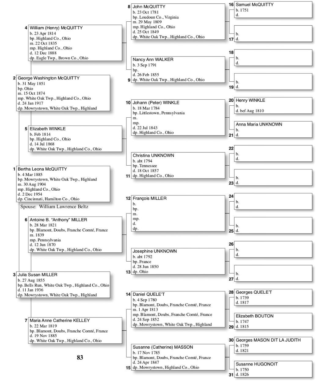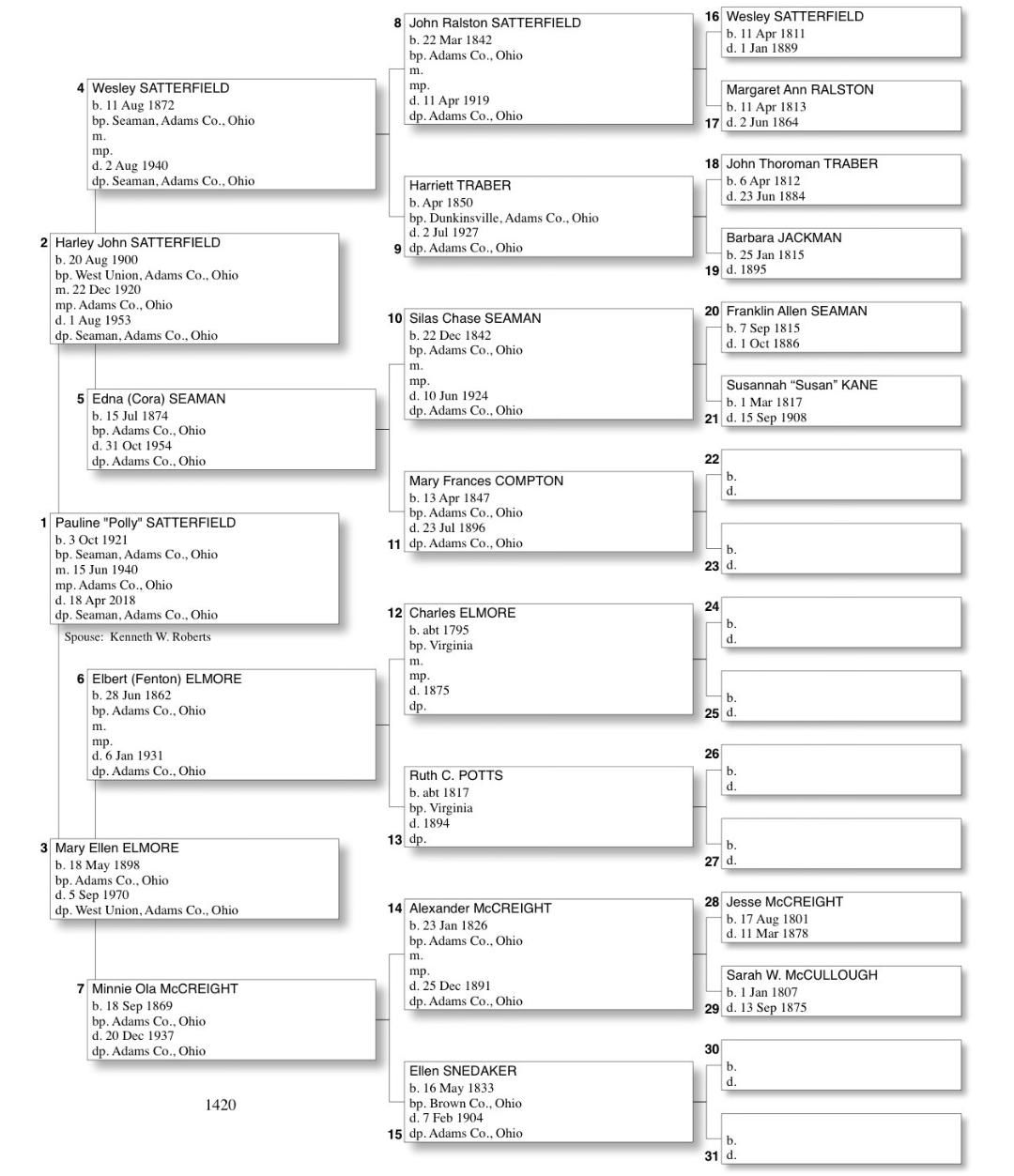 Alphabetized with link to Five Generation Chart