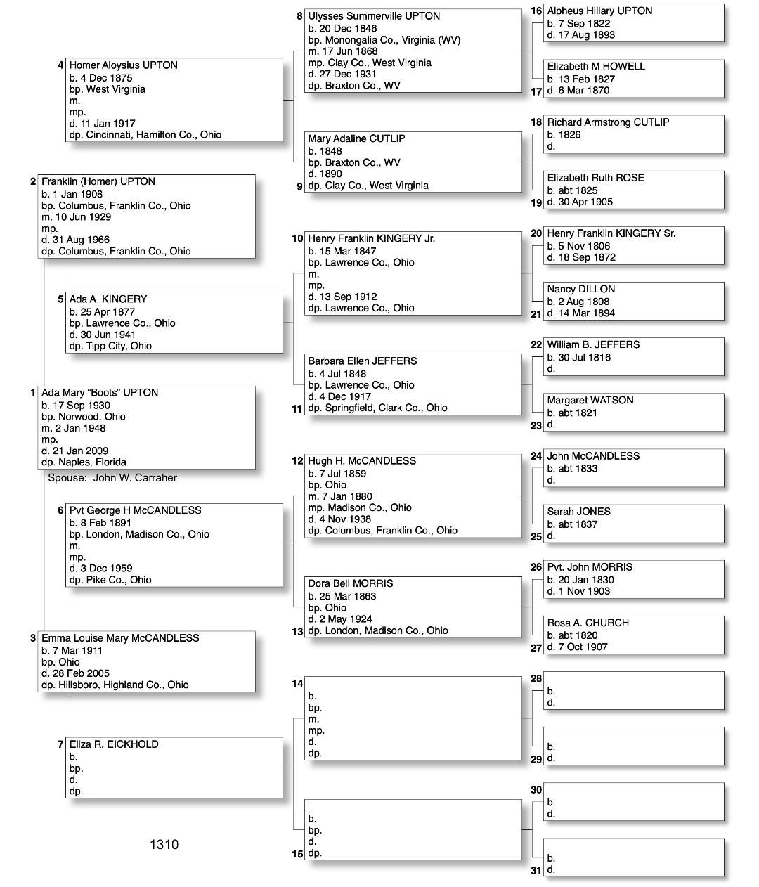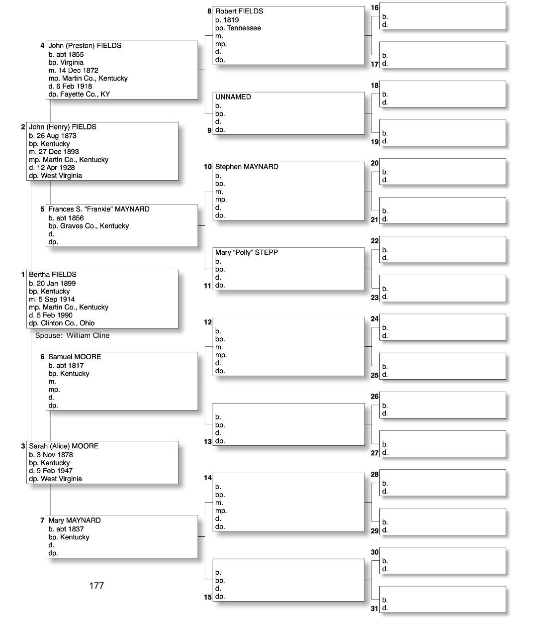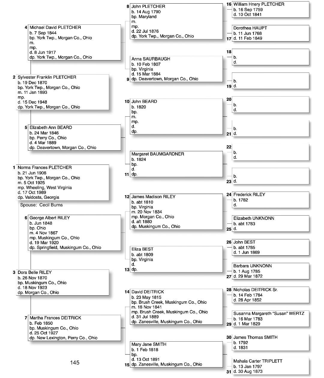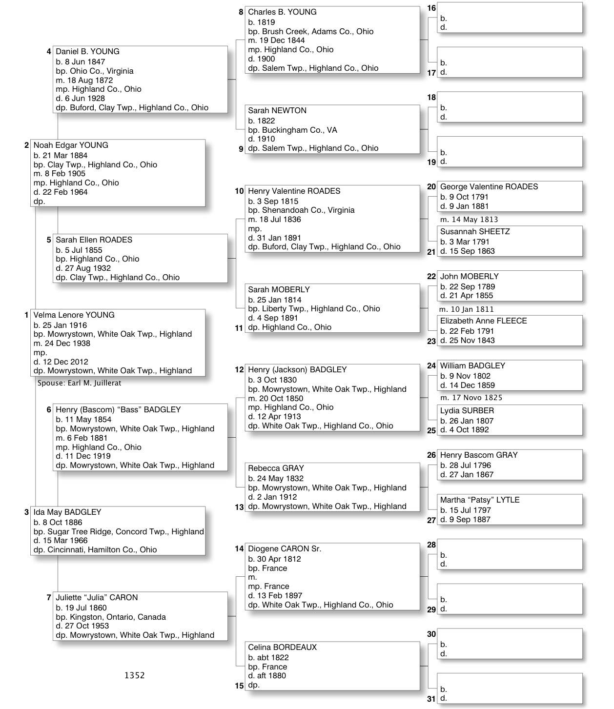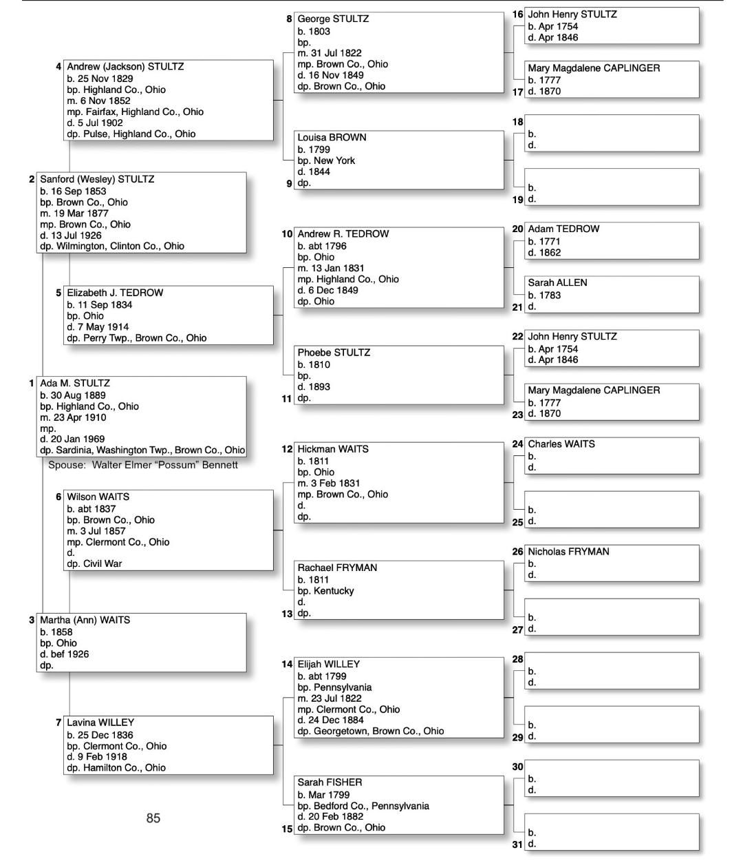 Alphabetized with link to Five Generation Chart