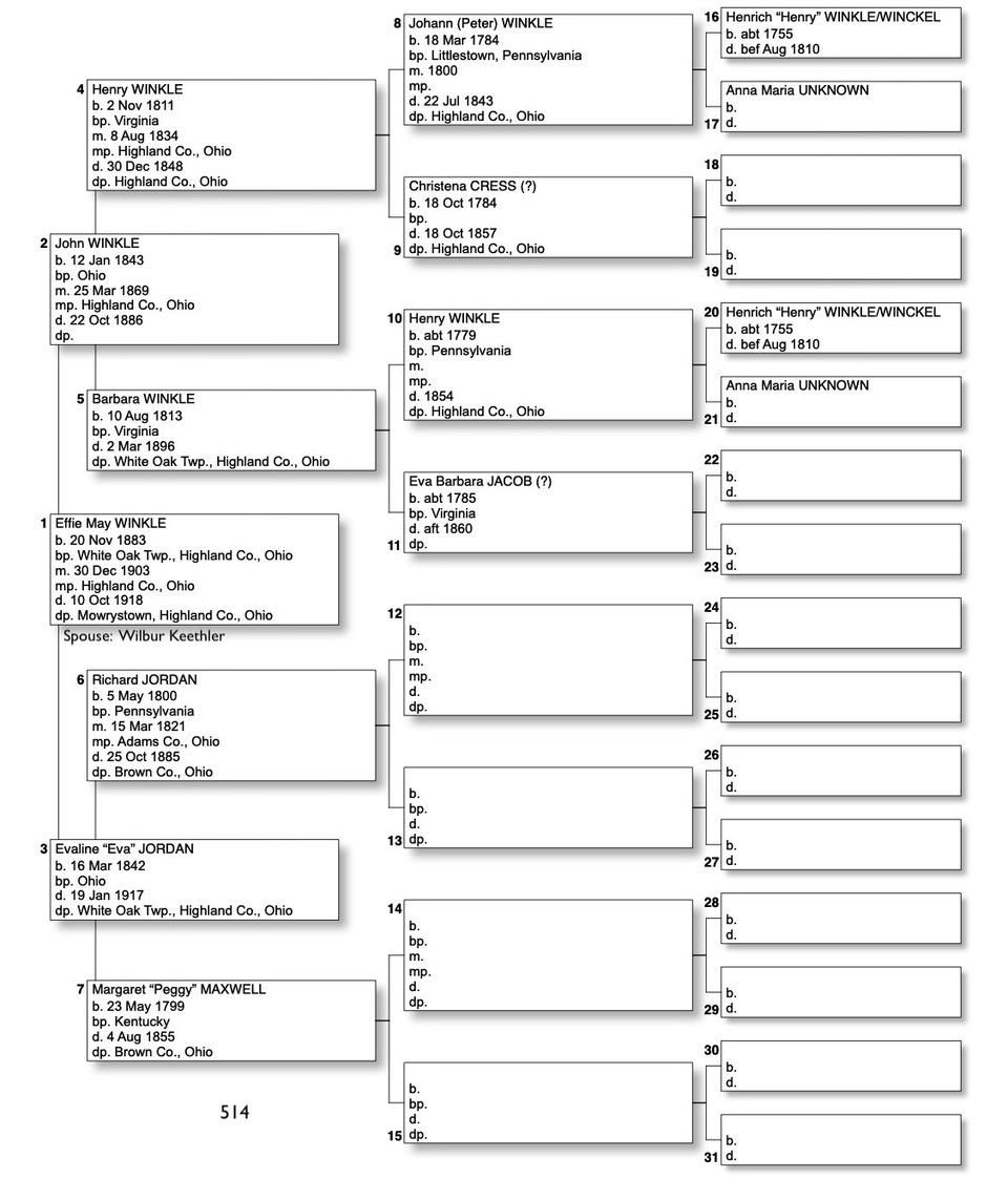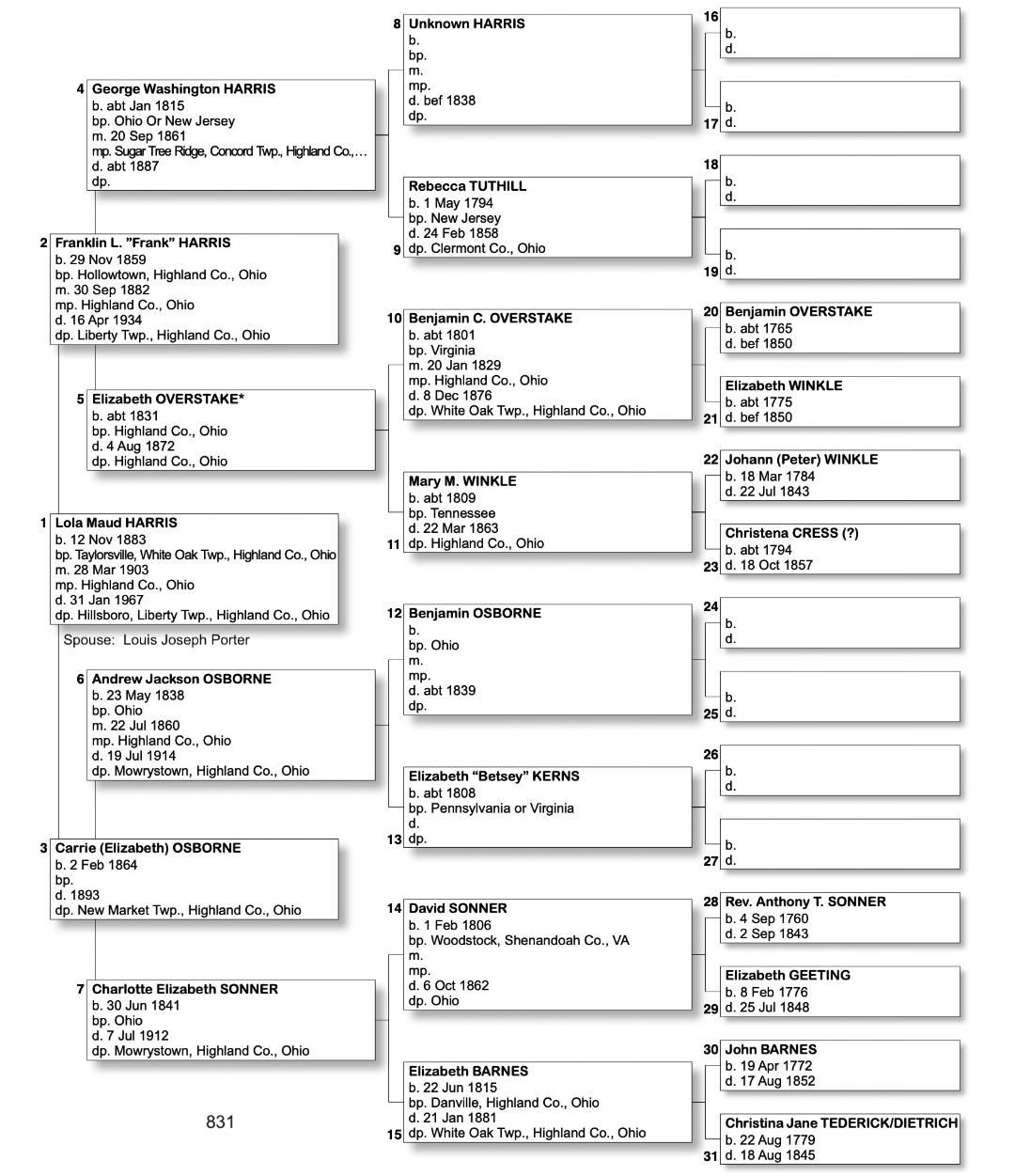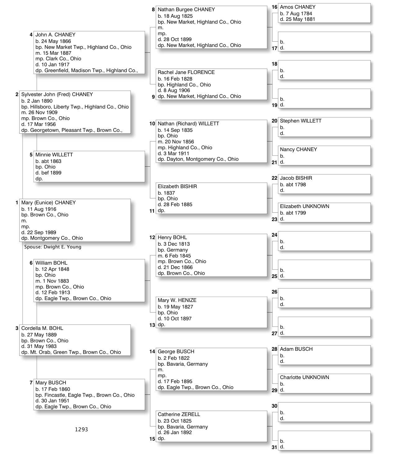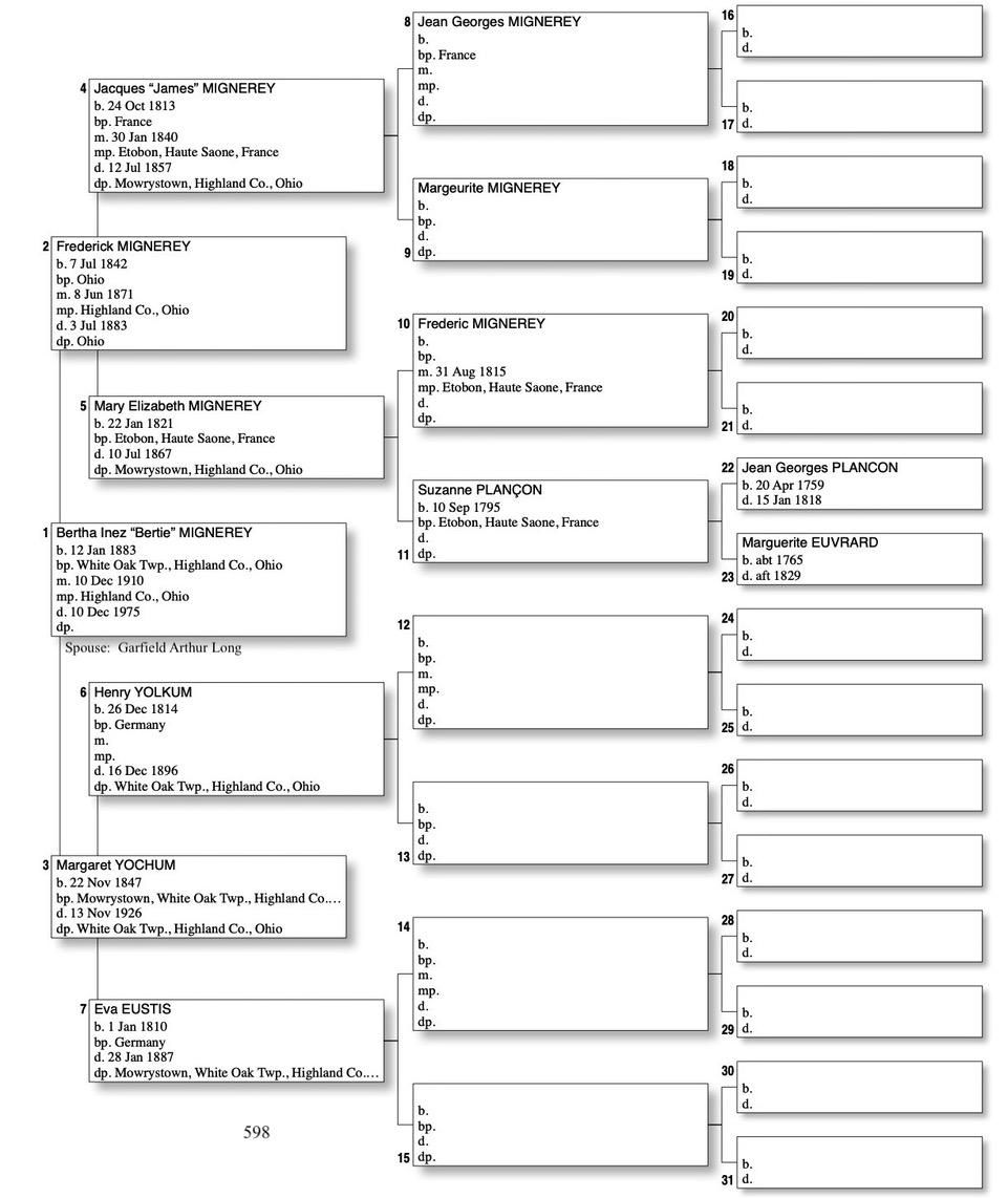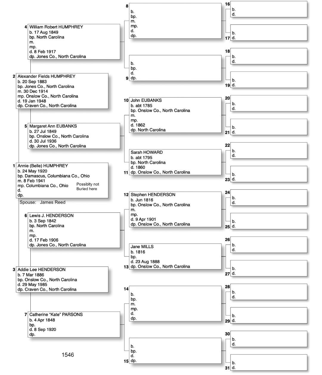 Alphabetized with link to Five Generation Chart