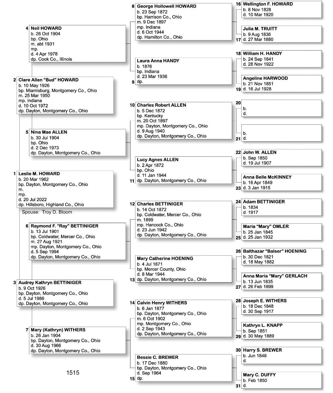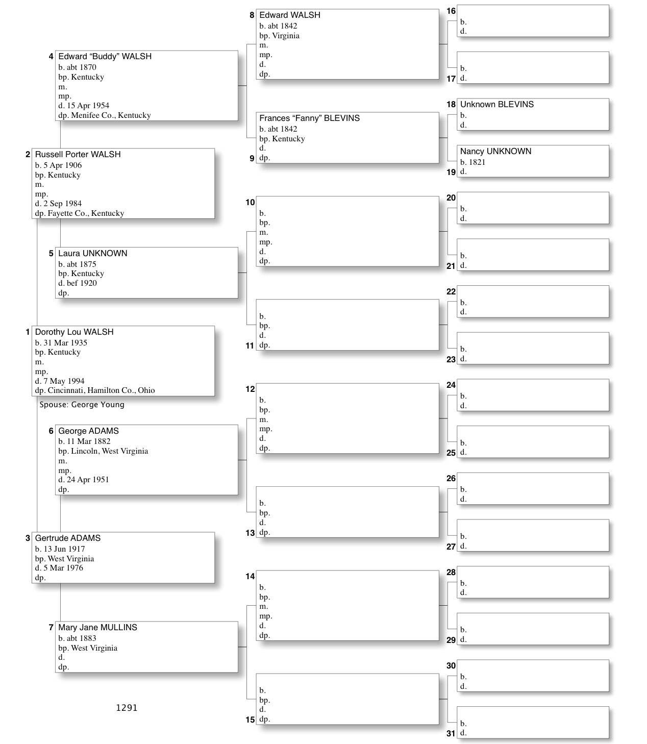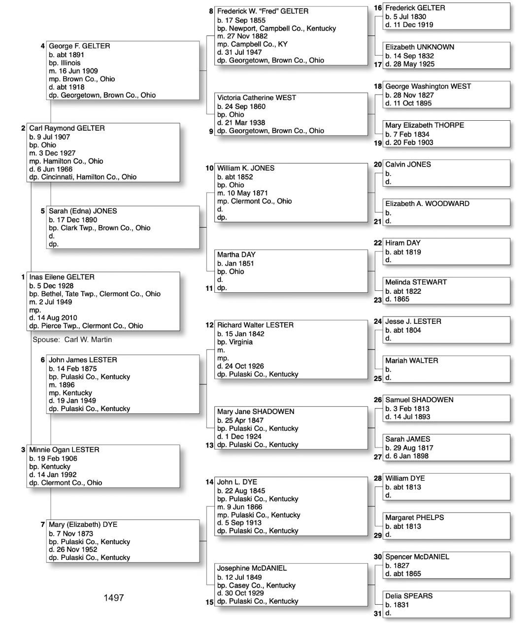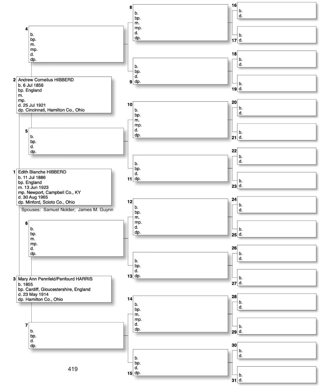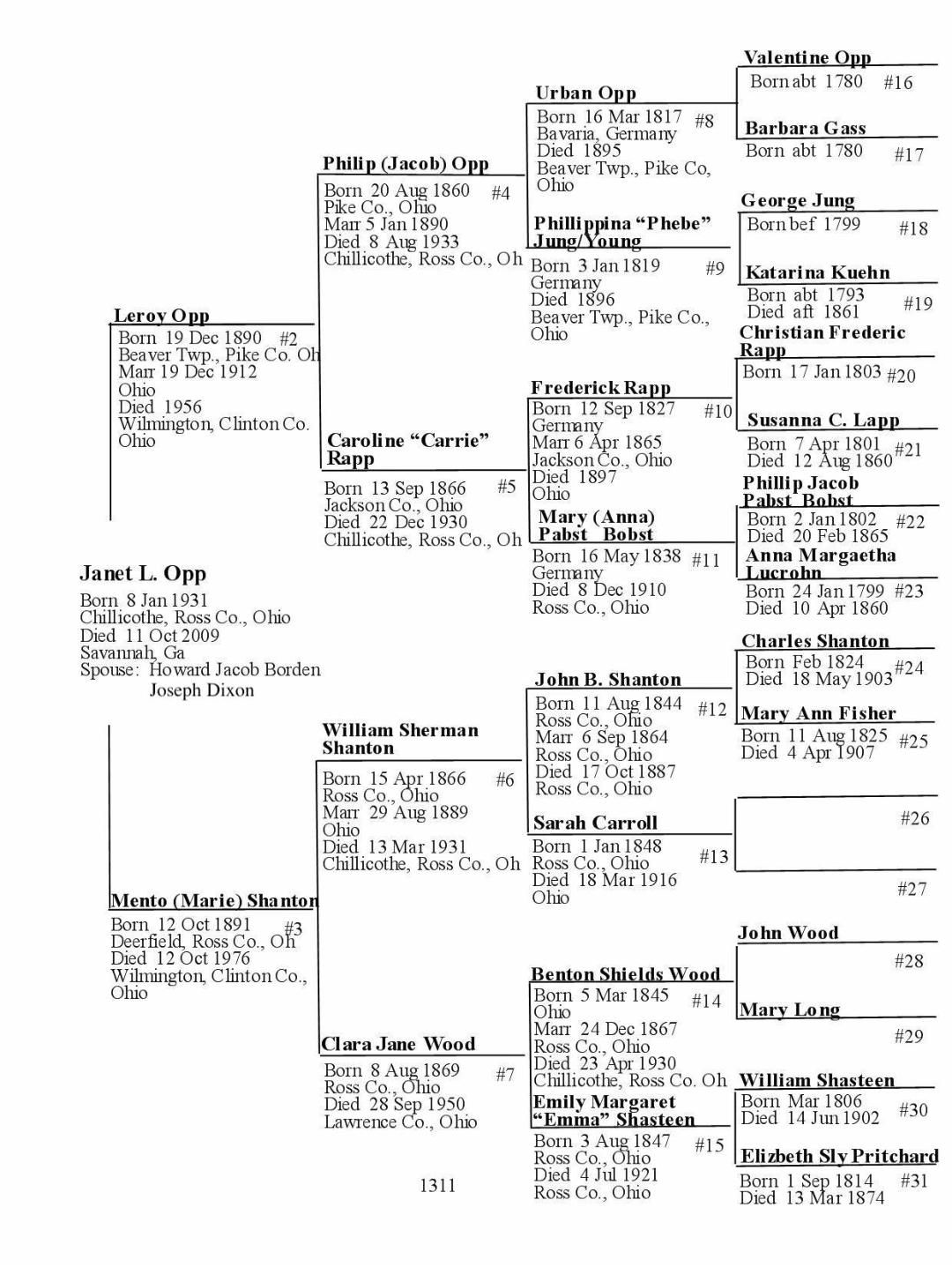 Alphabetized with link to Five Generation Chart