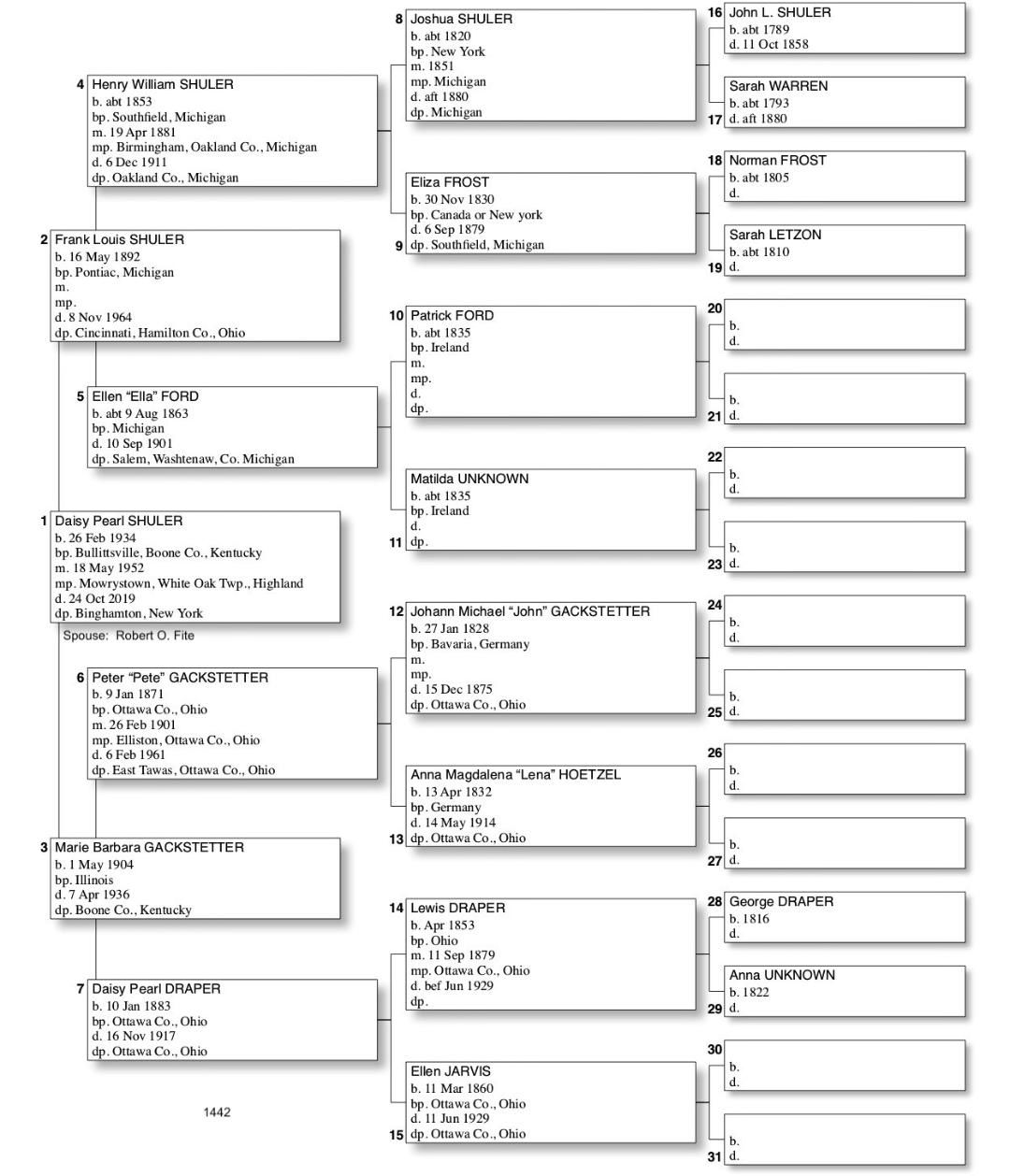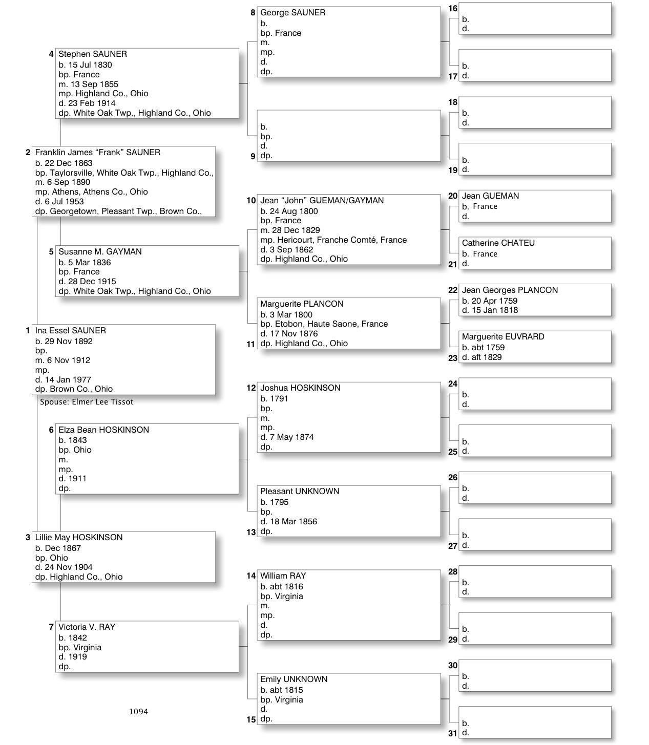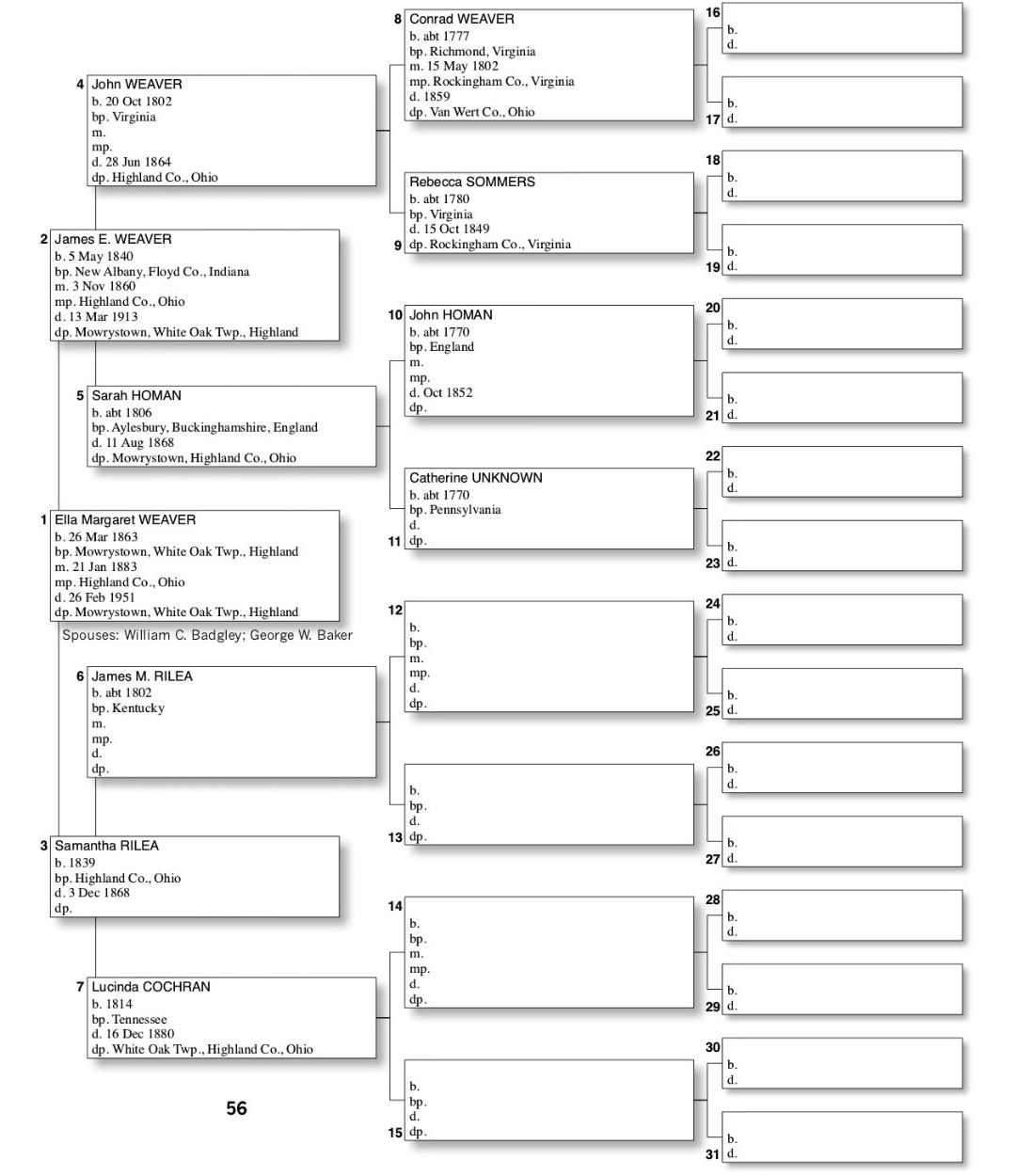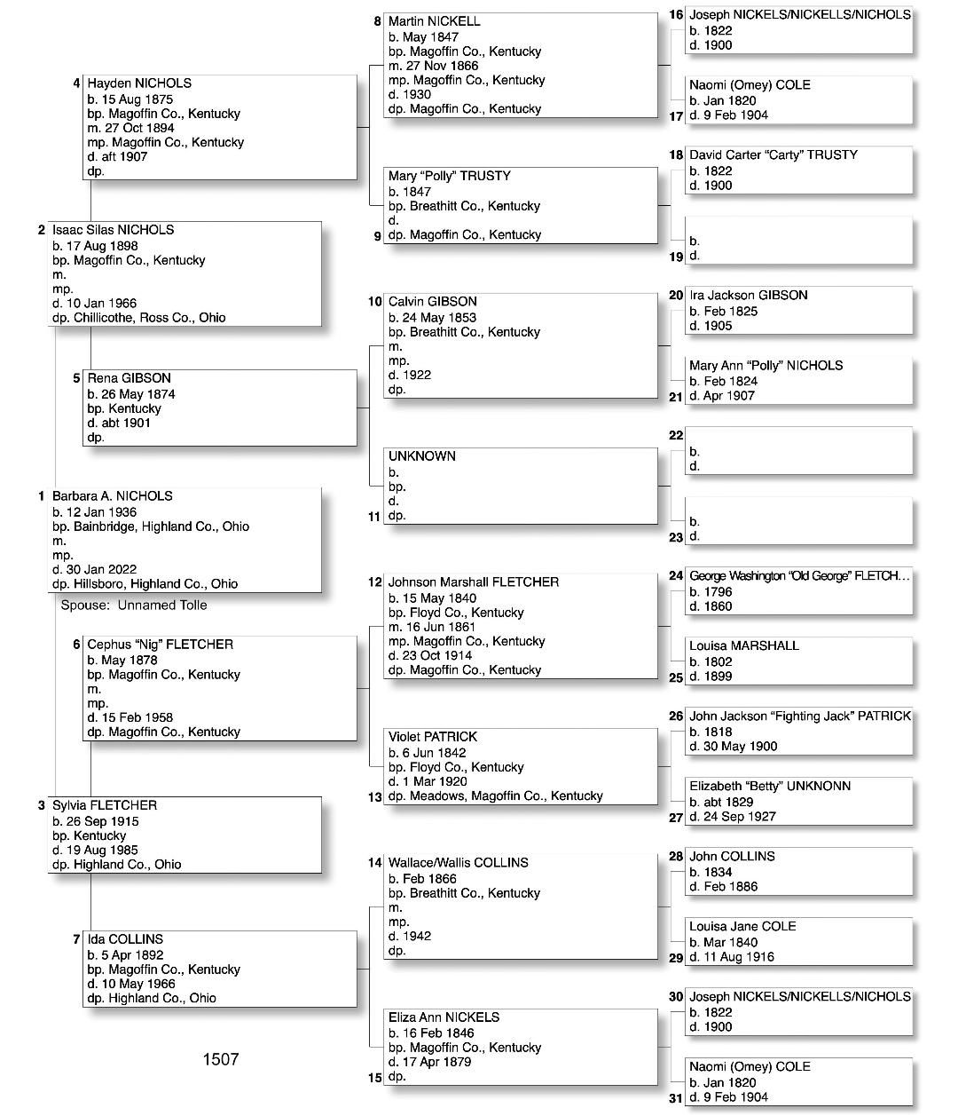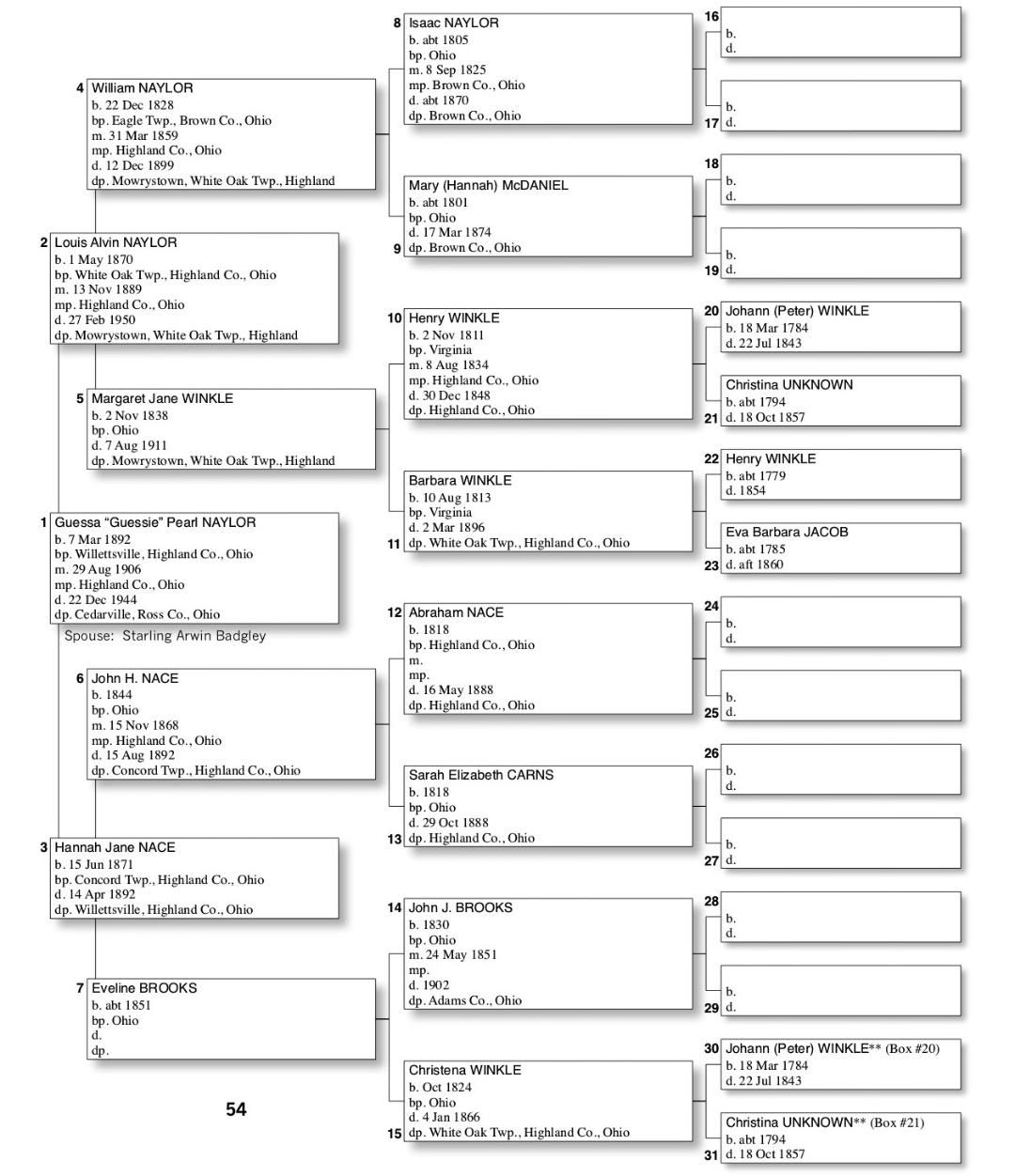 Alphabetized with link to Five Generation Chart