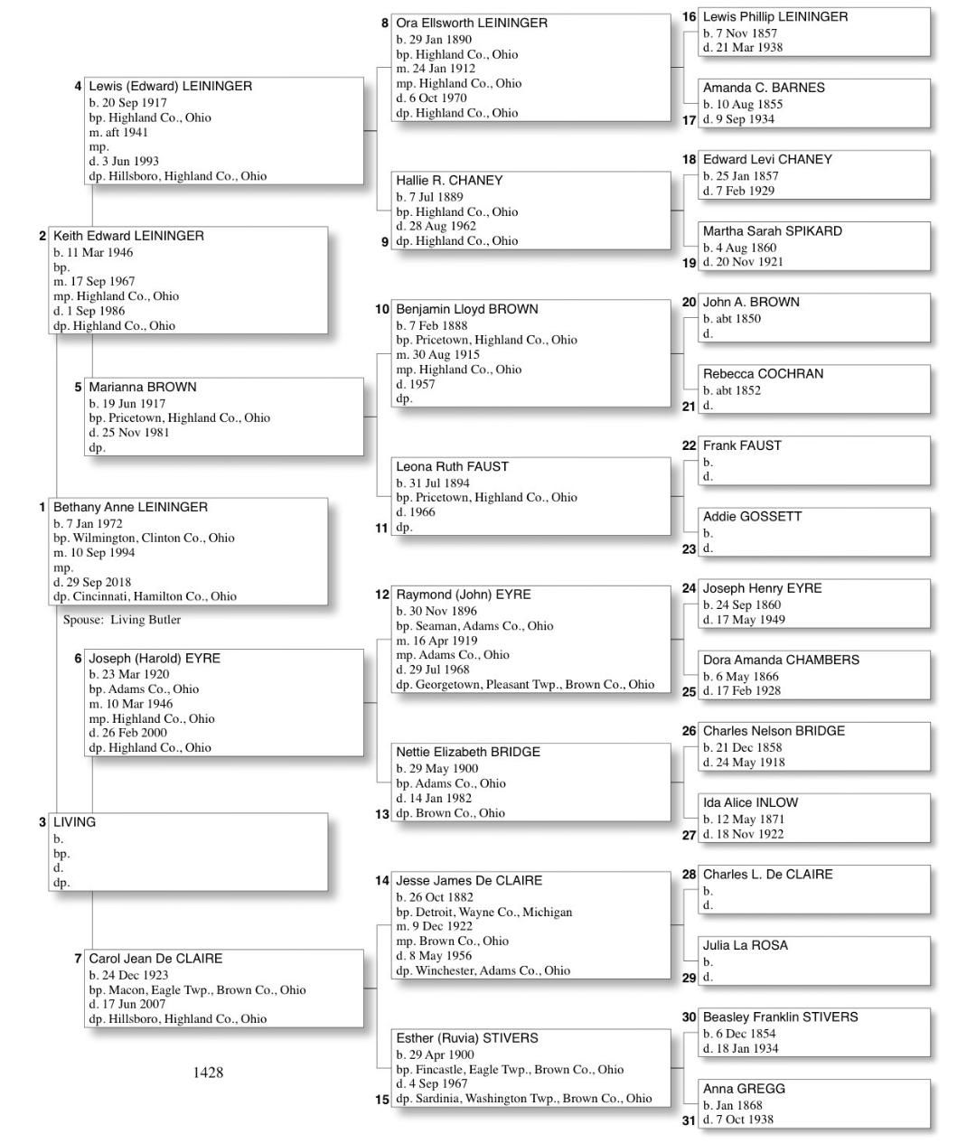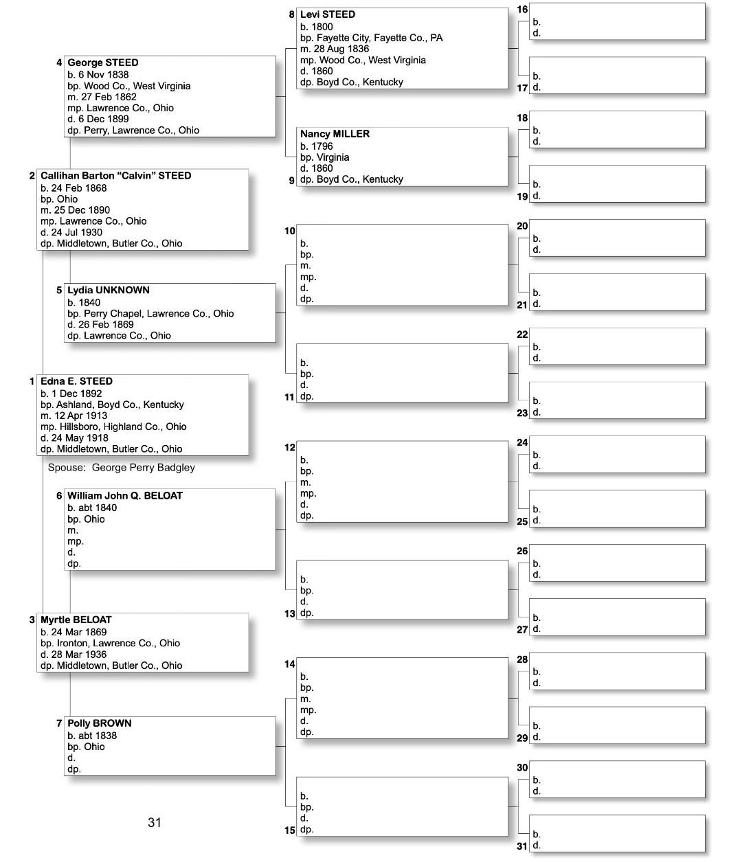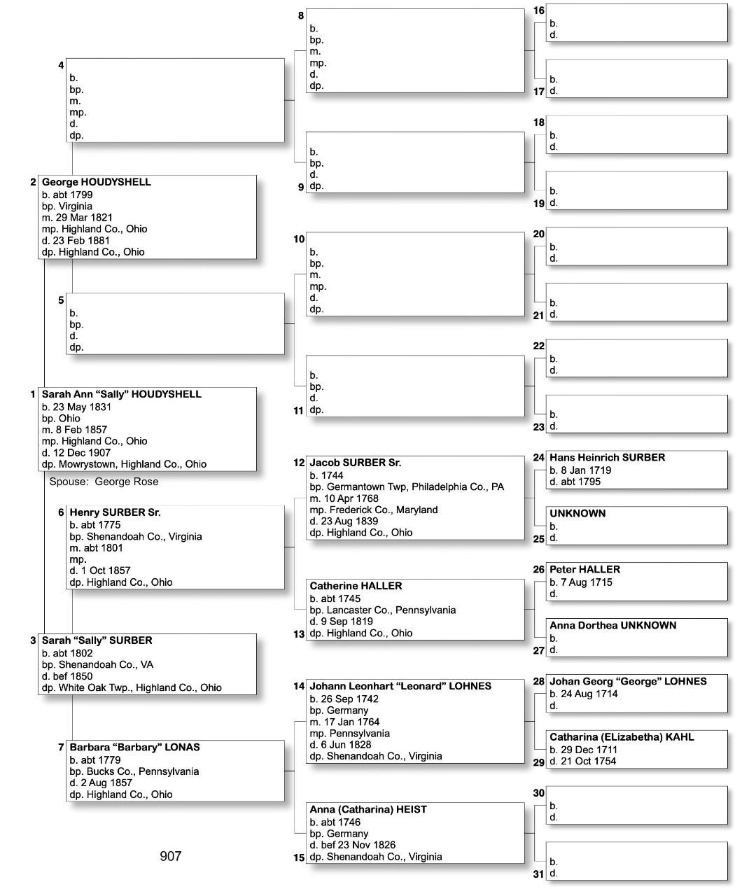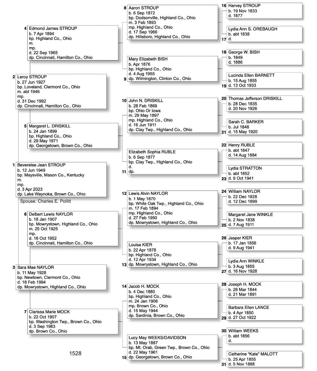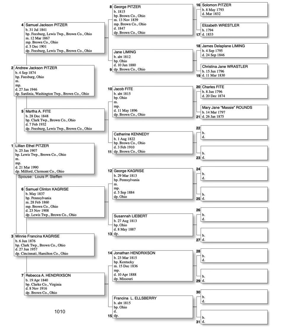 Alphabetized with link to Five Generation Chart