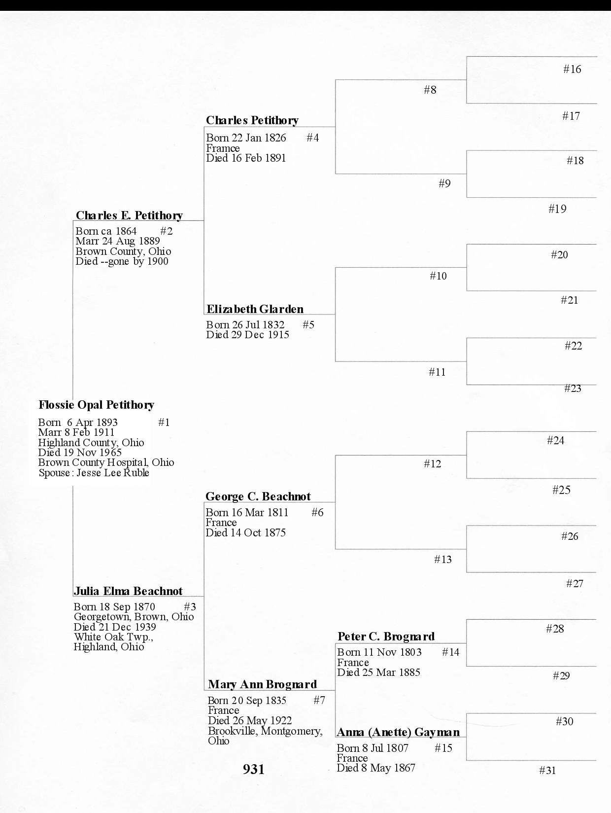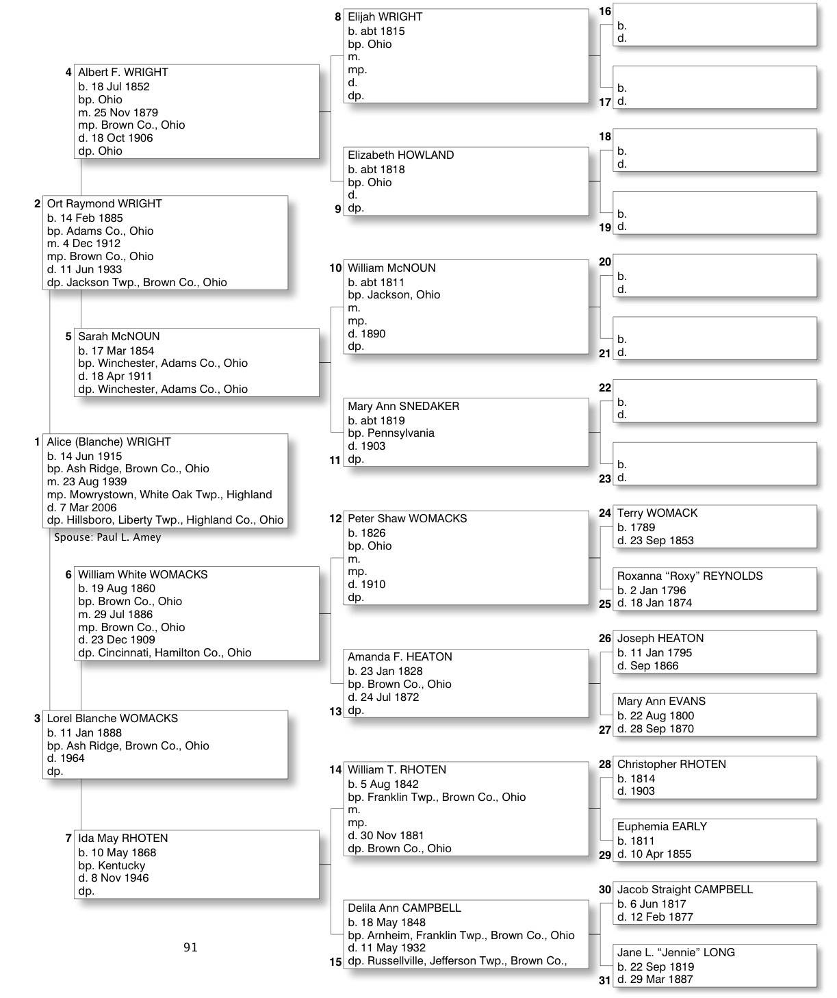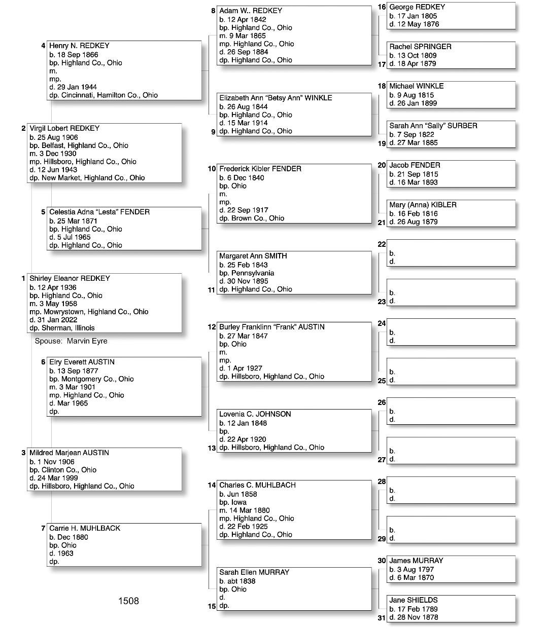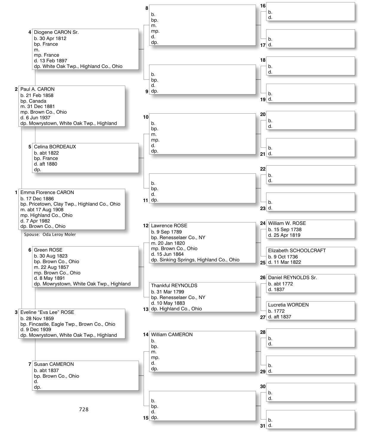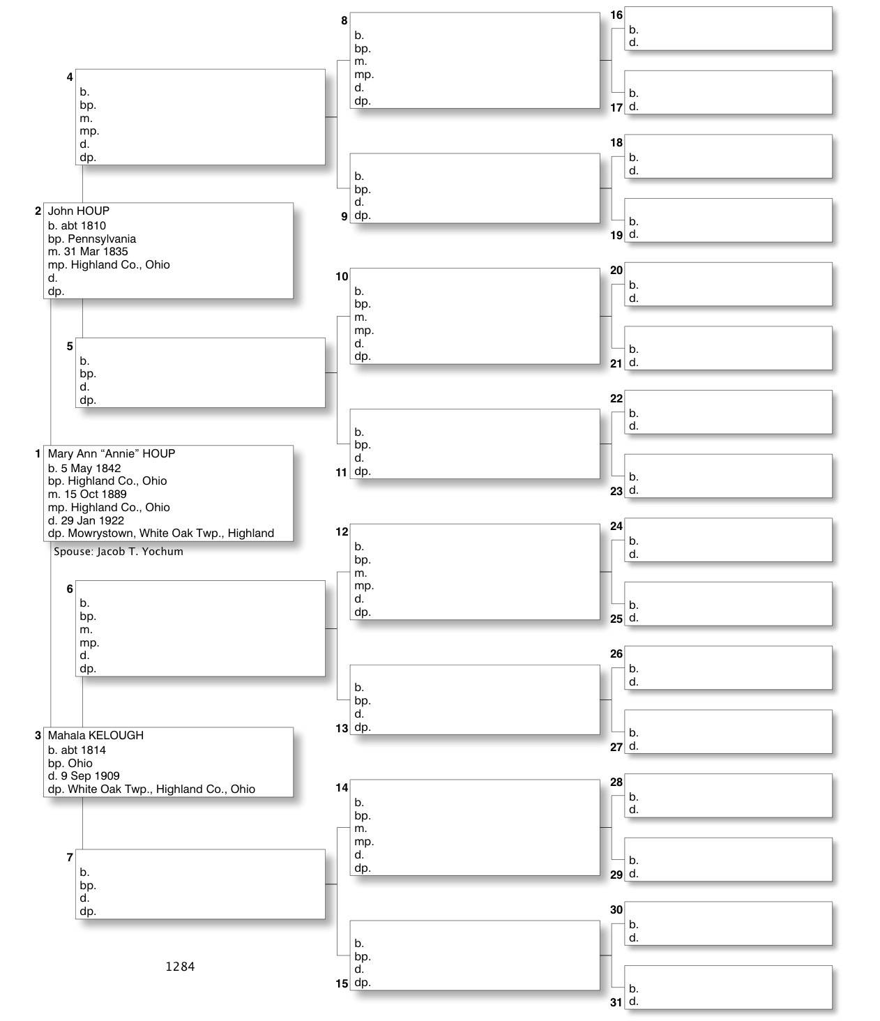 Alphabetized with link to Five Generation Chart