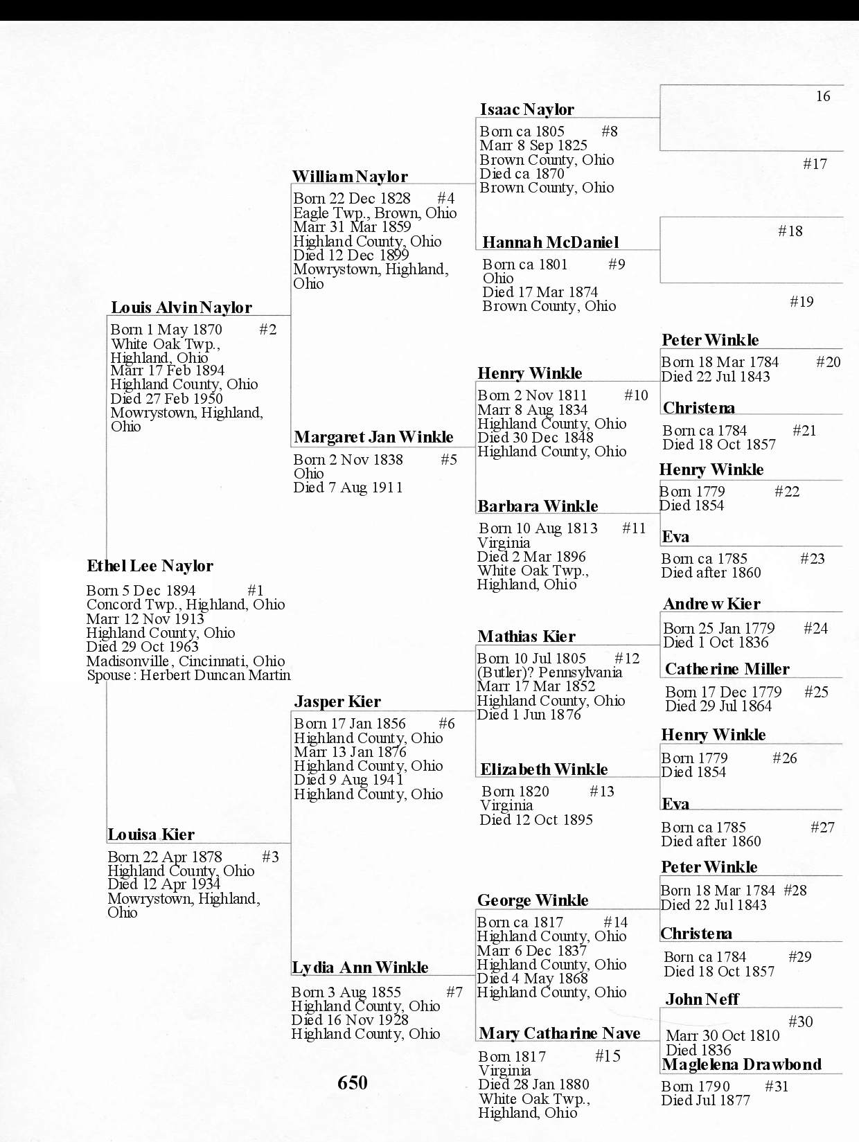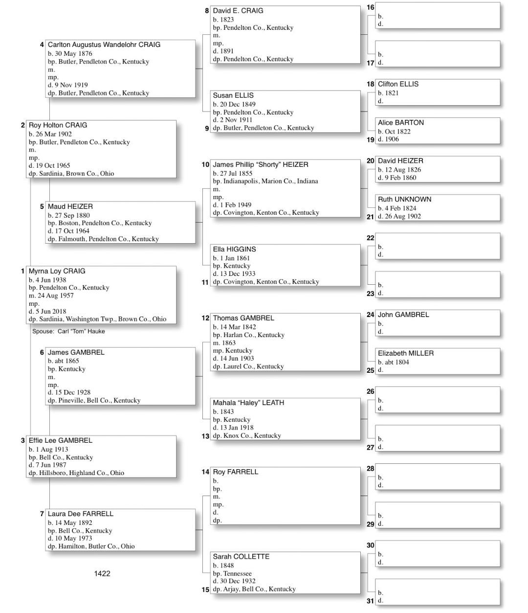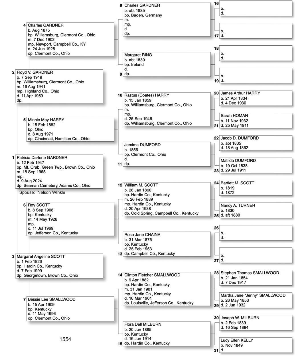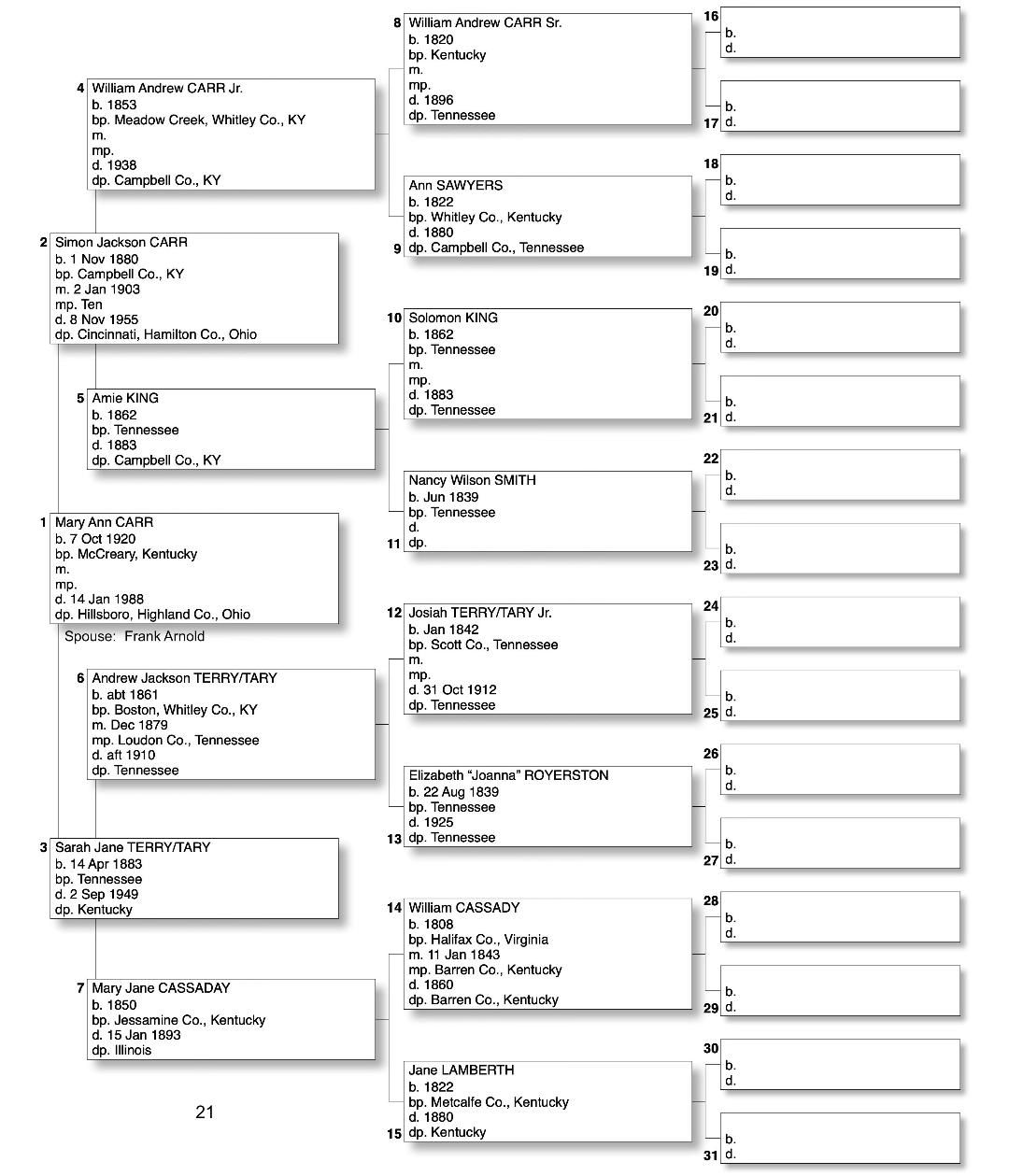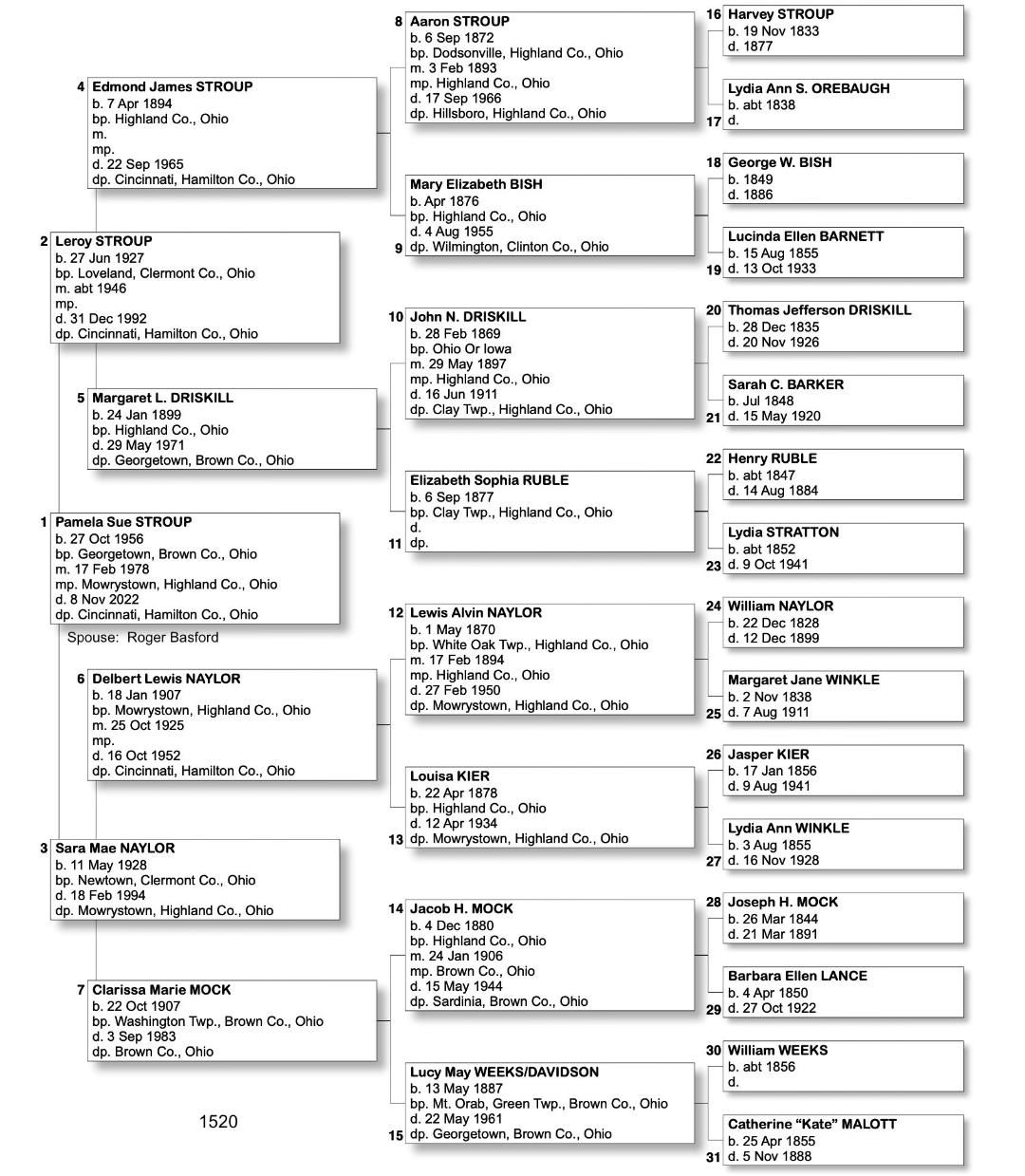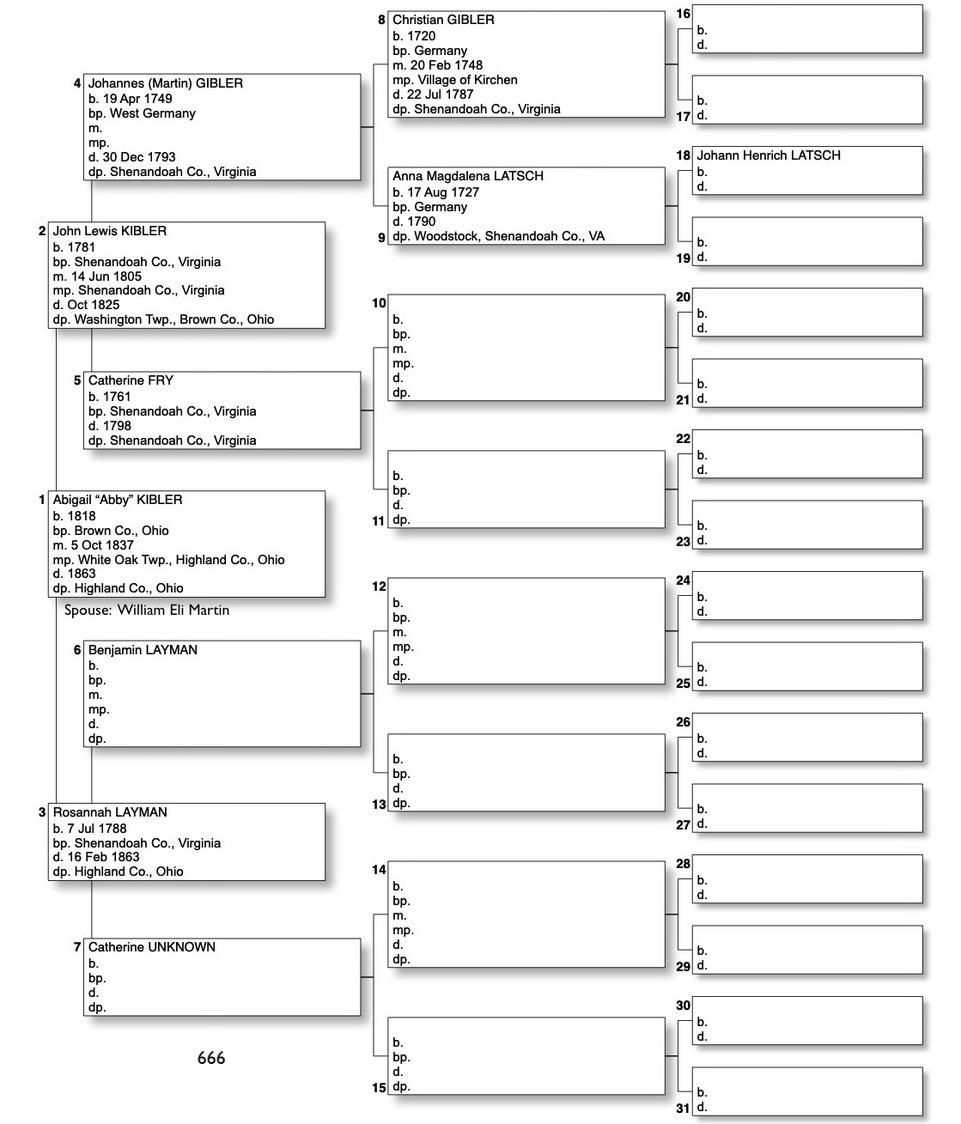 Alphabetized with link to Five Generation Chart