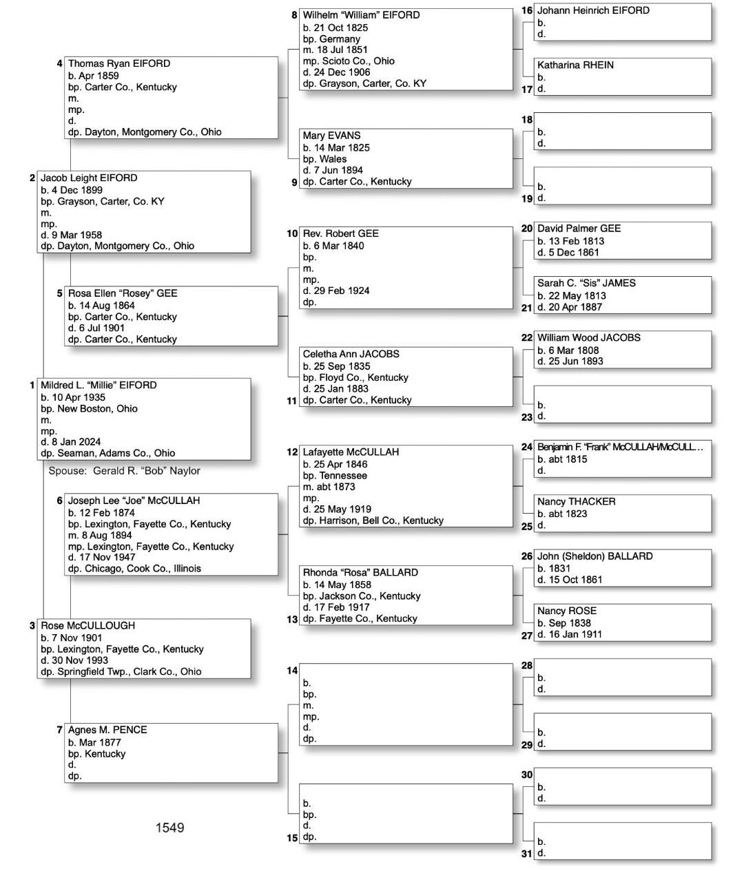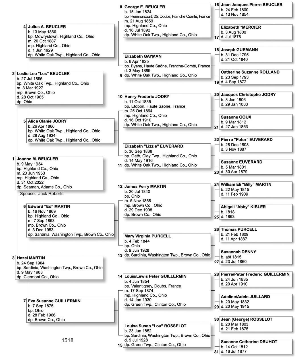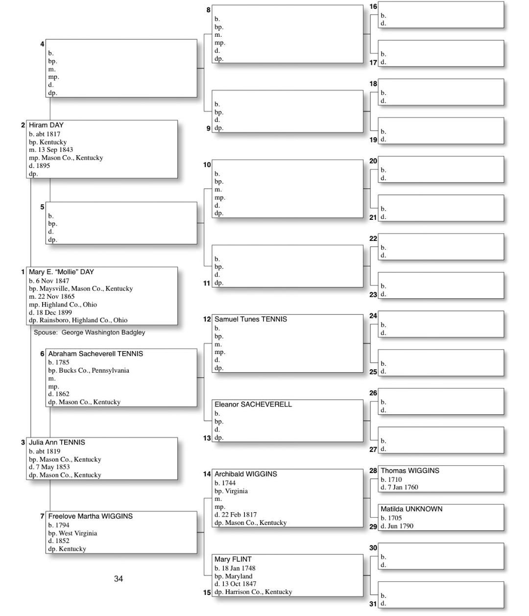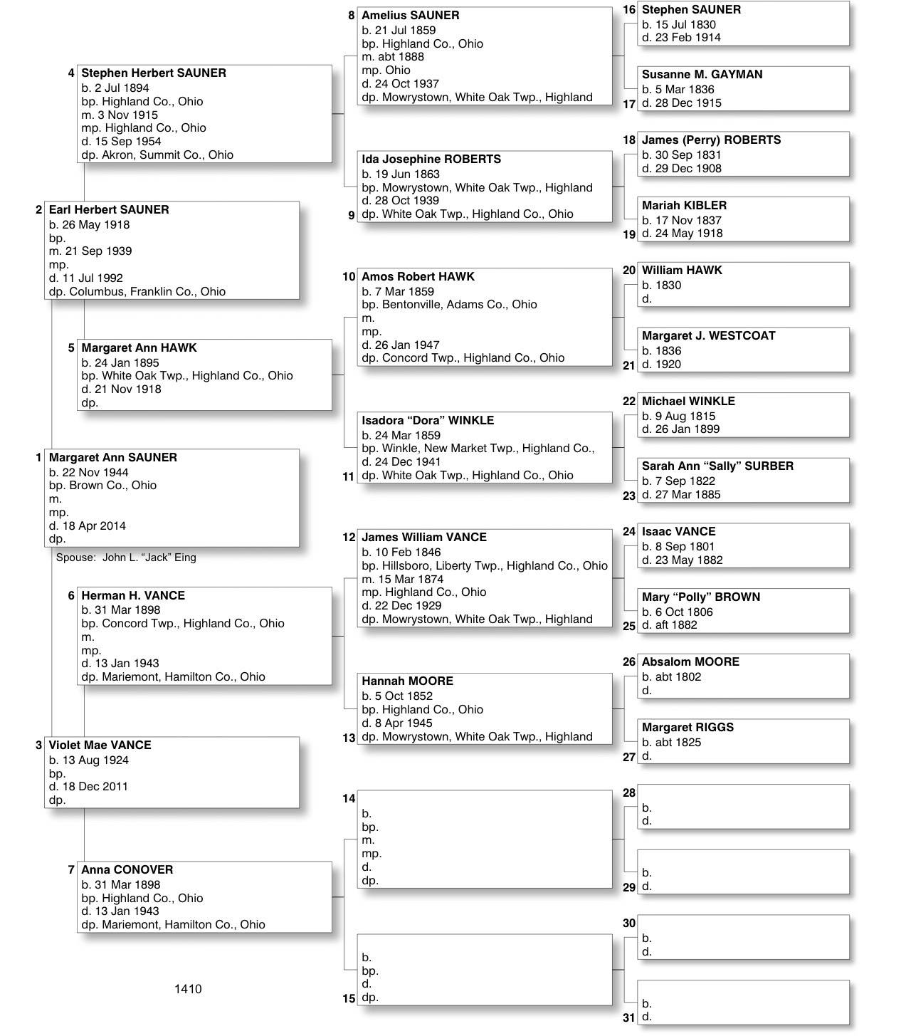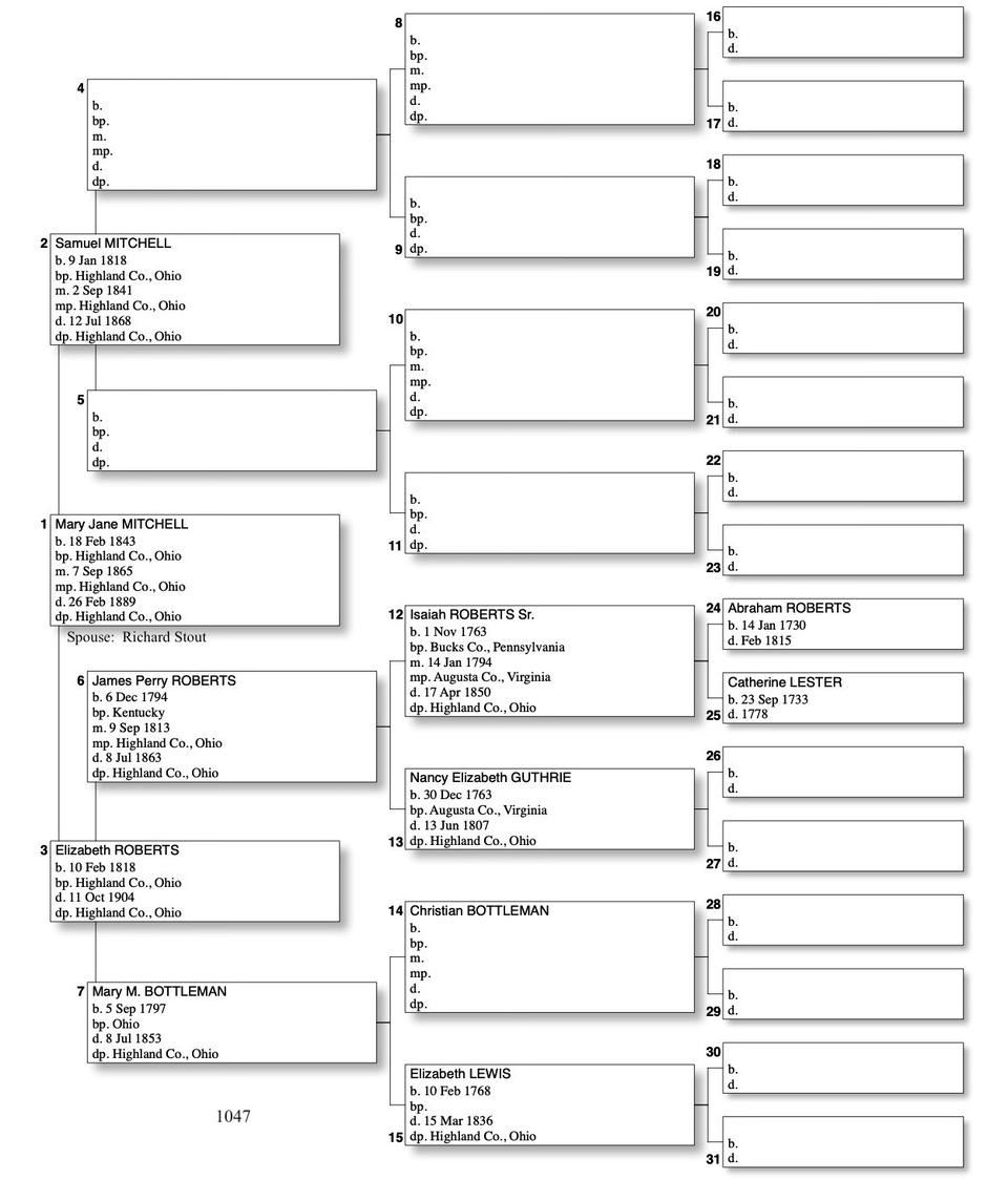 Alphabetized with link to Five Generation Chart