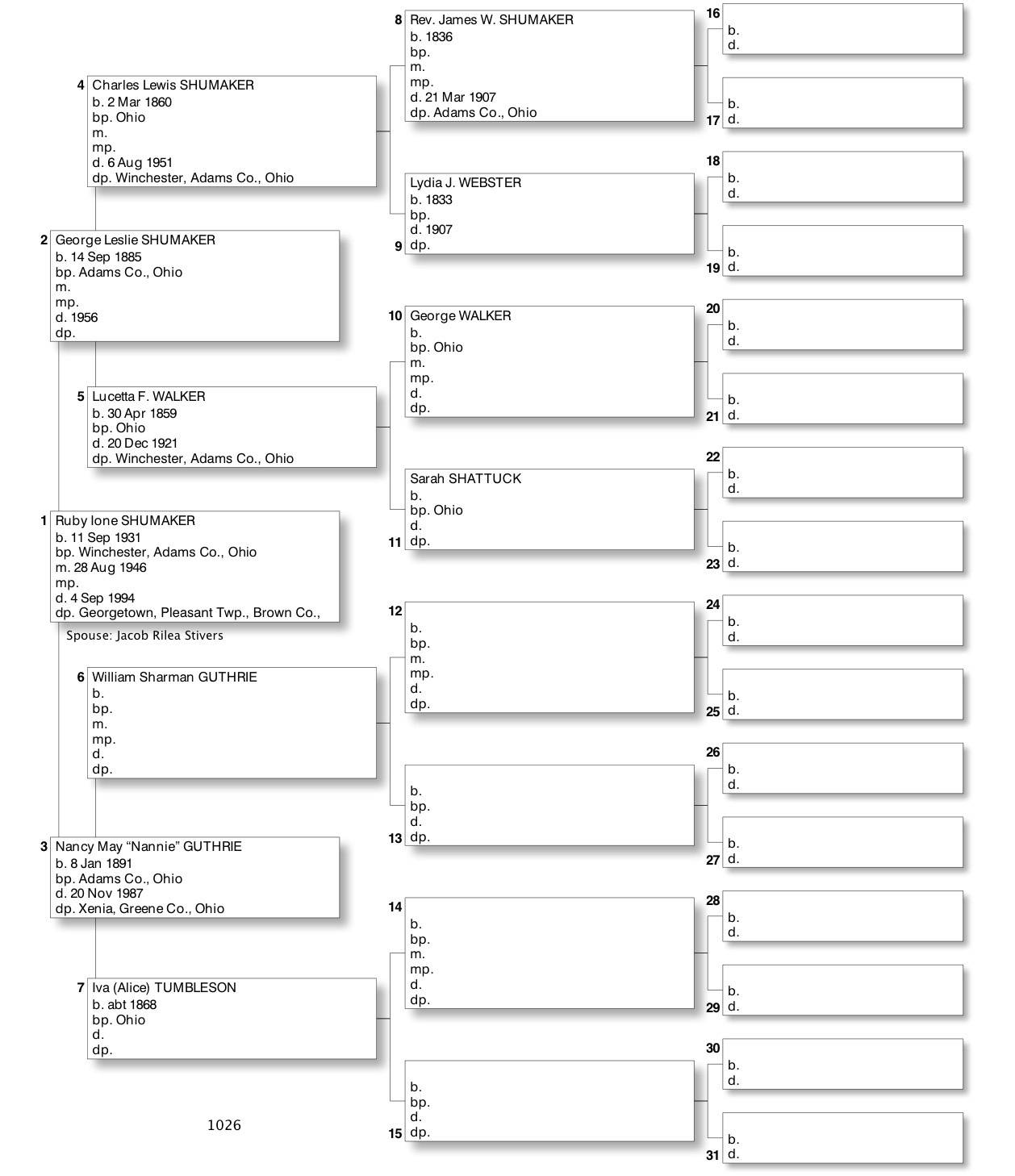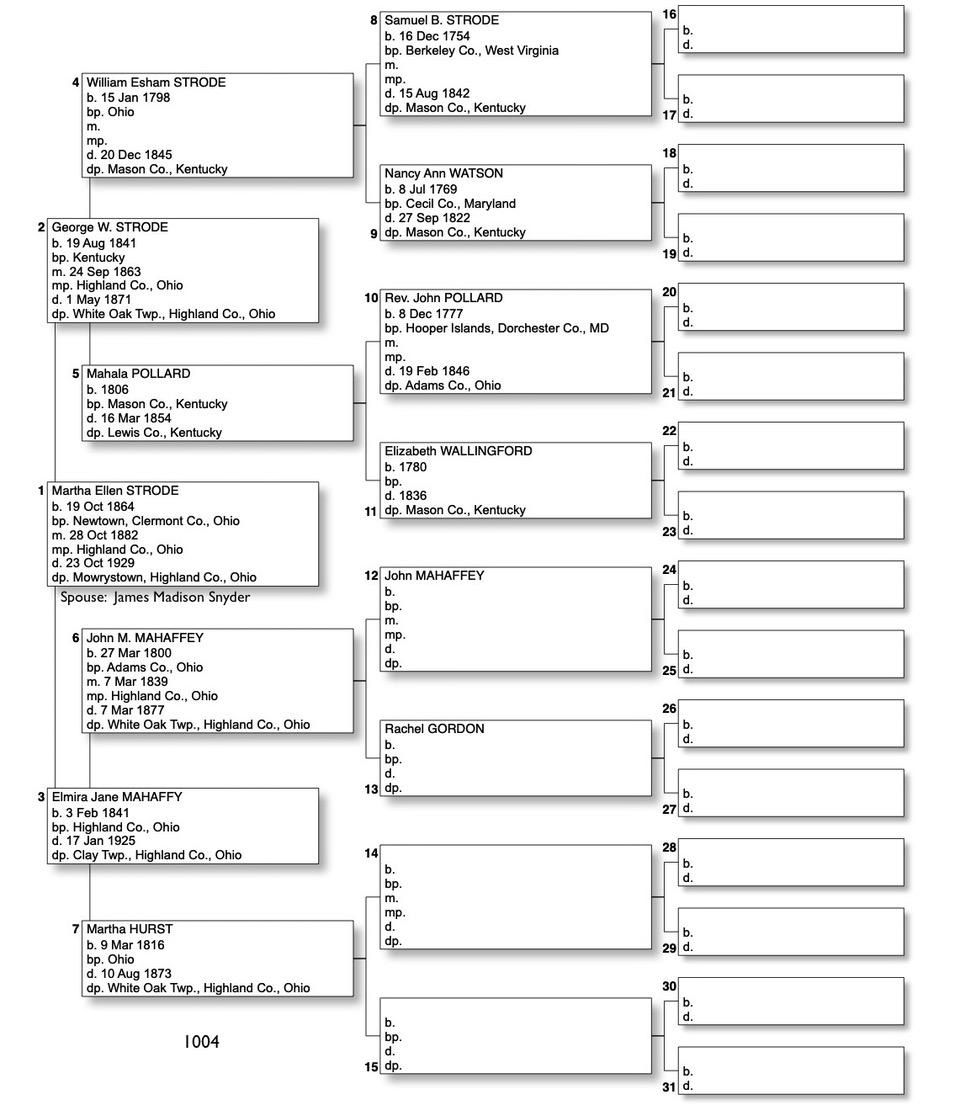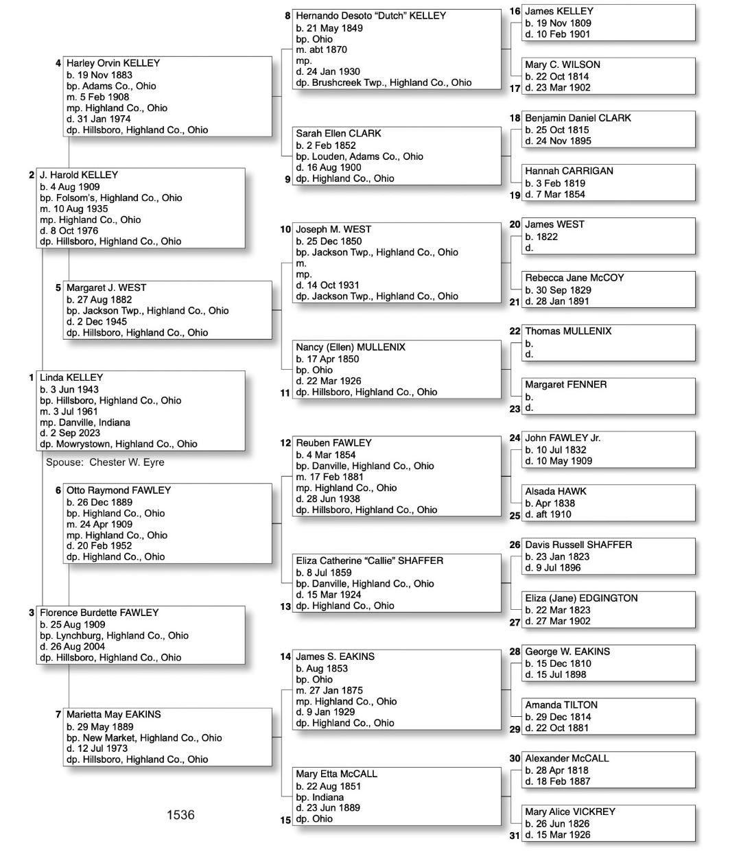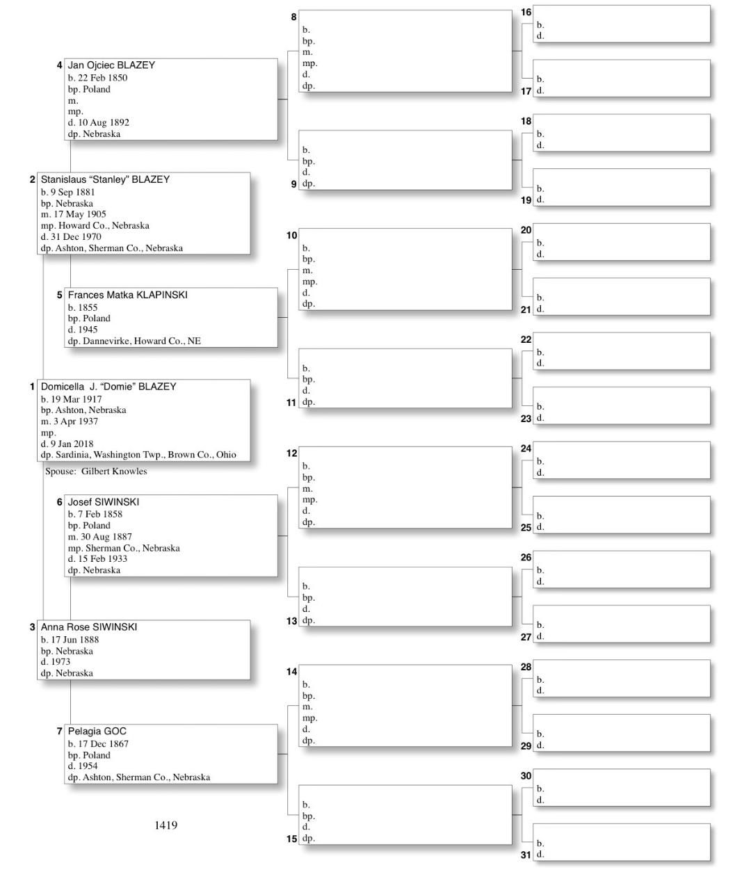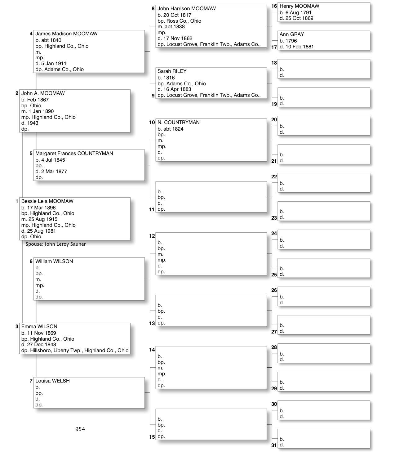 Alphabetized with link to Five Generation Chart