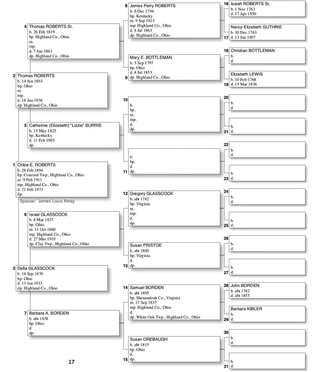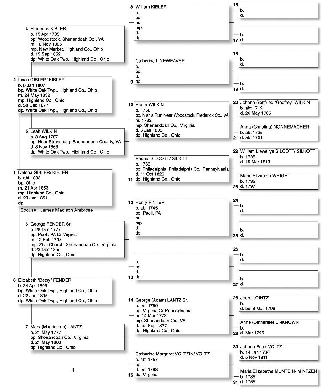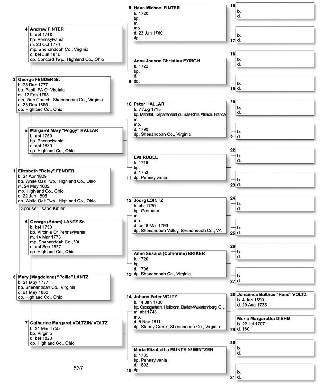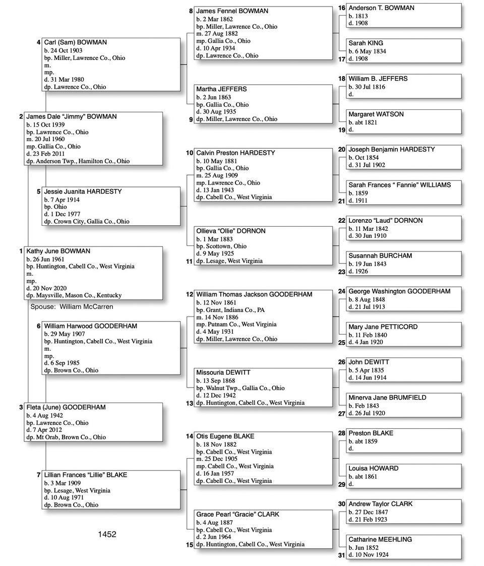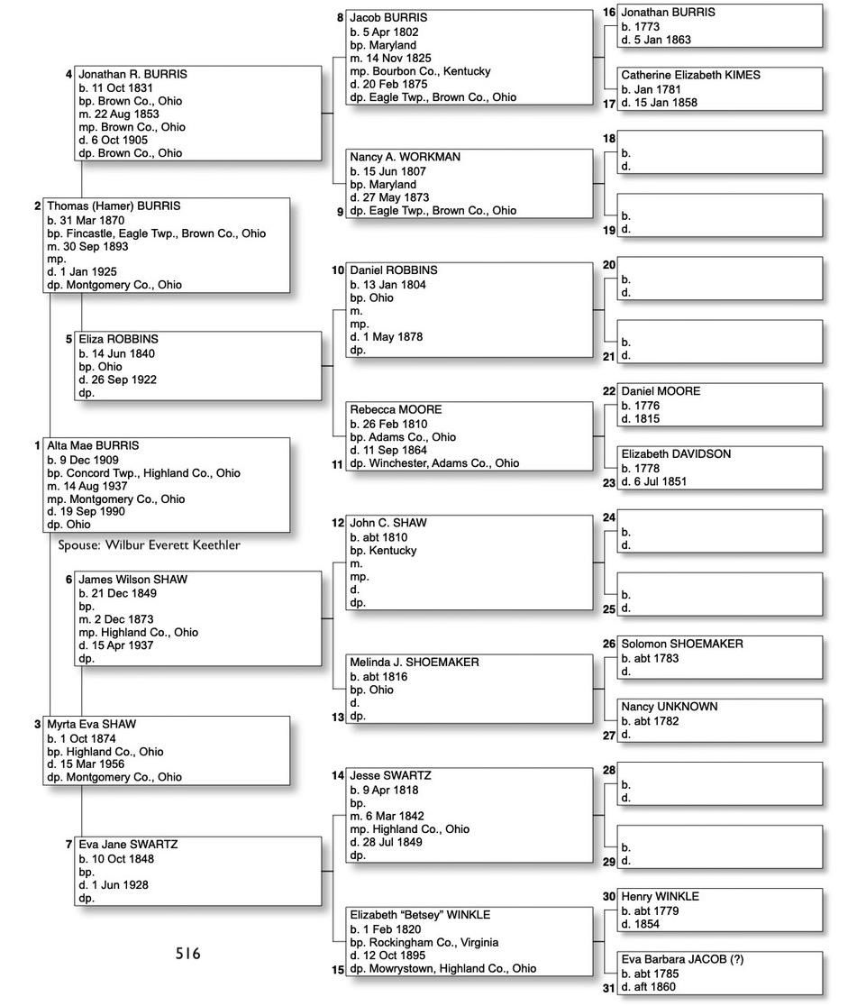 Alphabetized with link to Five Generation Chart