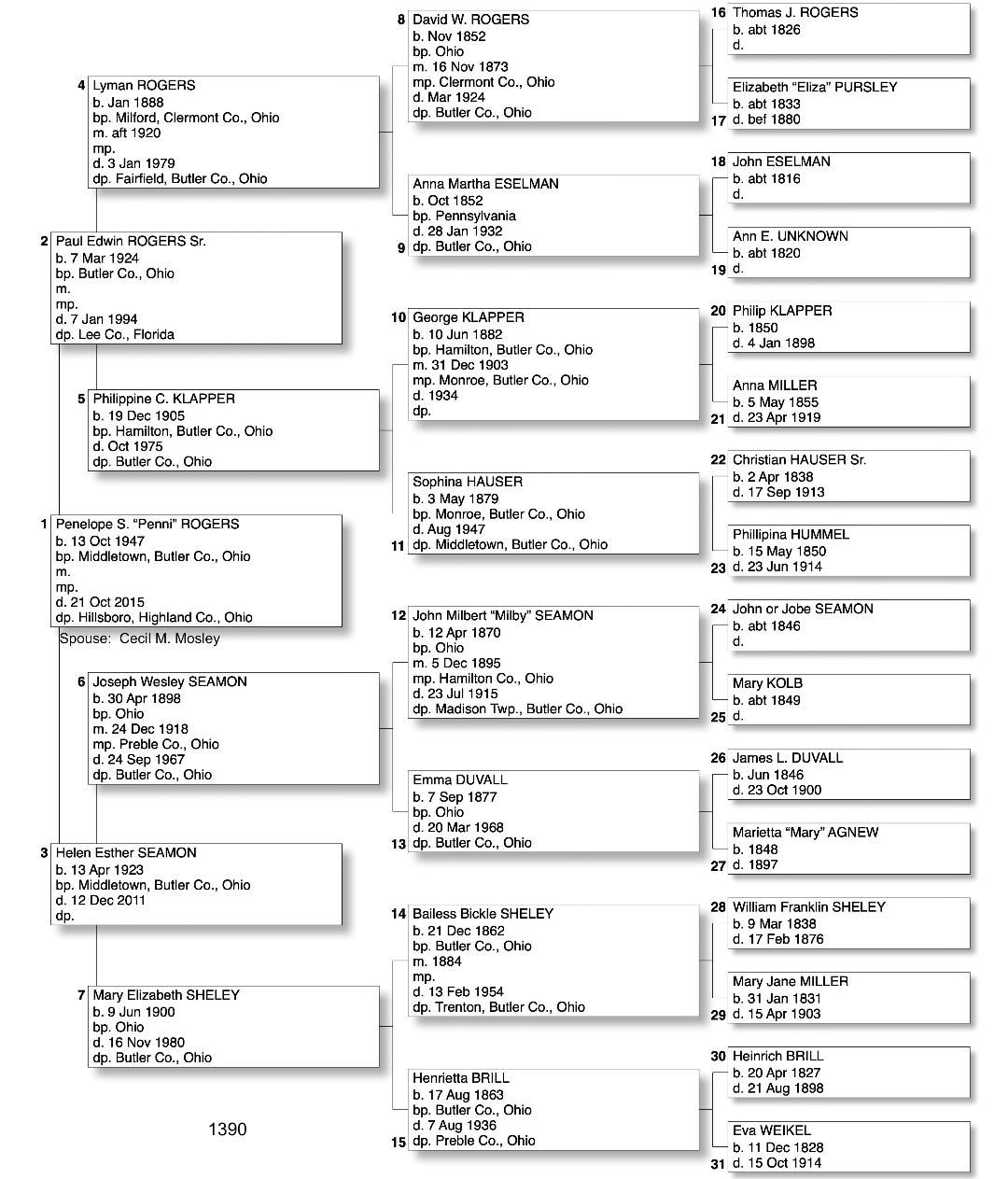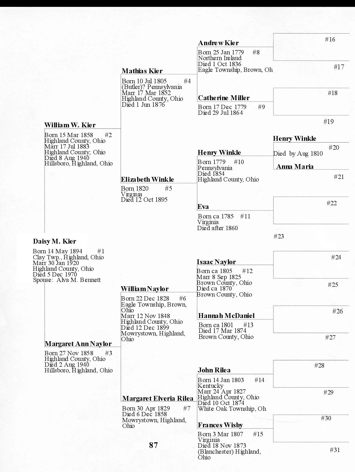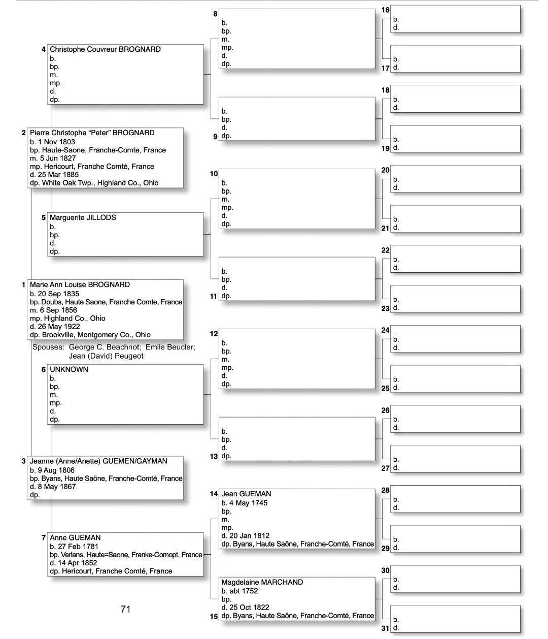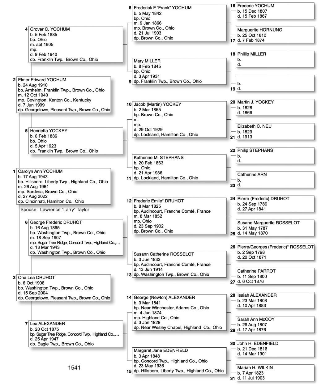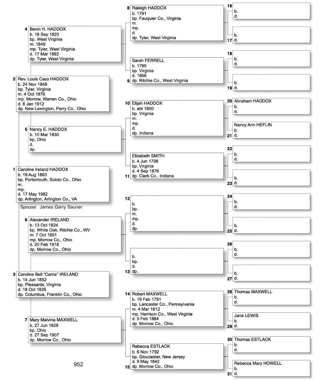 Alphabetized with link to Five Generation Chart