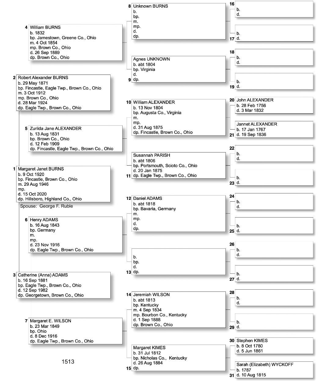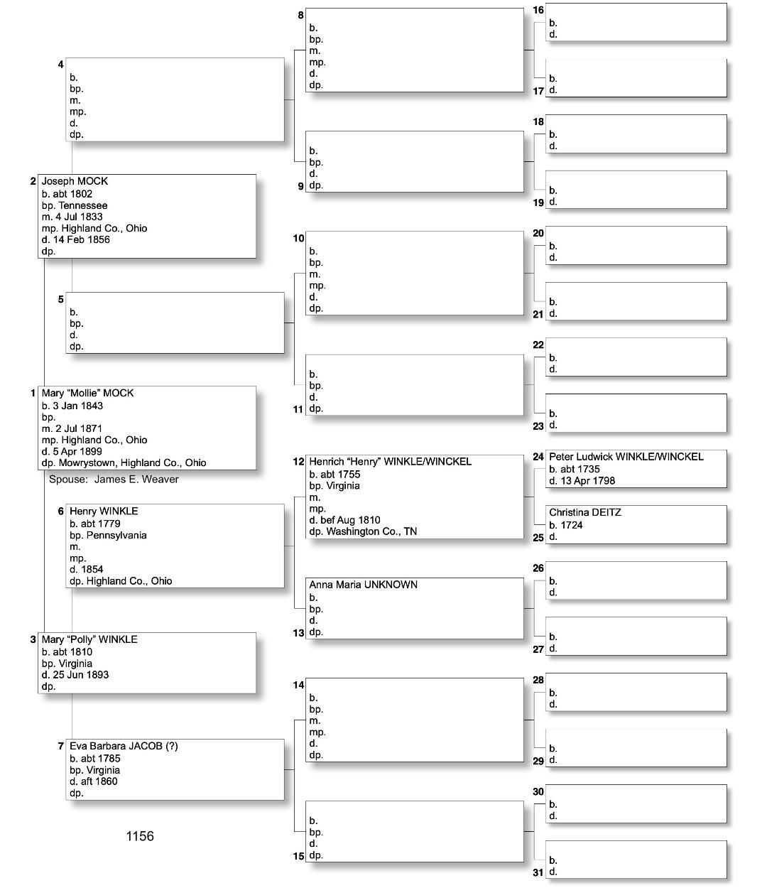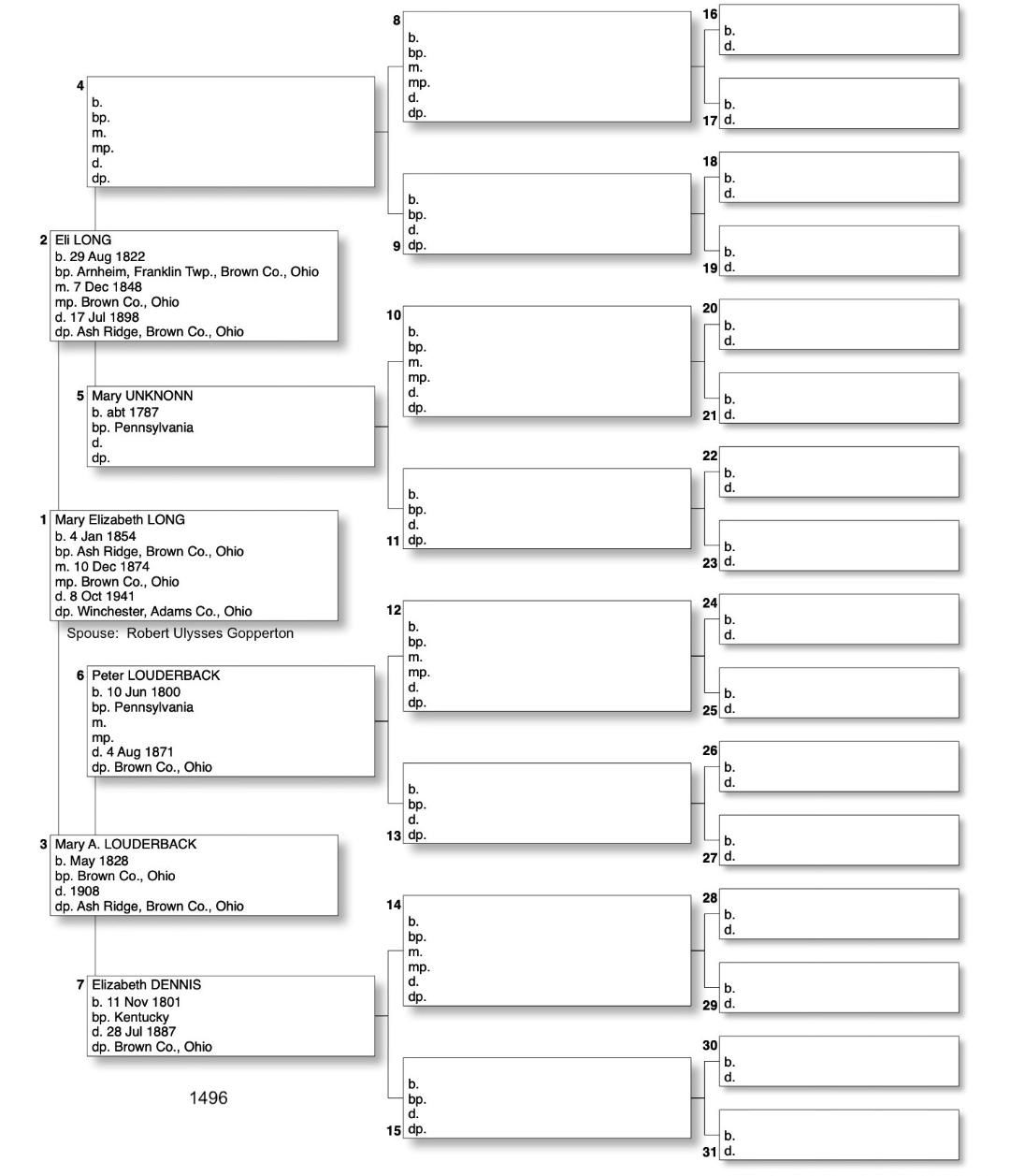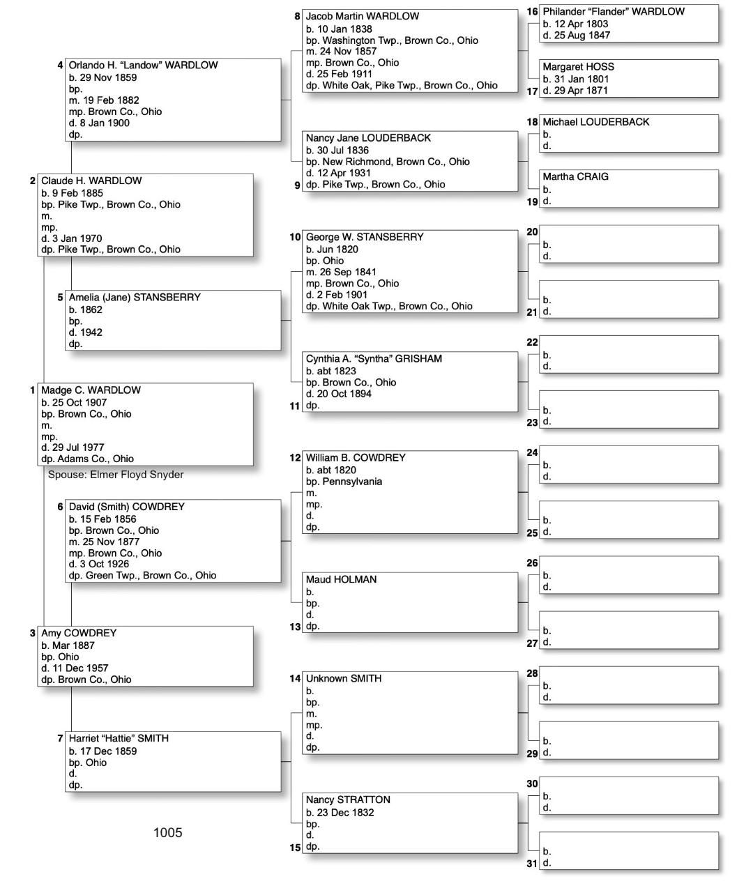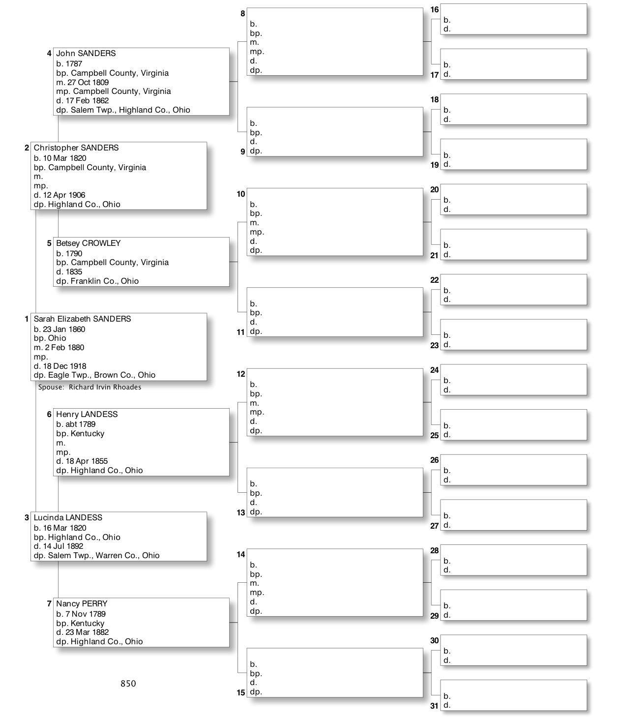 Alphabetized with link to Five Generation Chart