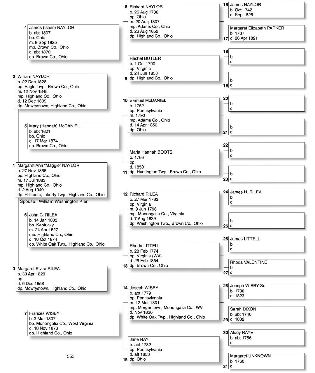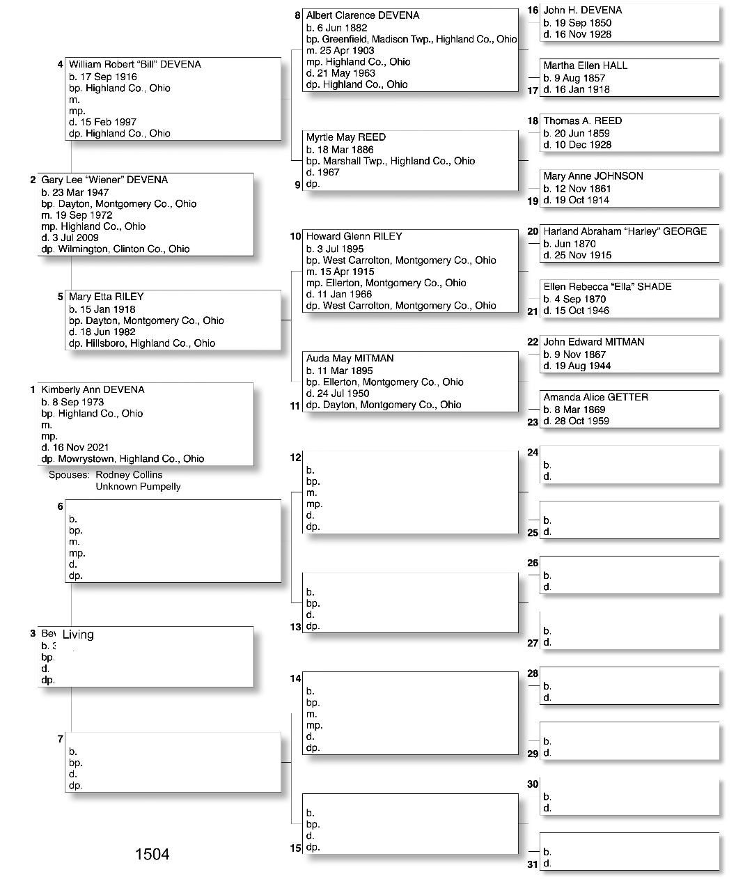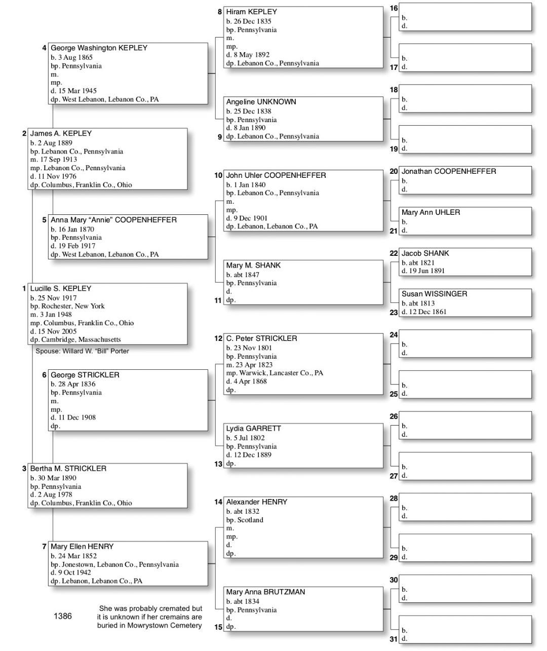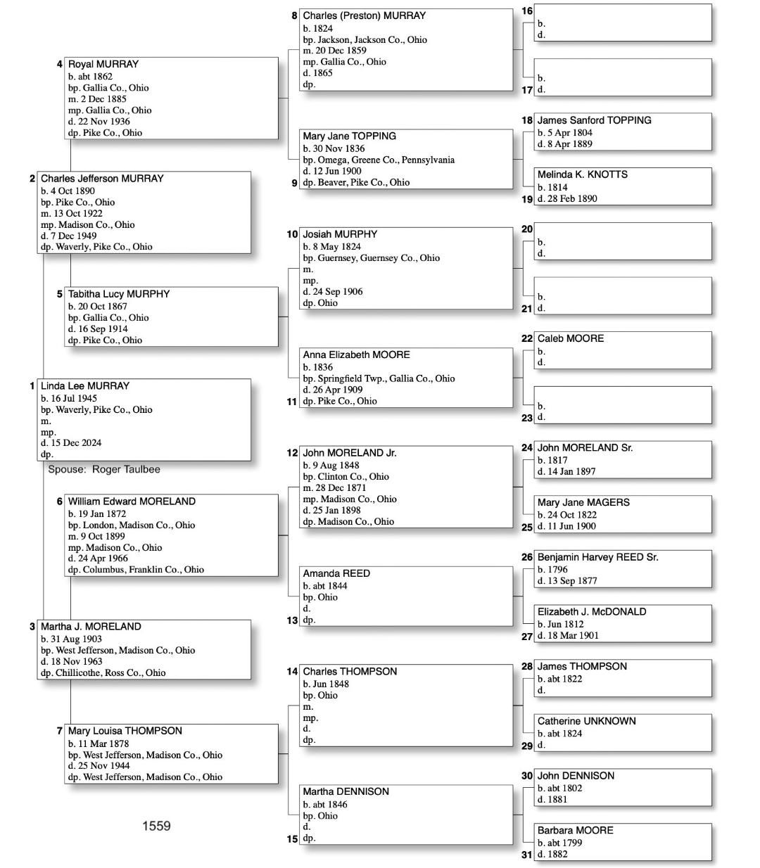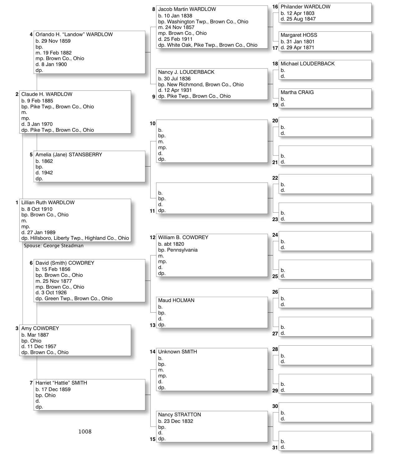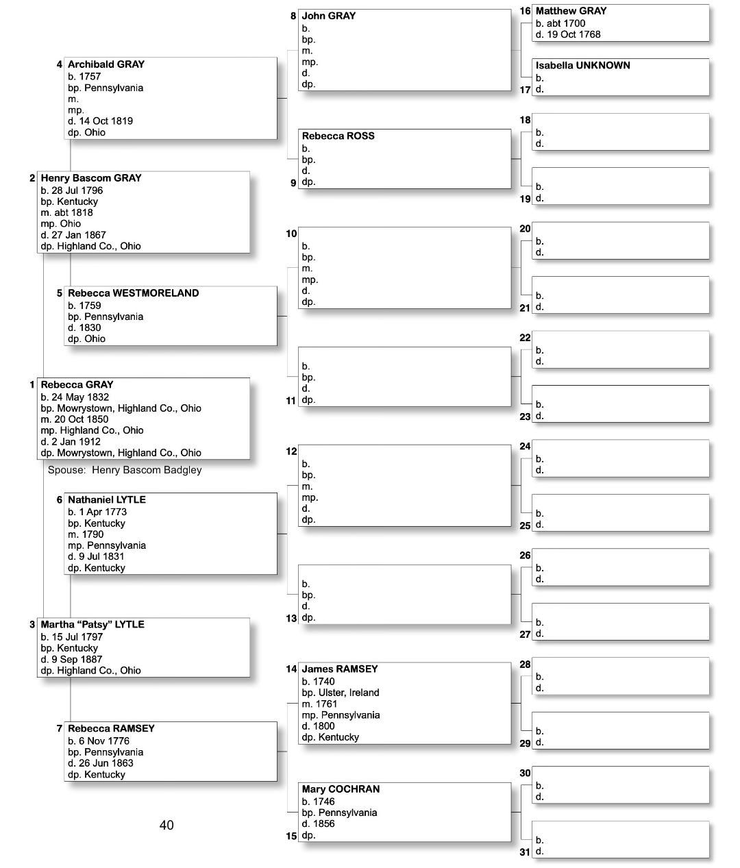 Alphabetized with link to Five Generation Chart