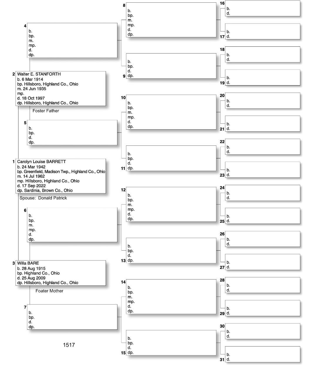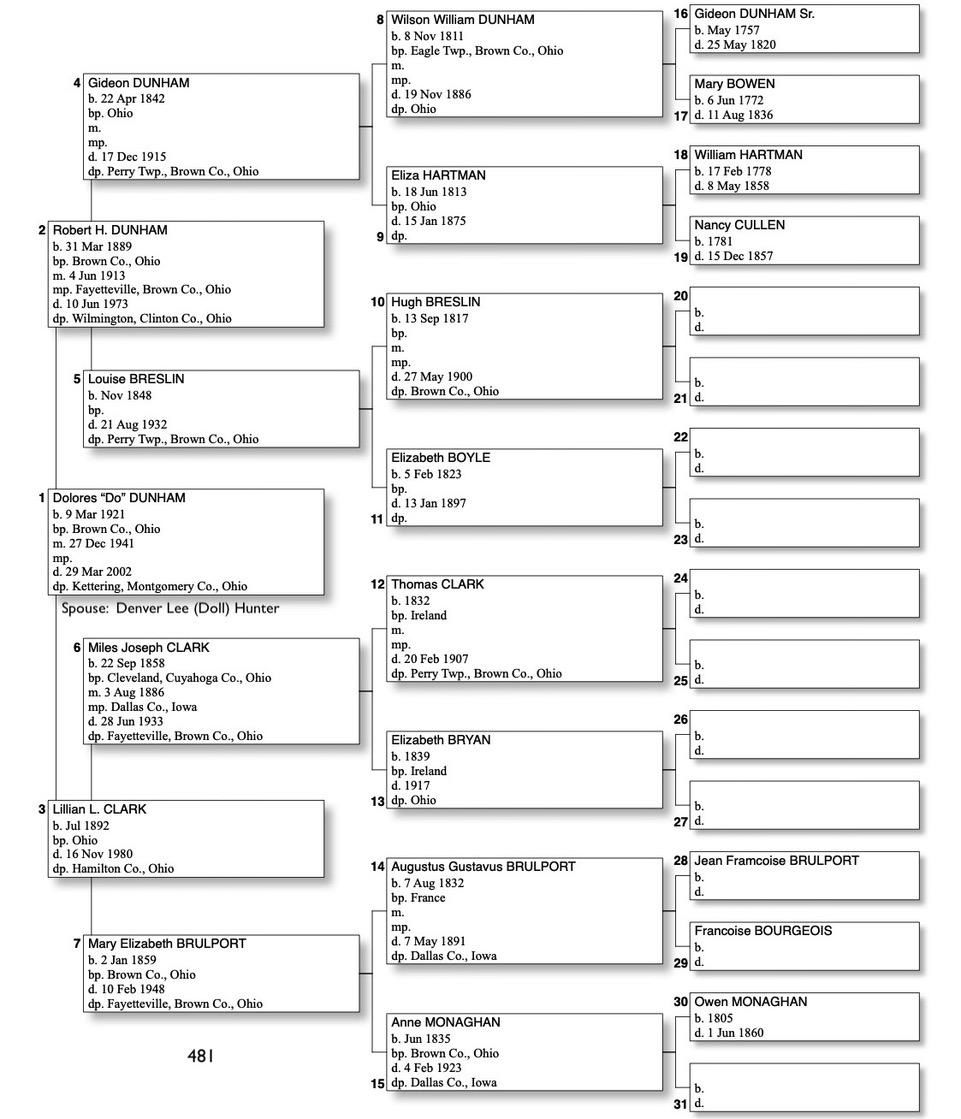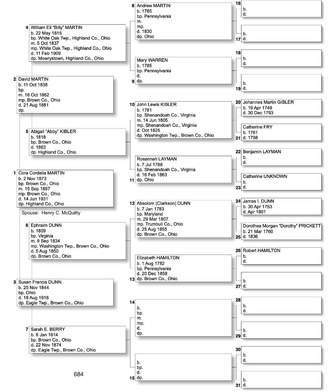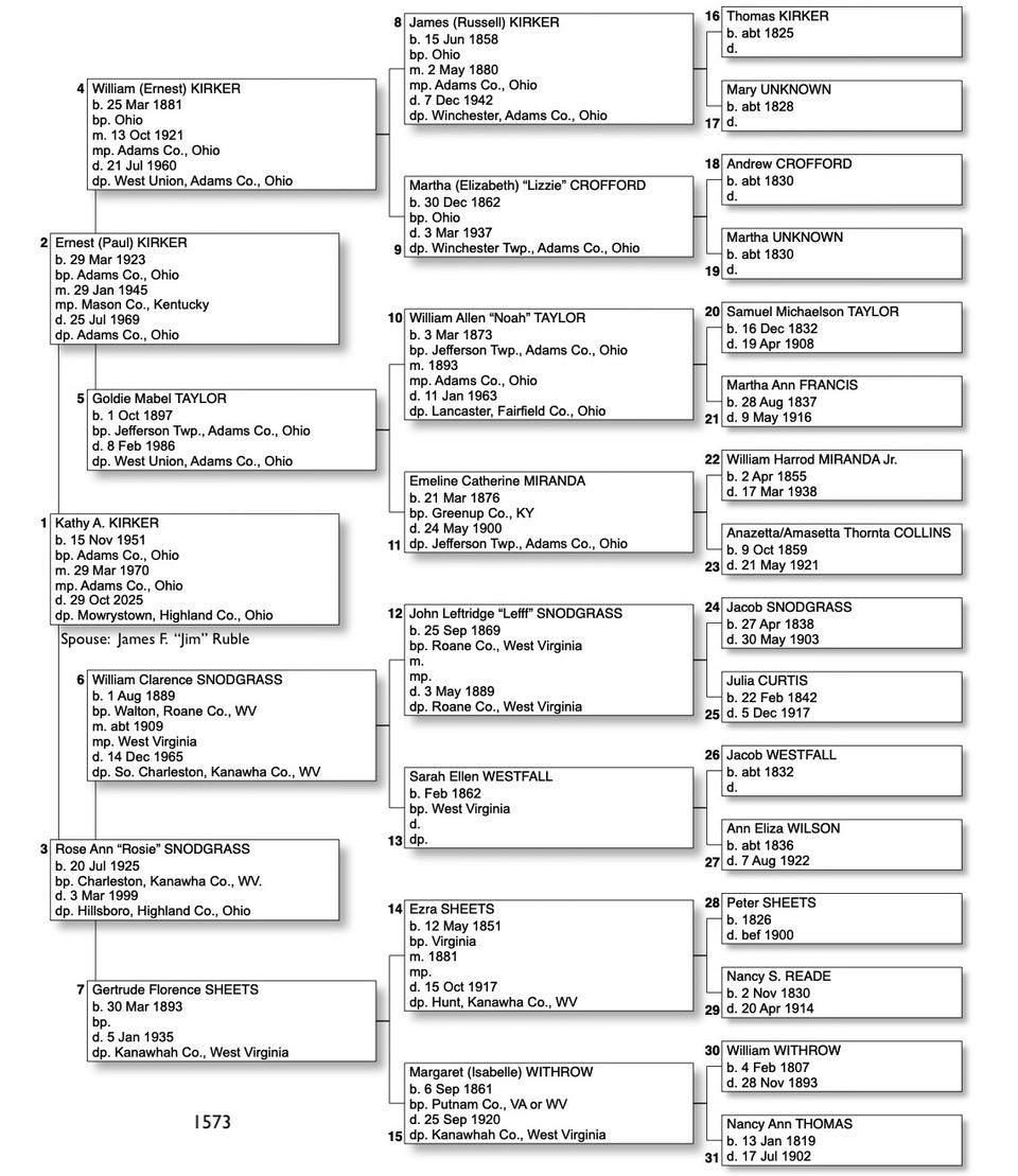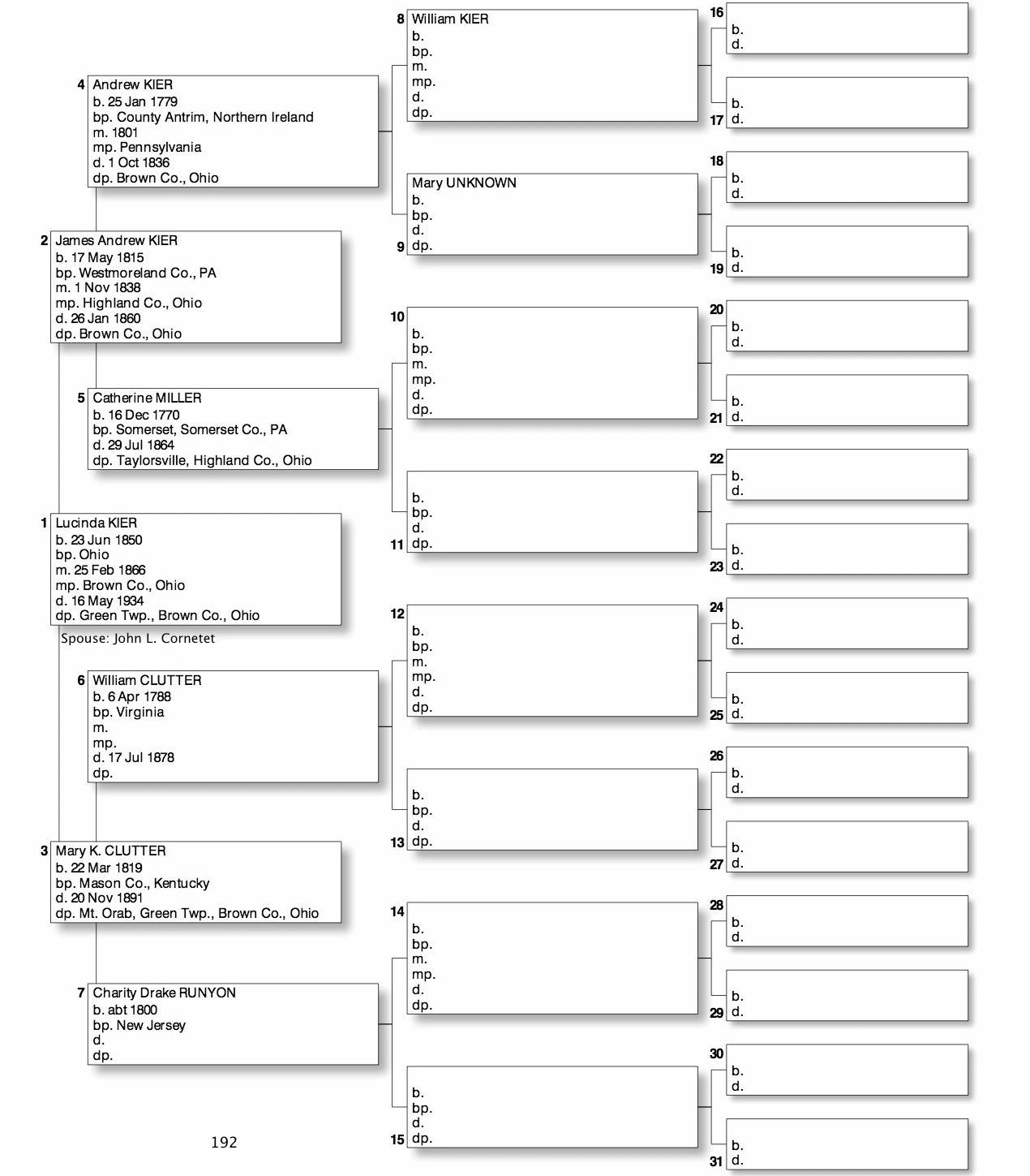 Alphabetized with link to Five Generation Chart