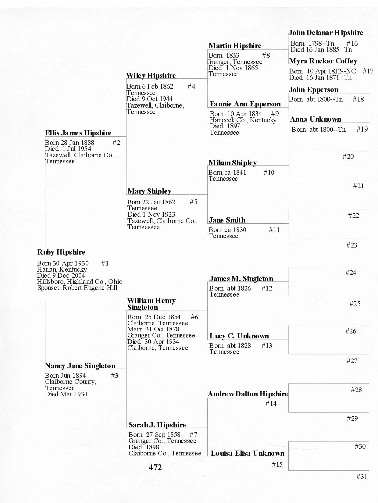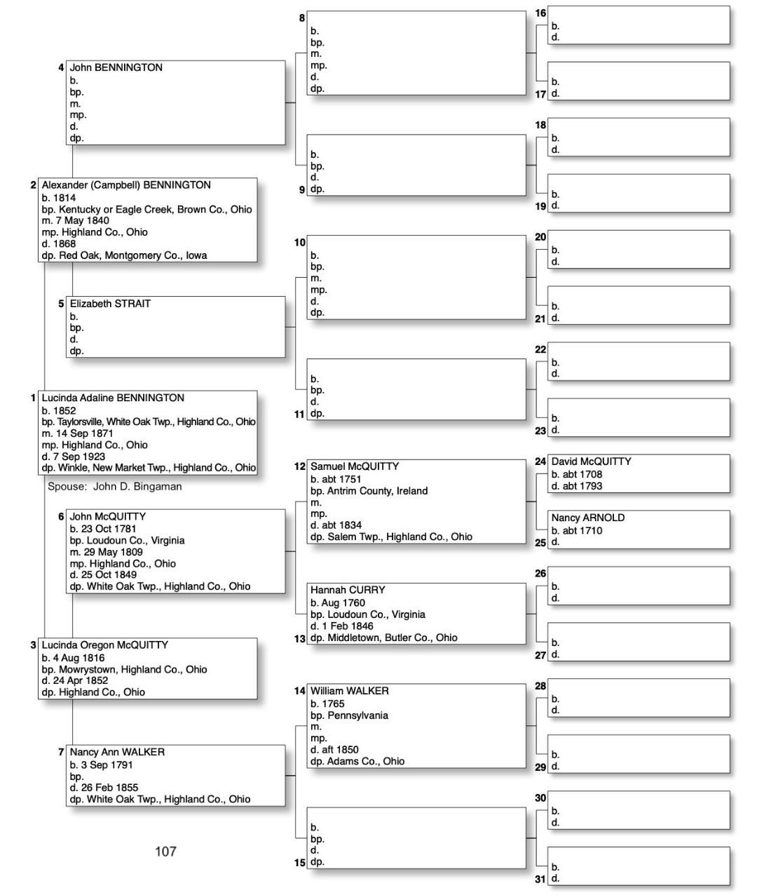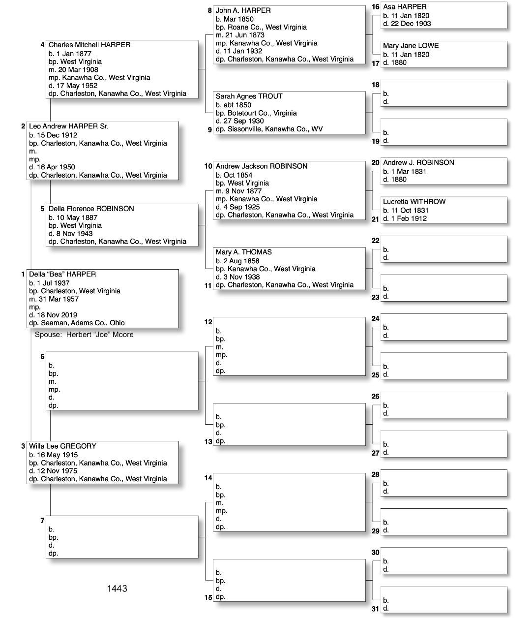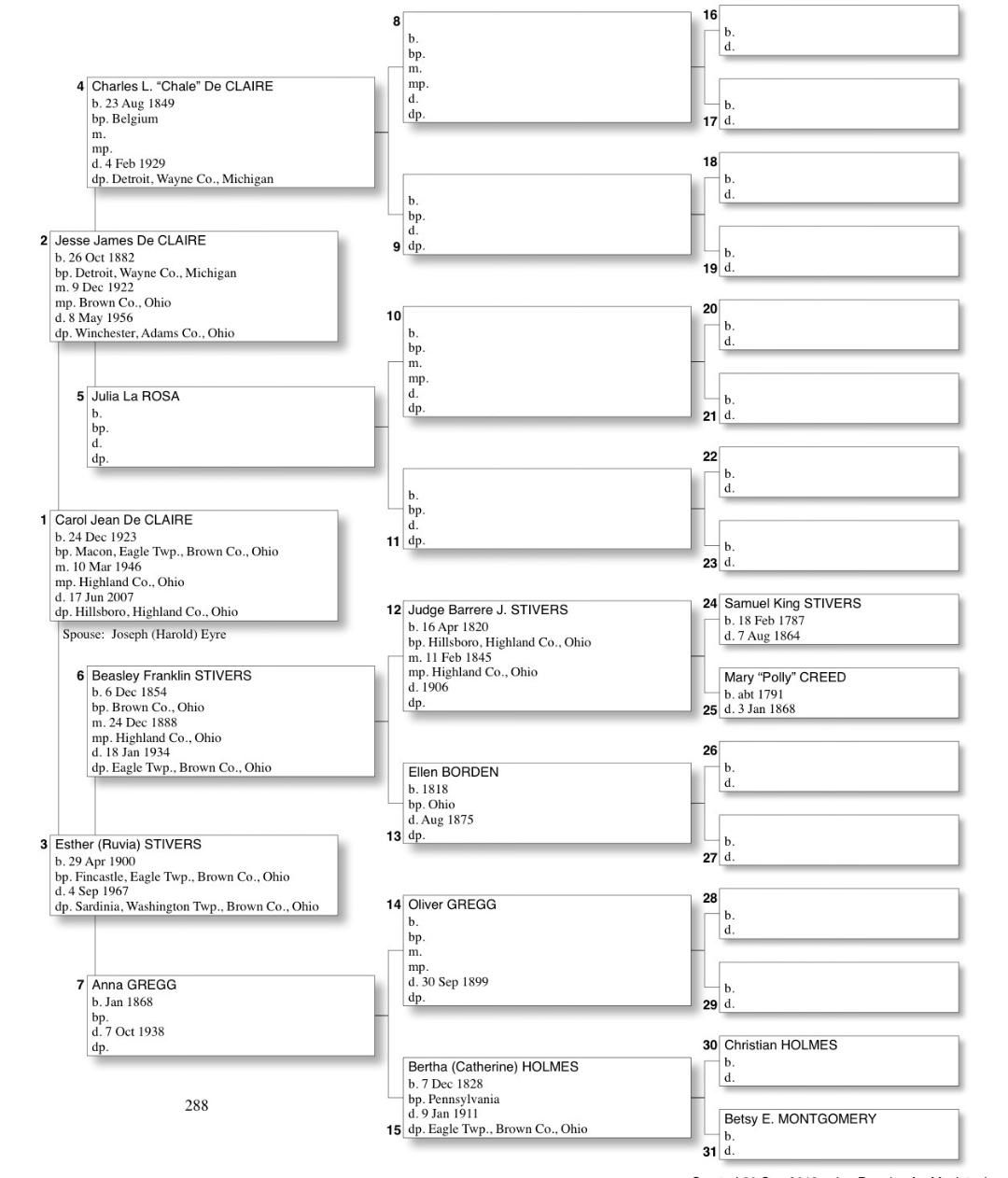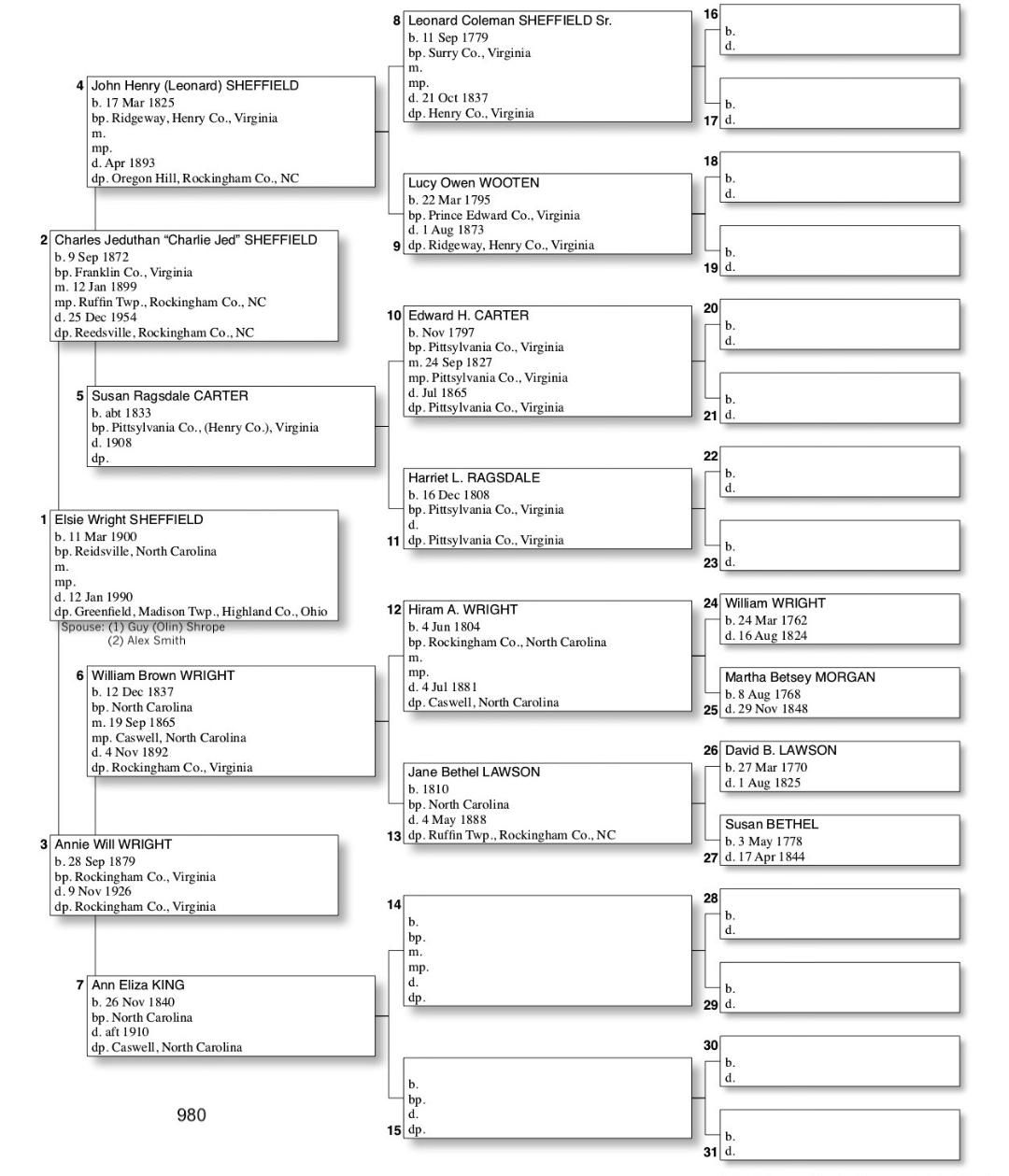Alphabetized with link to Five Generation Chart