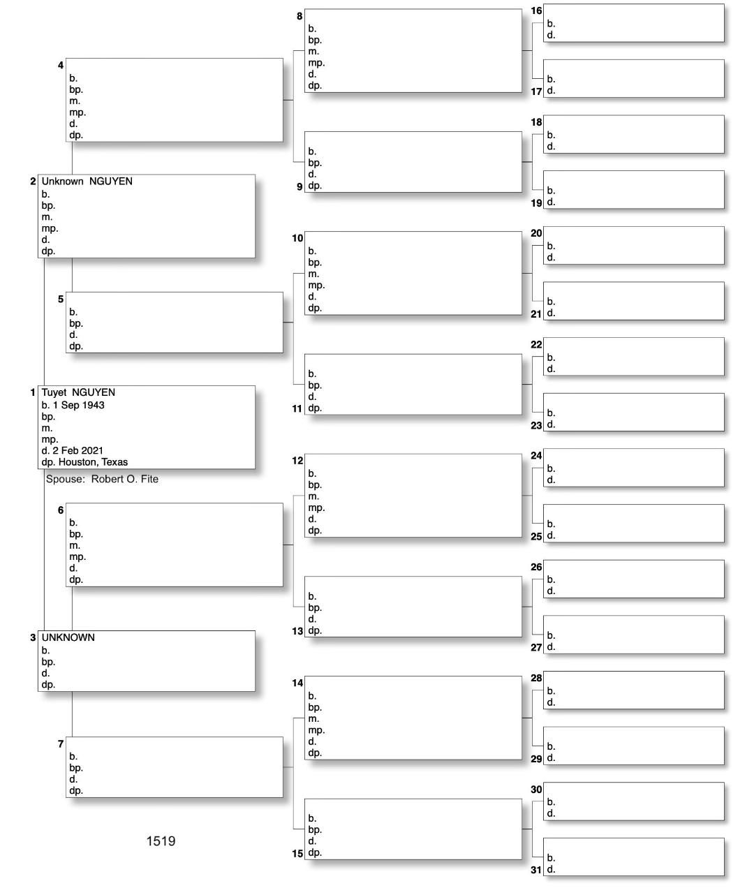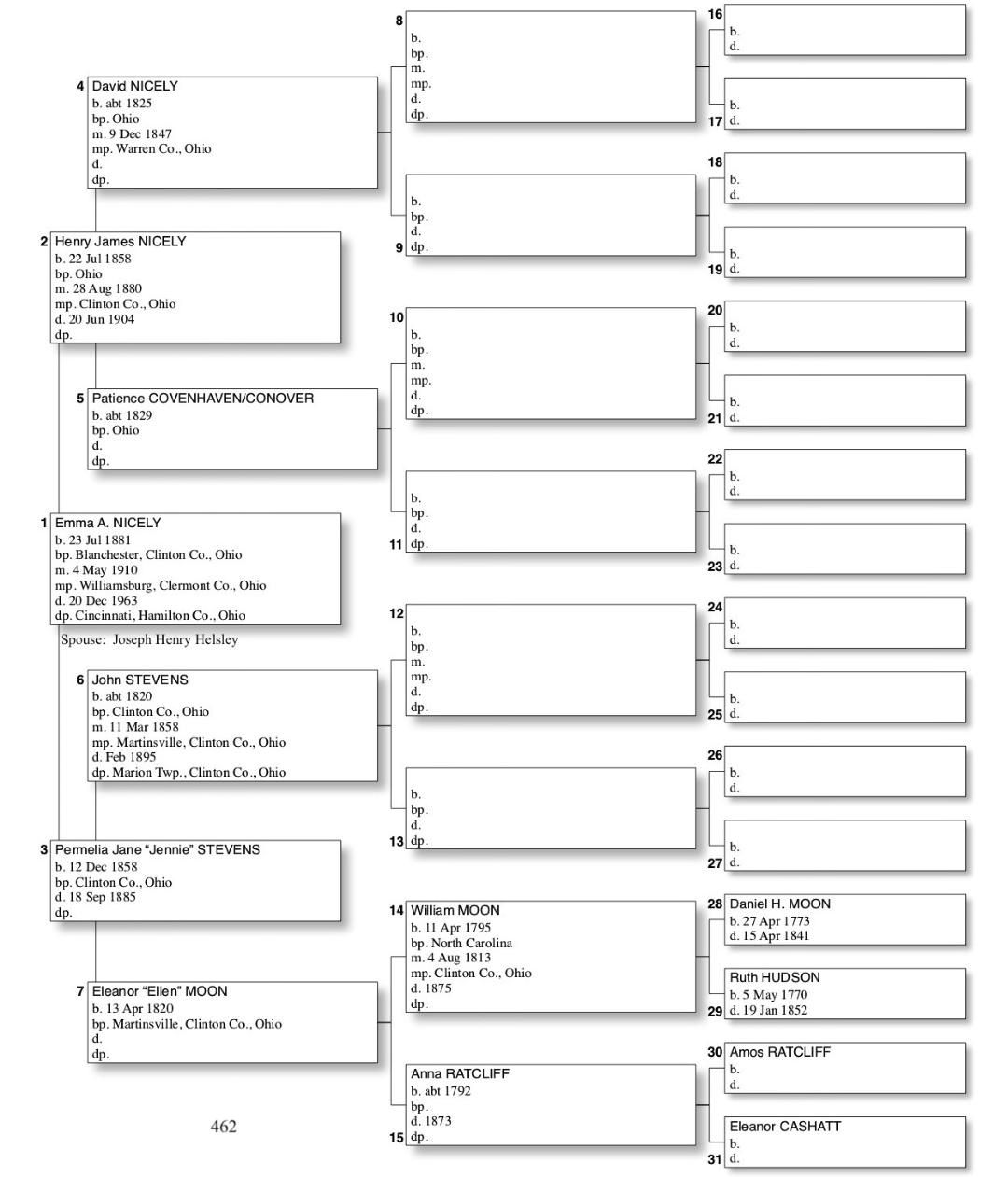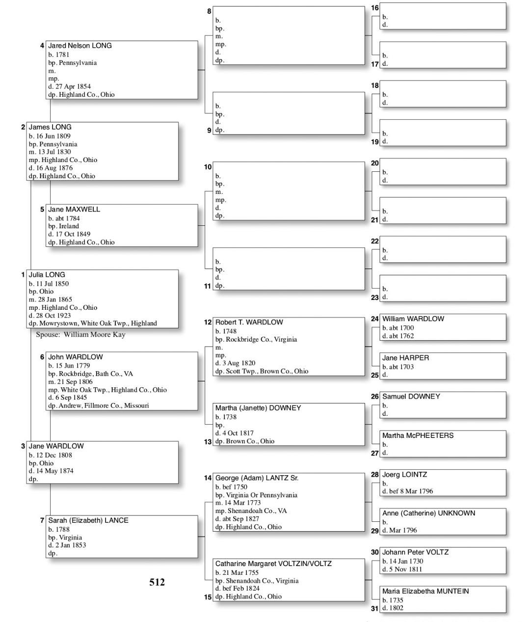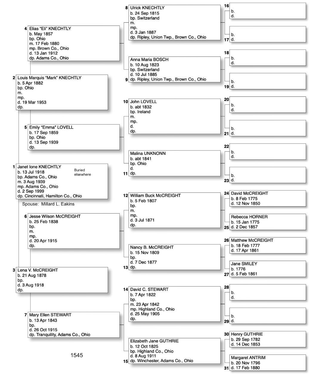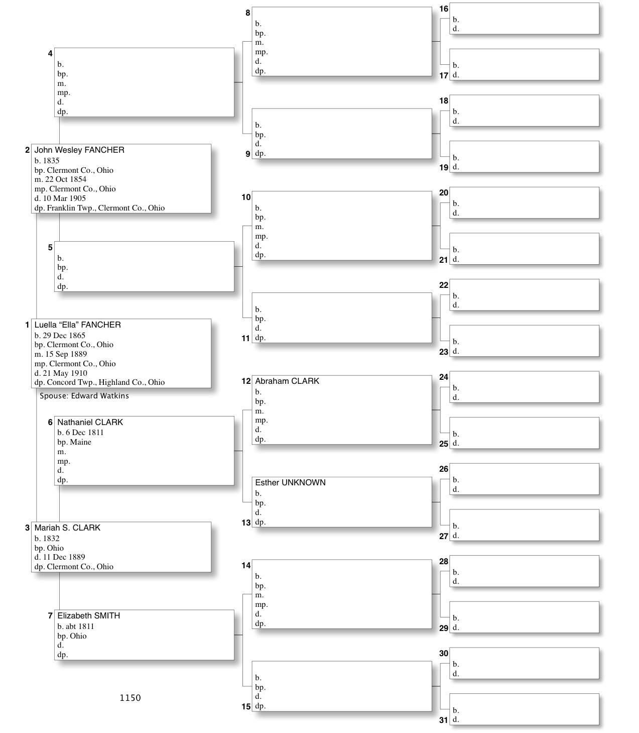 Alphabetized with link to Five Generation Chart
